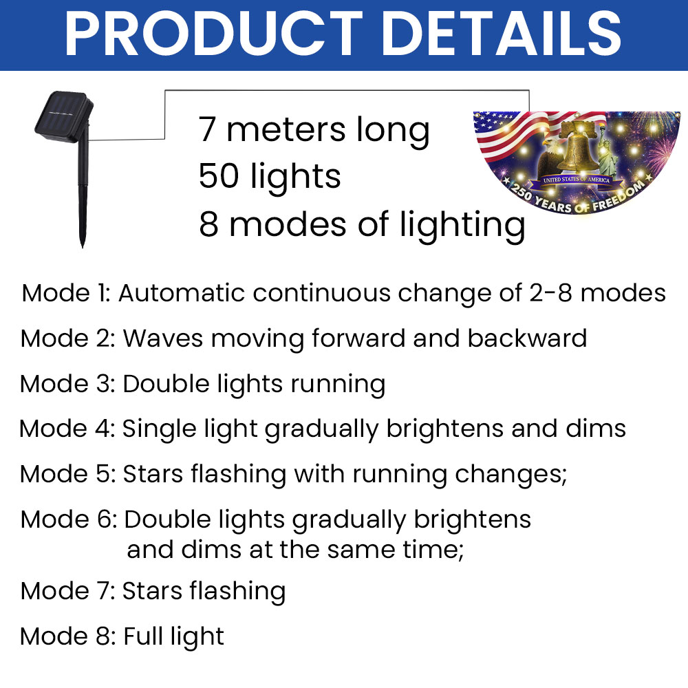 - Solar Led Lights – 7 meter long outdoor with 50 bright LED lights. The solar fairy lights produce a warm colorful glow, fit well in your porch, garden, yard, patio, balcony