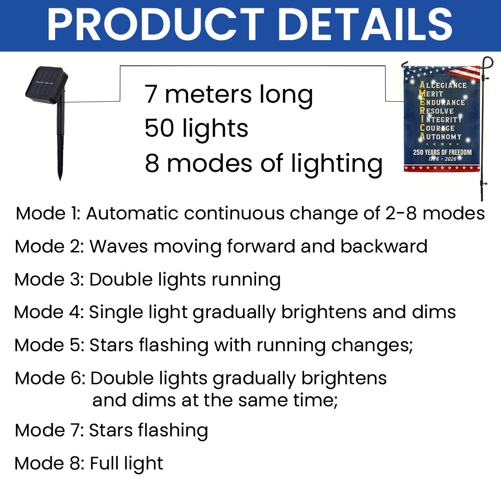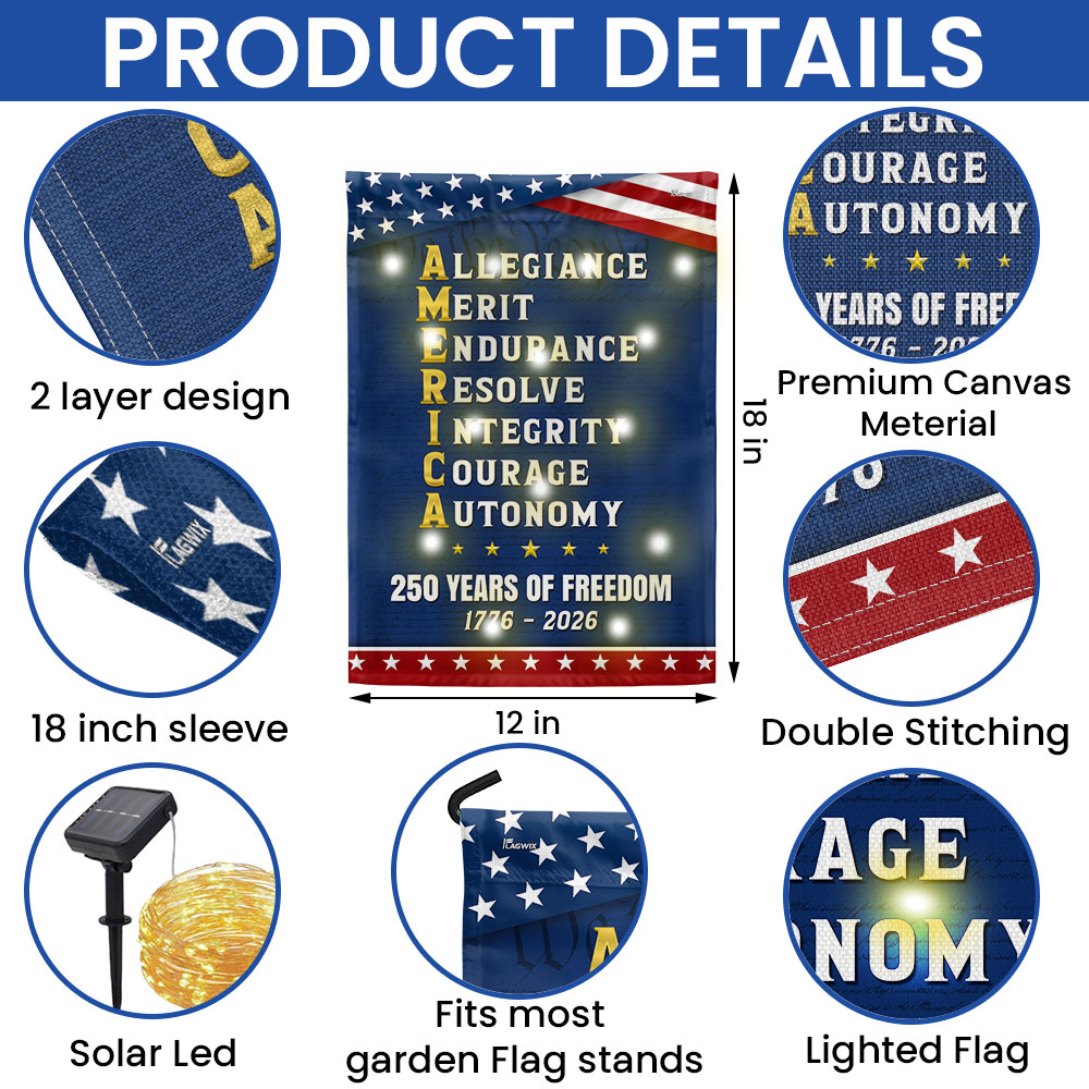 250 Years of Freedom American Allegiance Merit Endurance Solar Led Garden Flag