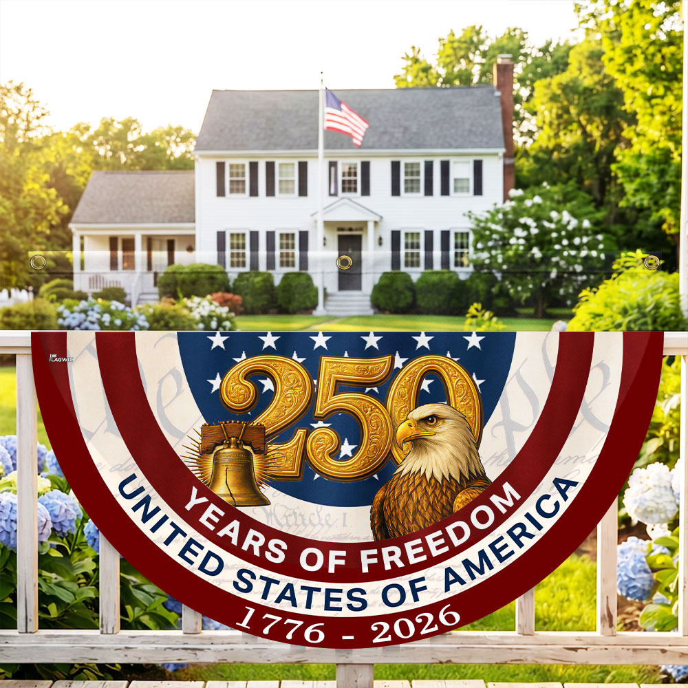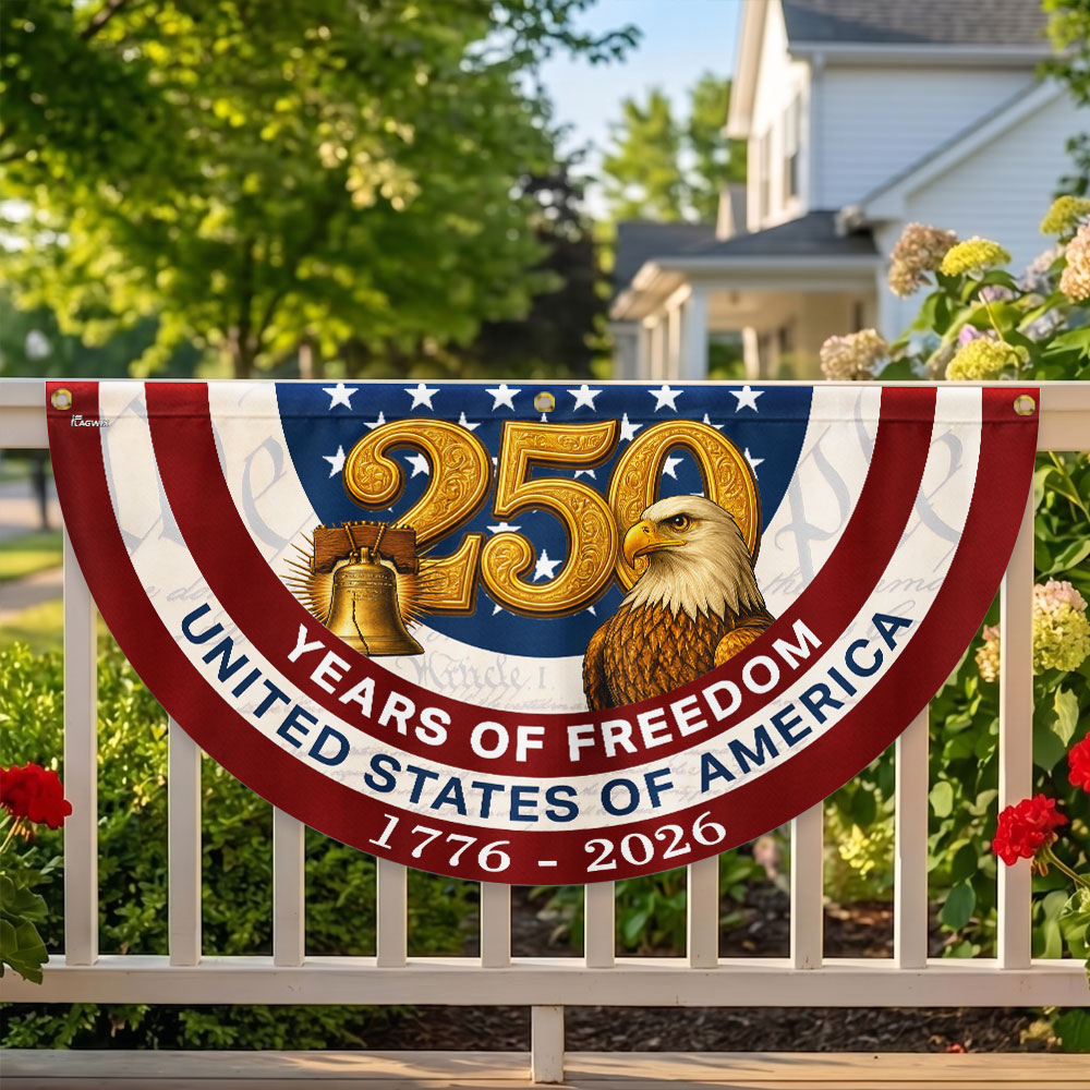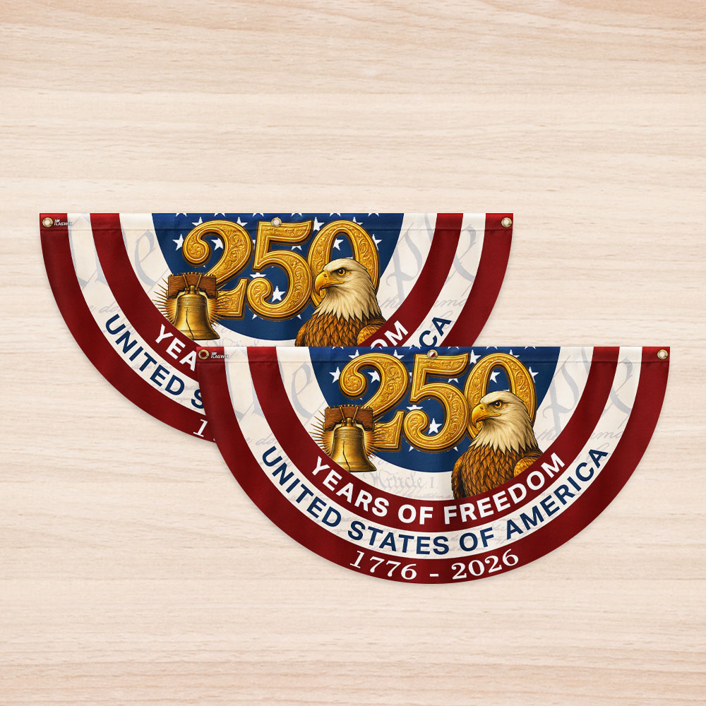250 Years of Freedom American Fan Flag, Patriotic 1776 2026 Flag Decor
