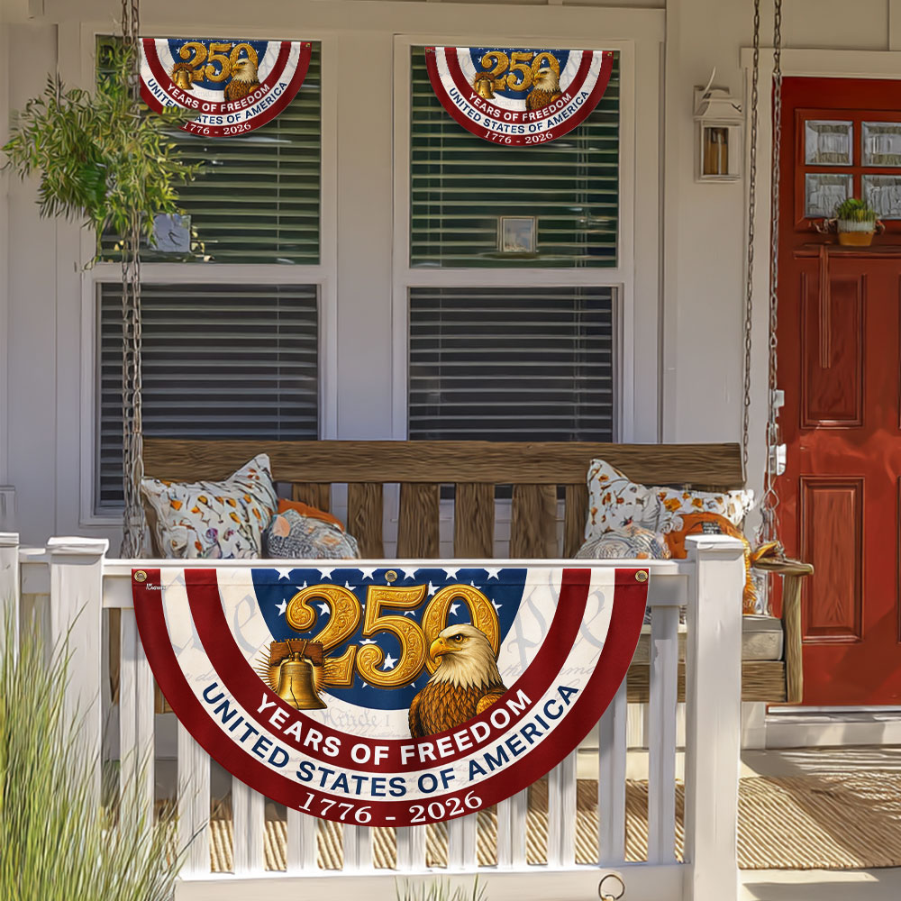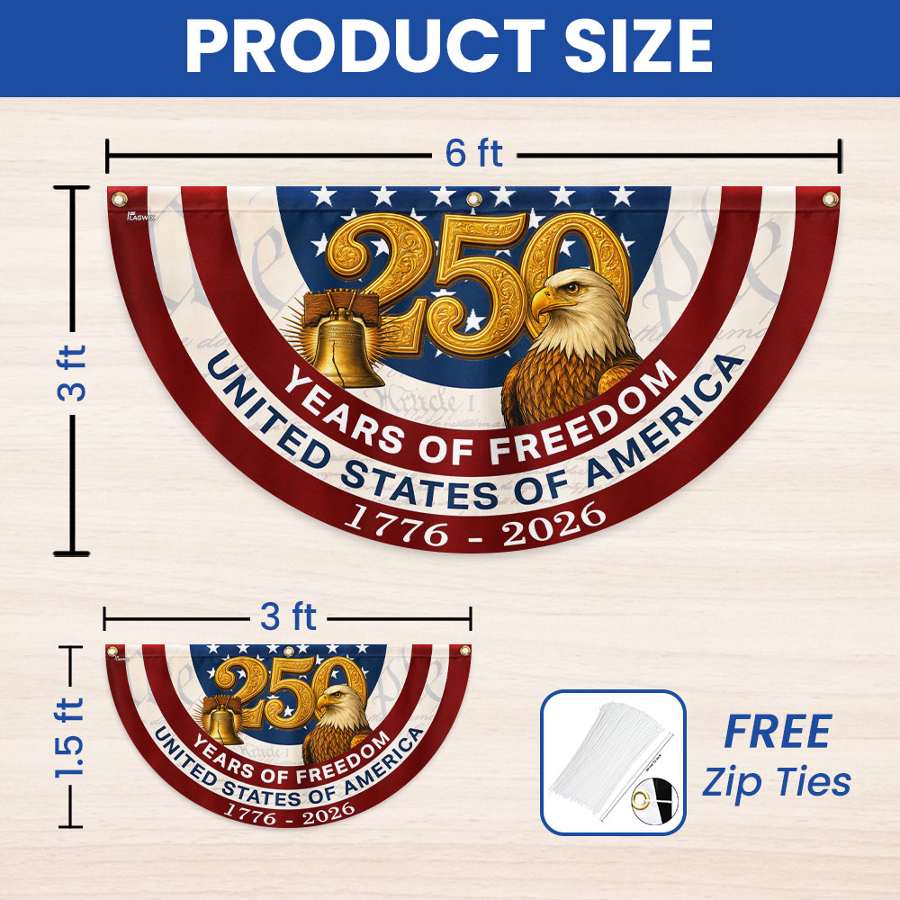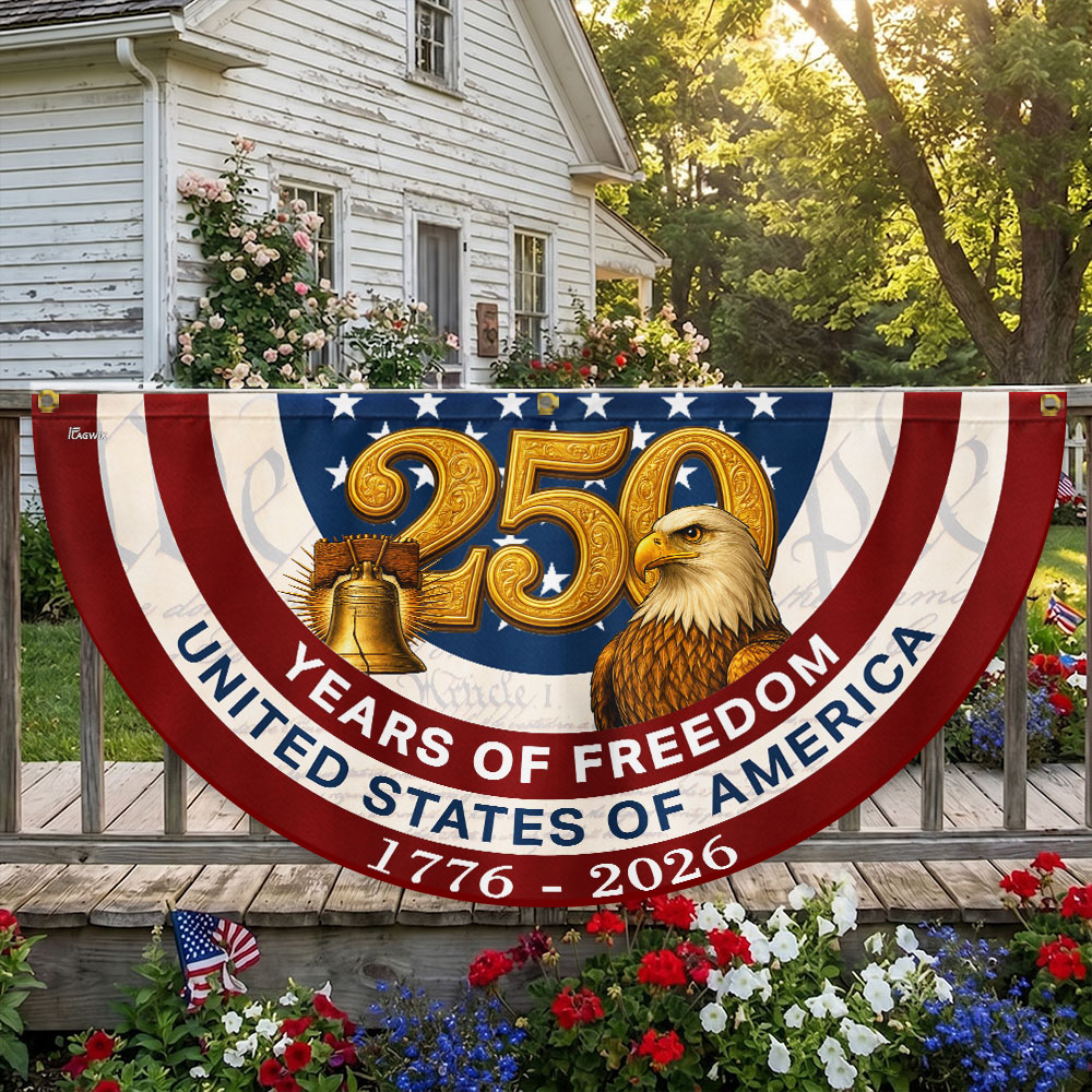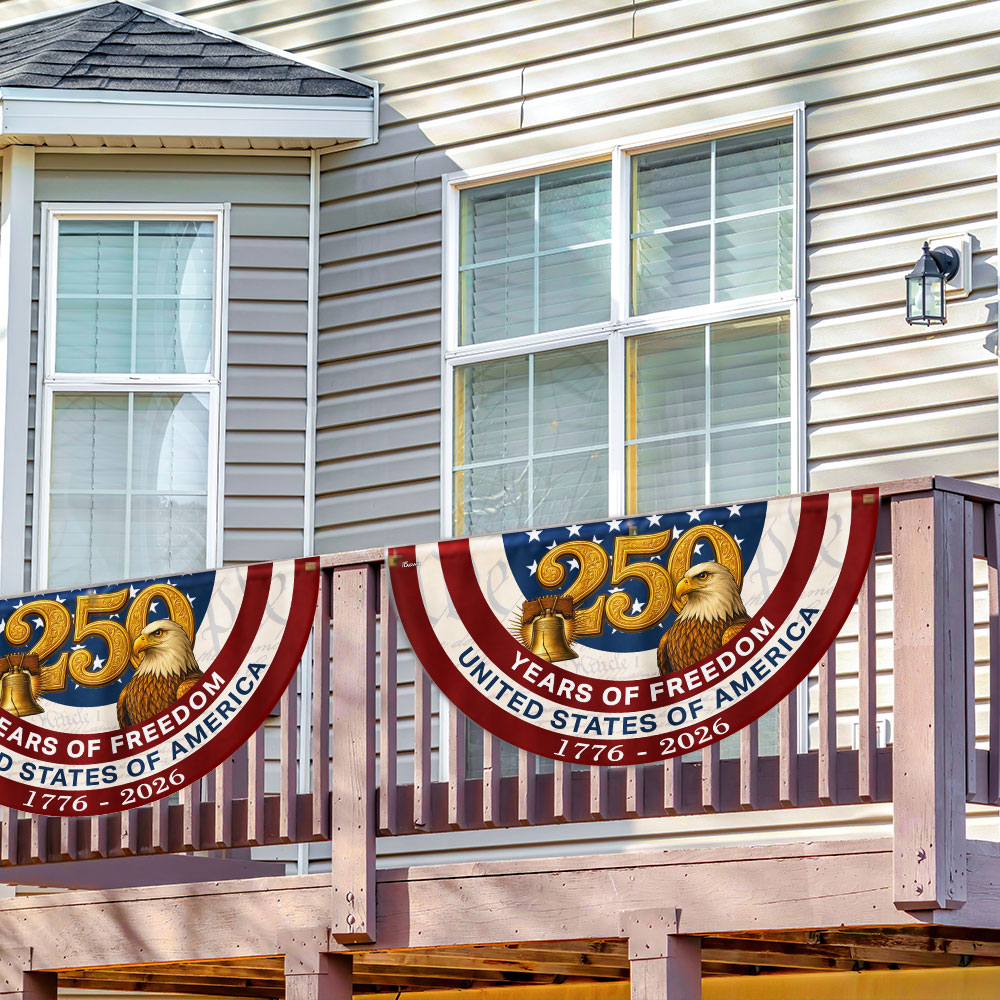 250 Years of Freedom American Fan Flag, Patriotic 1776 2026 Flag Decor