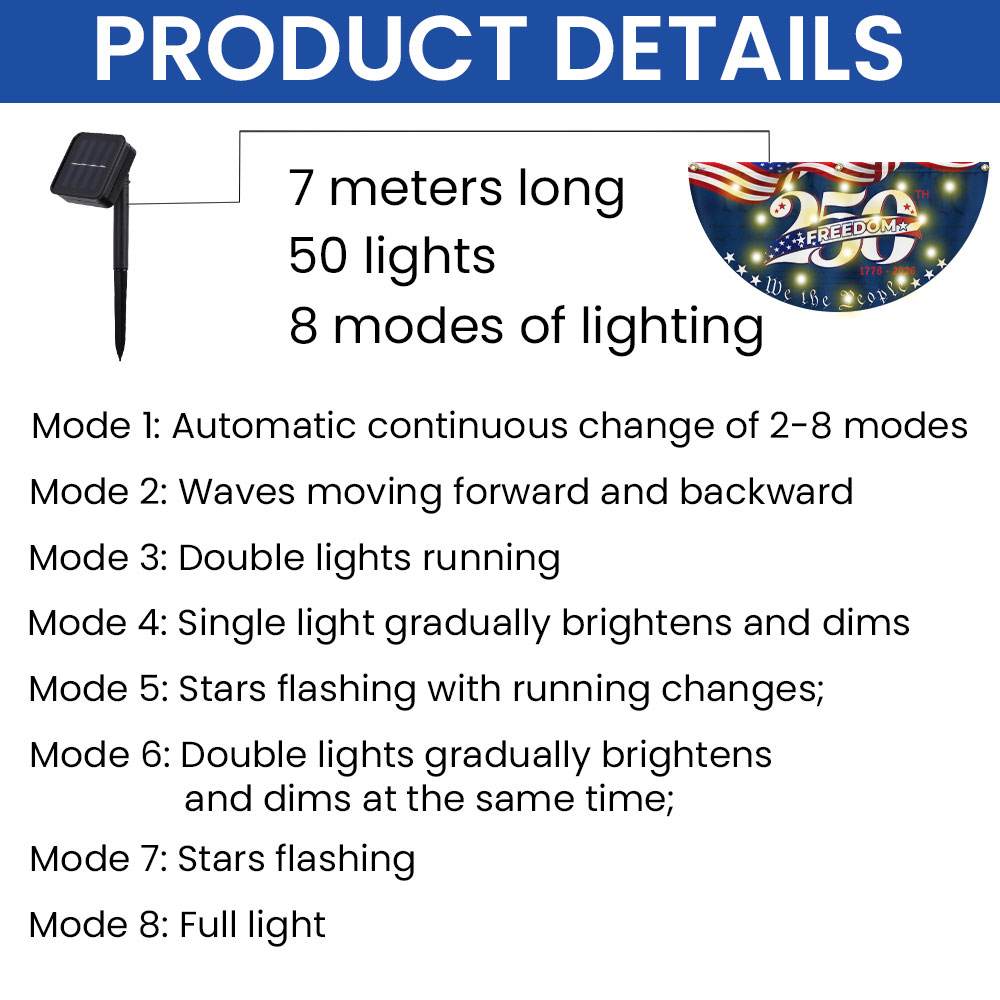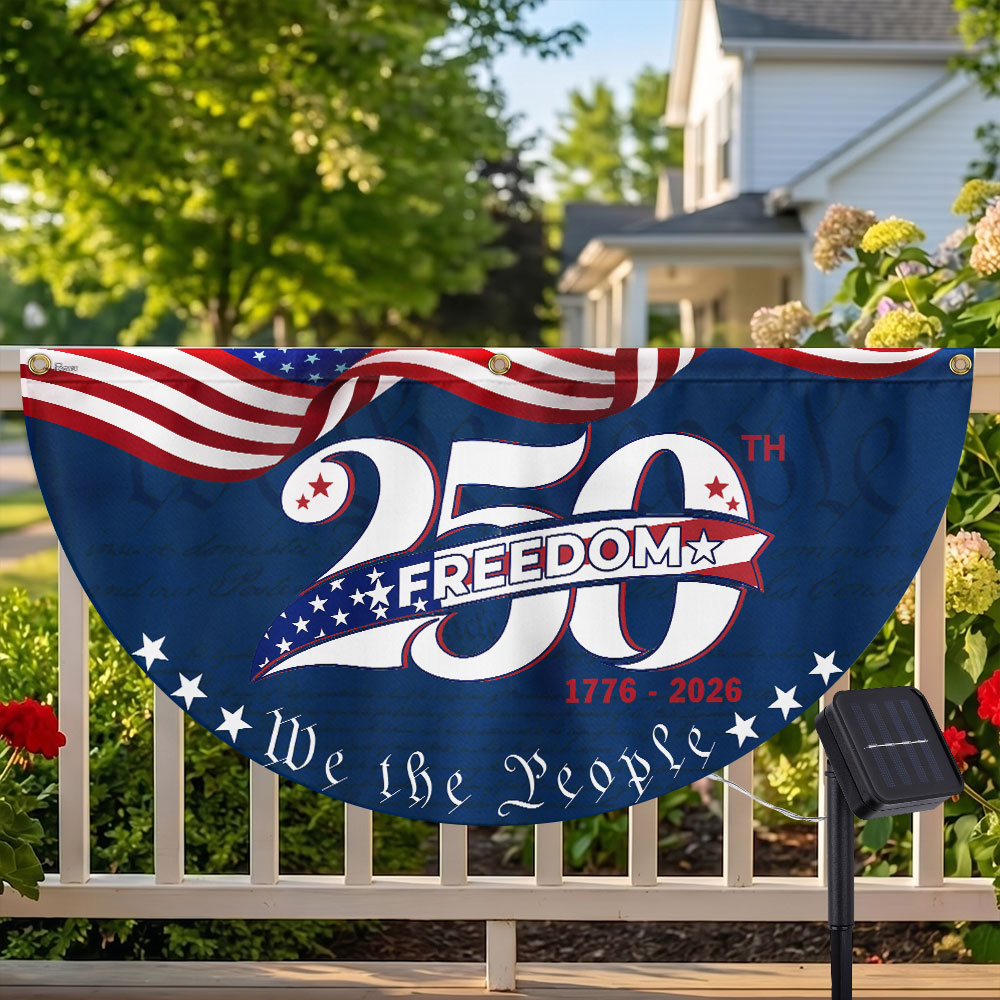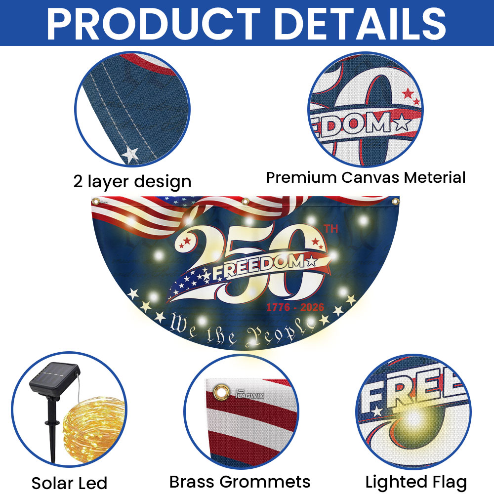 250 Years of Freedom American Fan Flag, Semiquincentennial 1776 2026 Solar Led Flag Decor