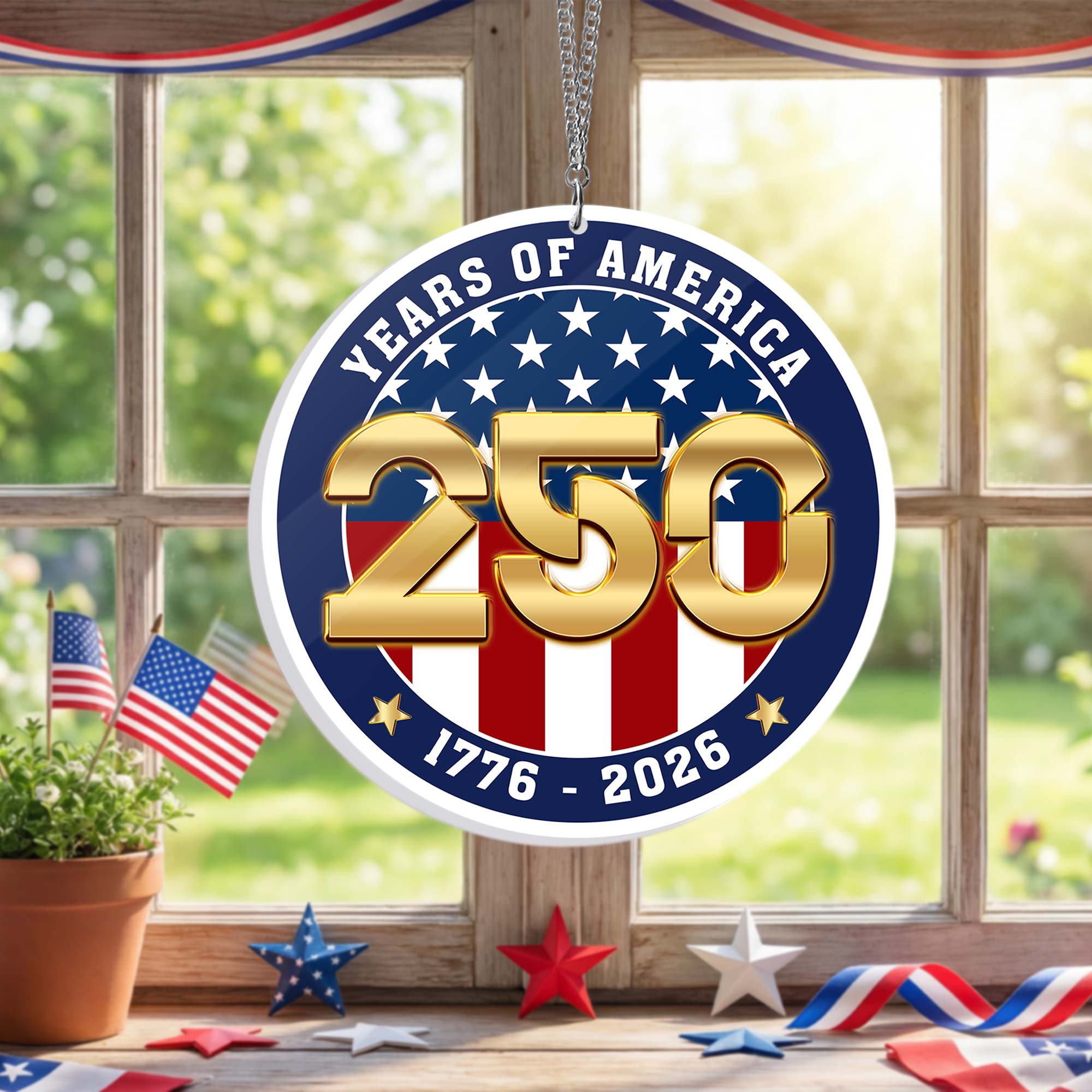 250 Years of Freedom American Flag 1776 2026 Window Hanging Decor