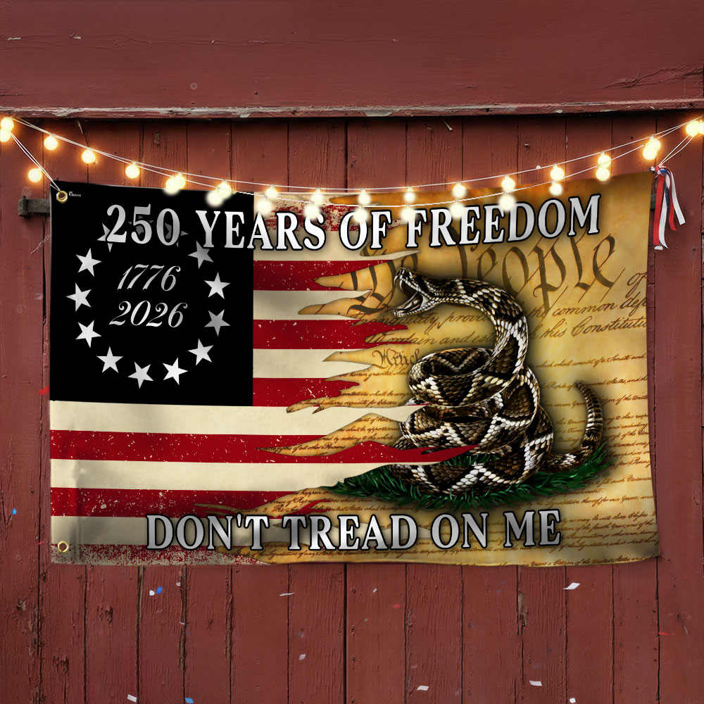 250 Years of Freedom Flag, 1776 2026 Gadsden Dont Tread On Me Grommet Flag