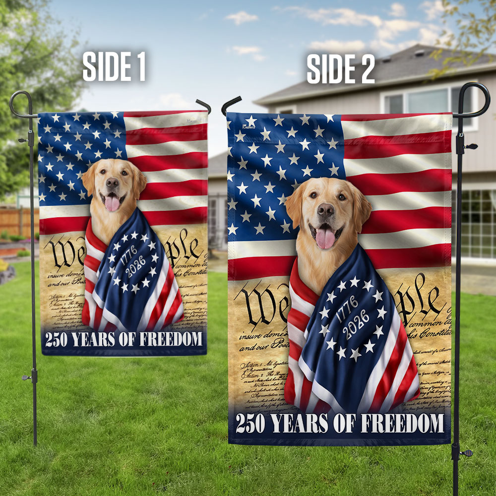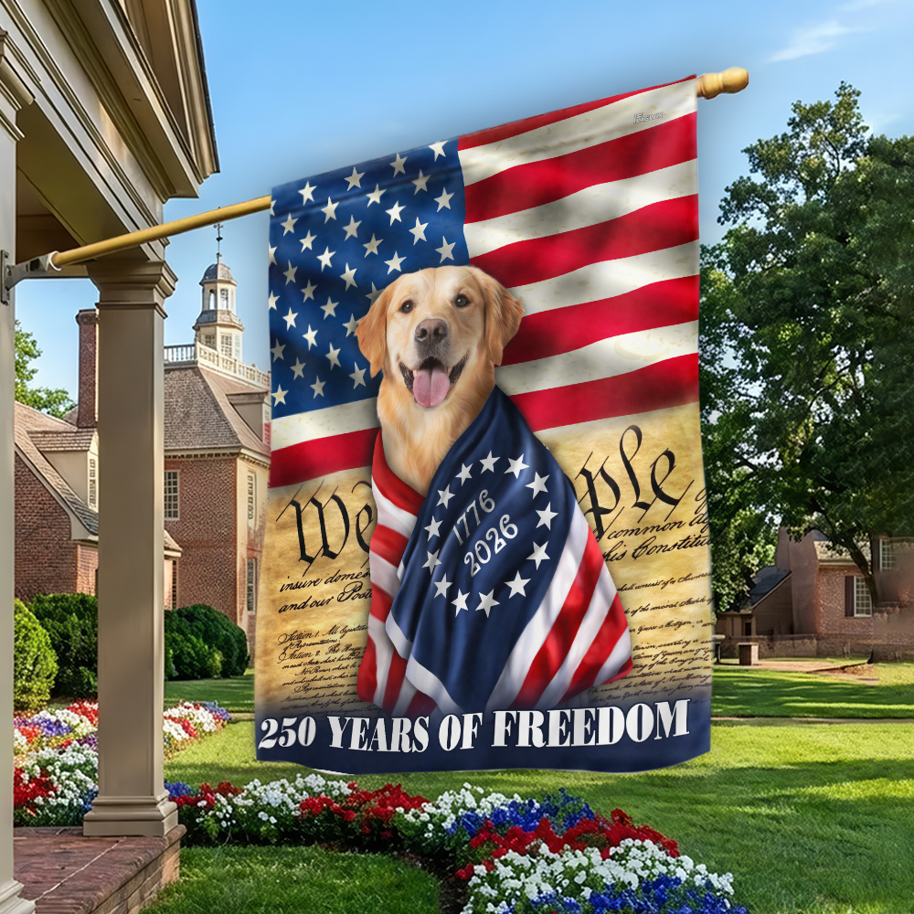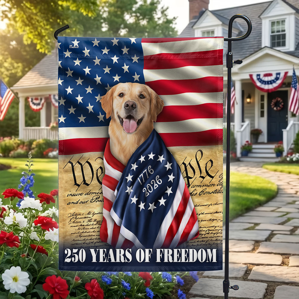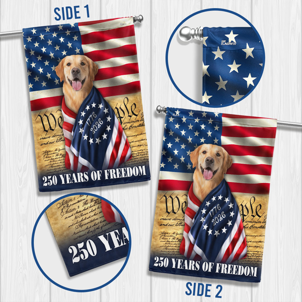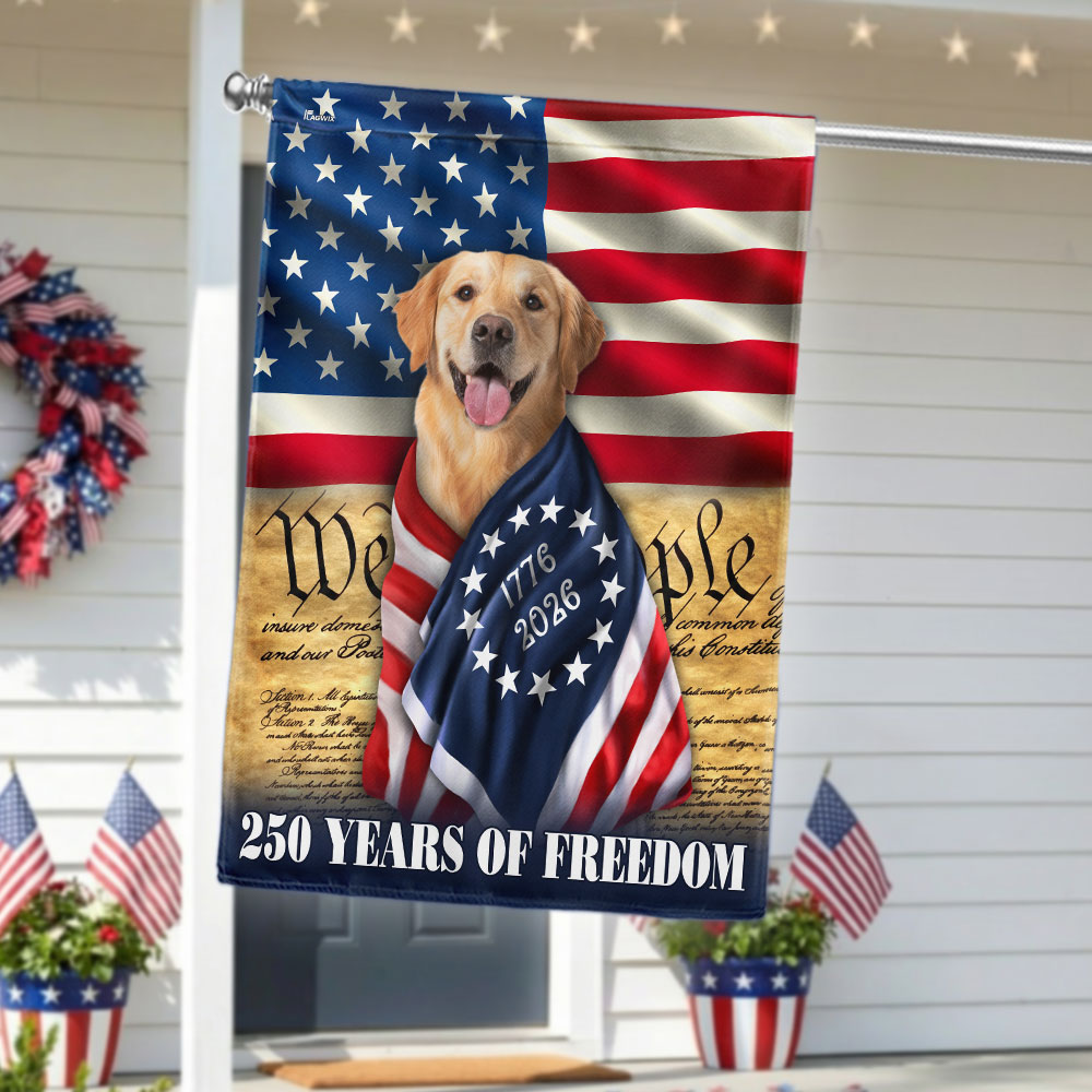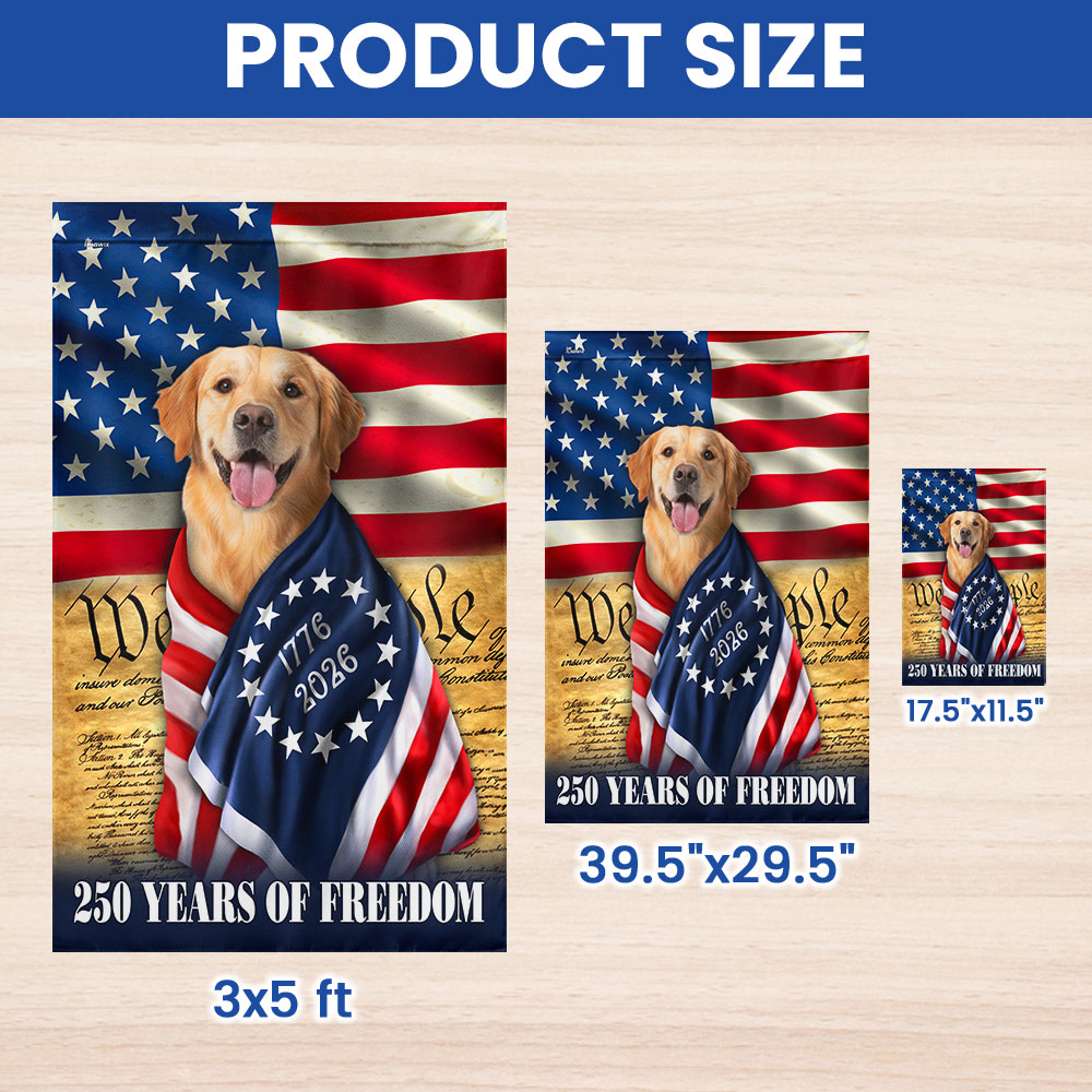 250 Years of Freedom Flag, Golden Retriever Wrapped in Glory US Flag