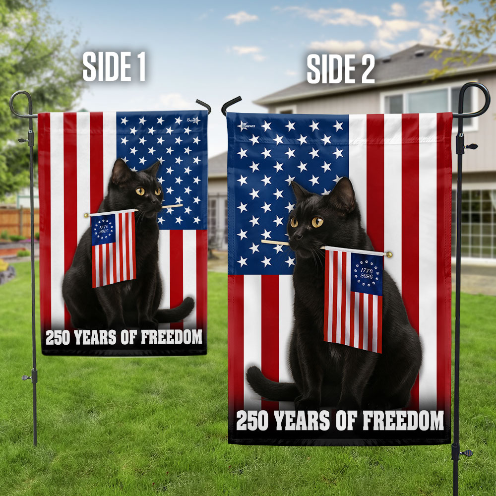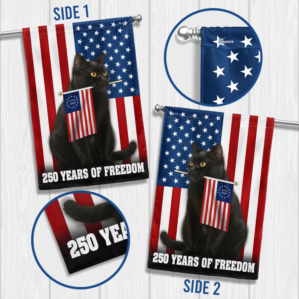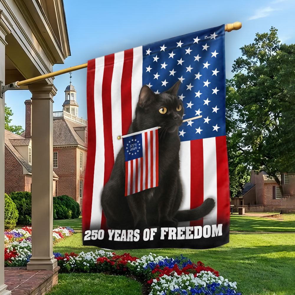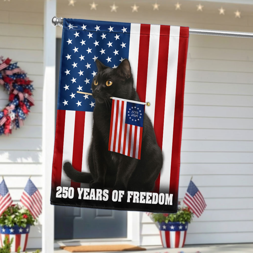 250 Years of Freedom Flag, Patriotic Black Cat American Flag