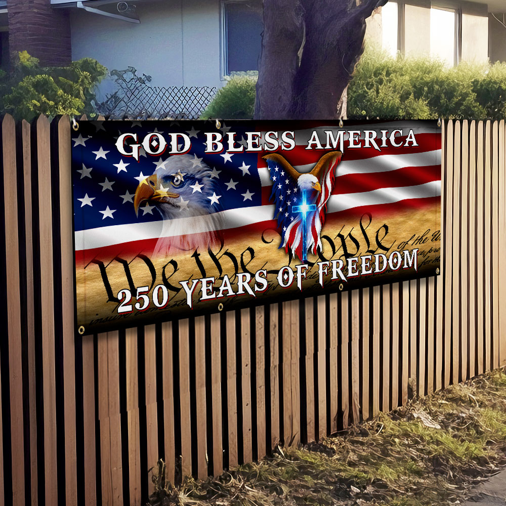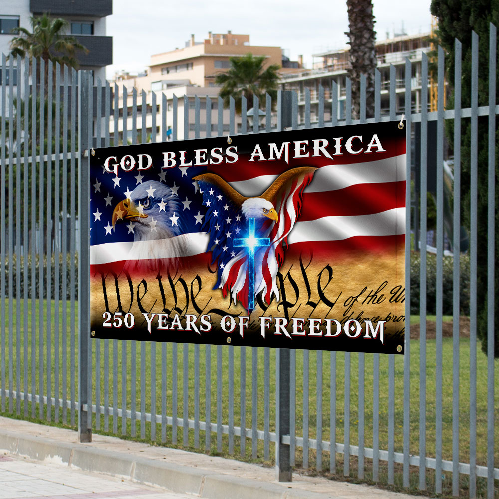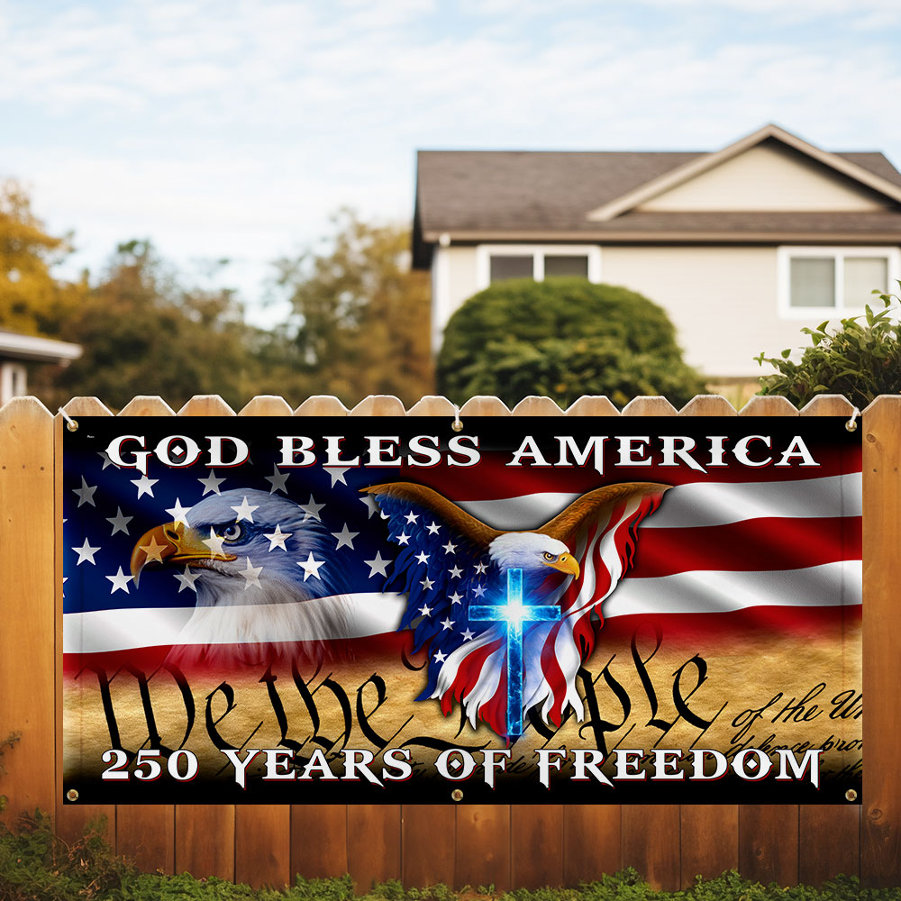 250 Years of Freedom Flag with God Bless America Patriotic Fence Banner