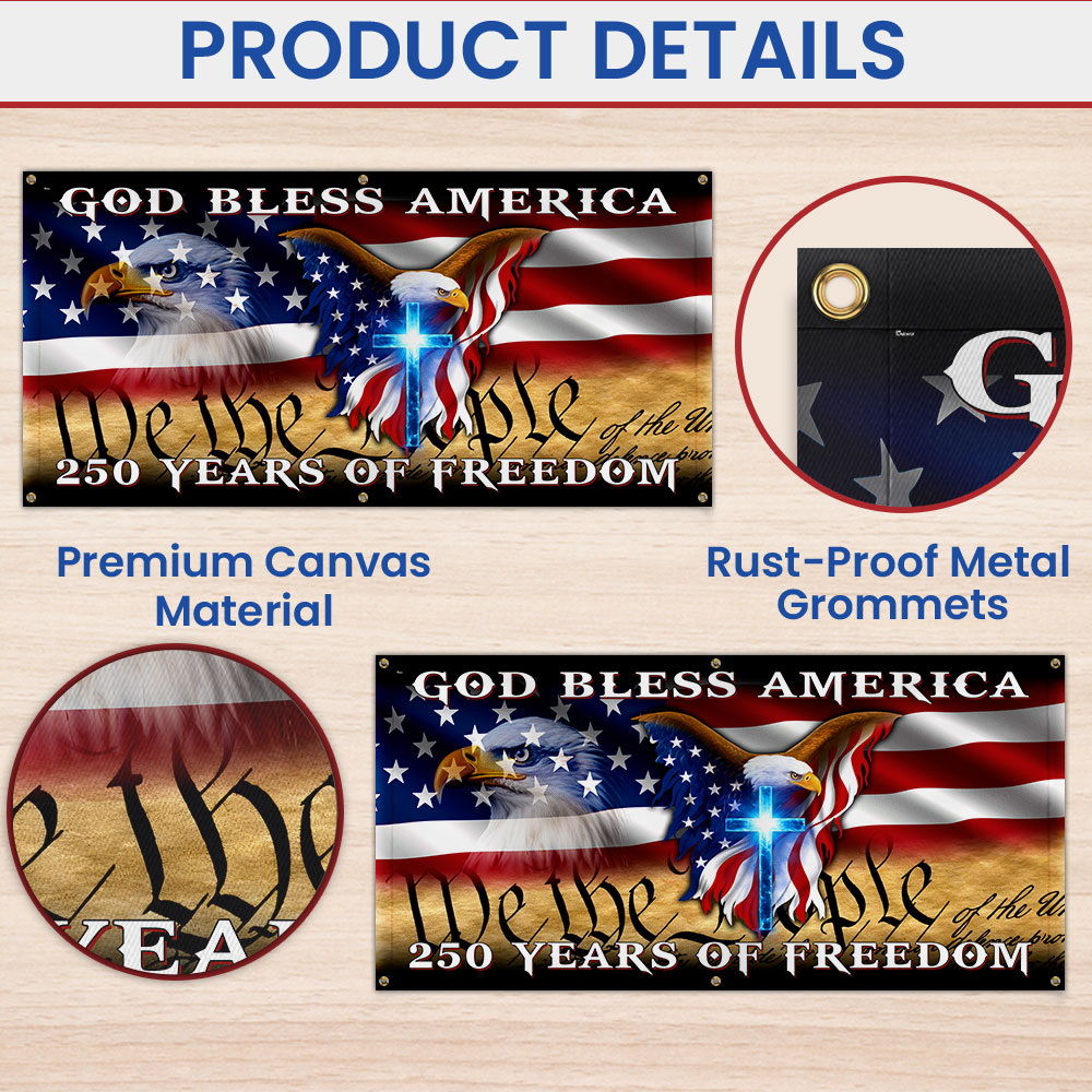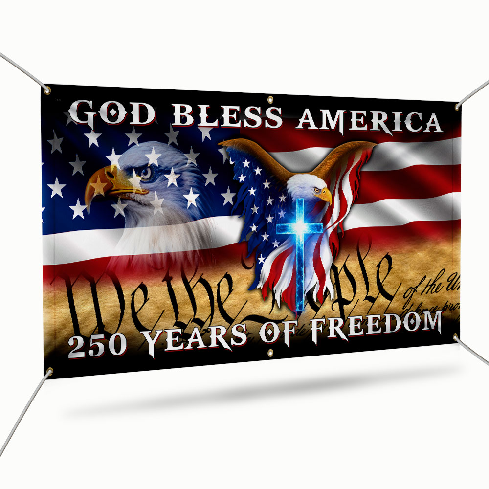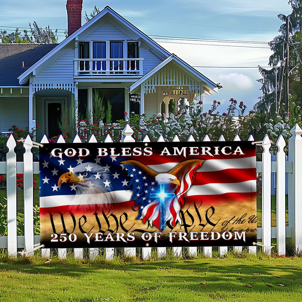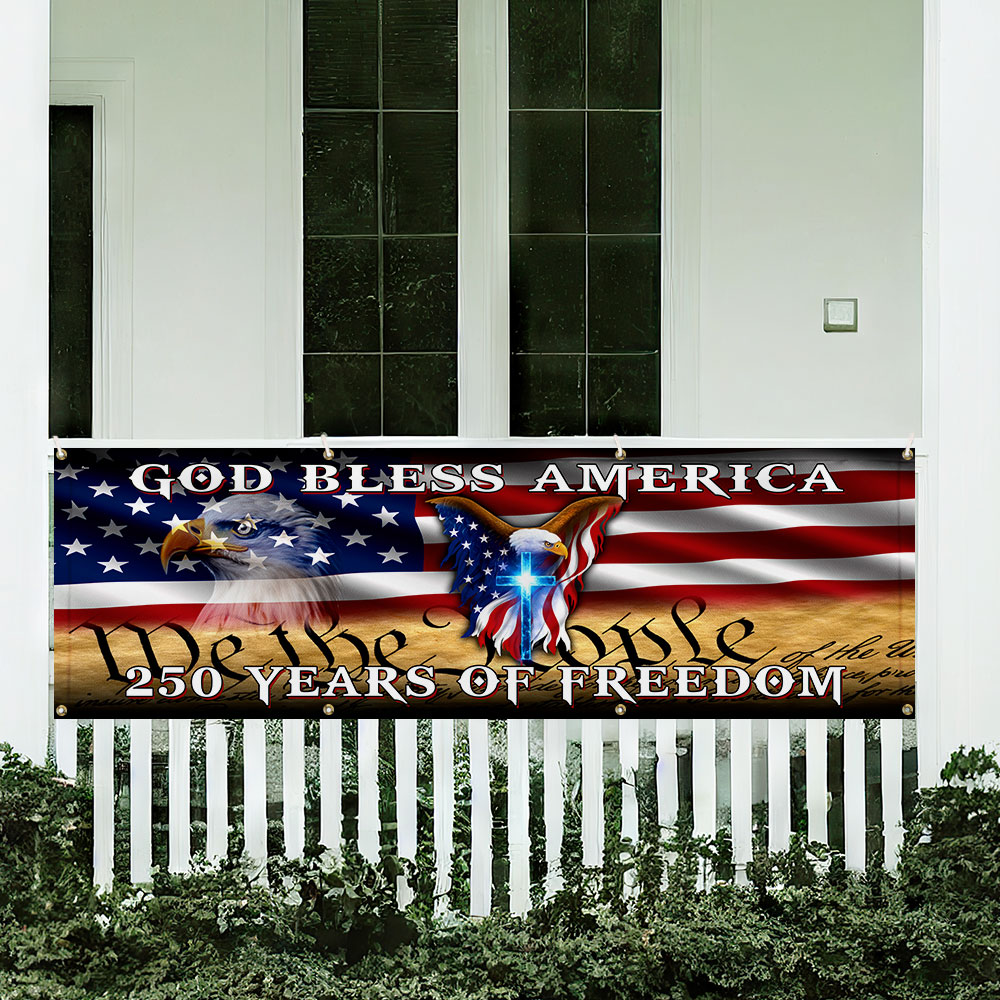 250 Years of Freedom Flag with God Bless America Patriotic Fence Banner