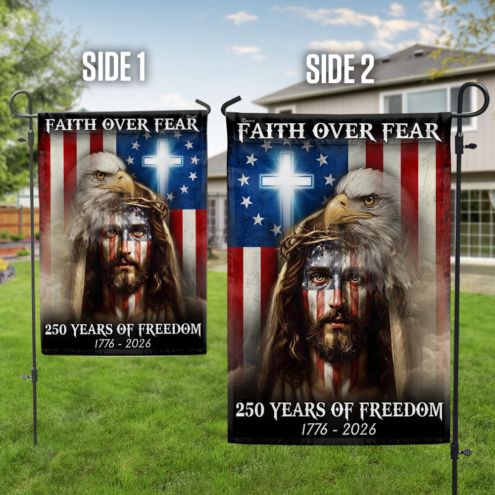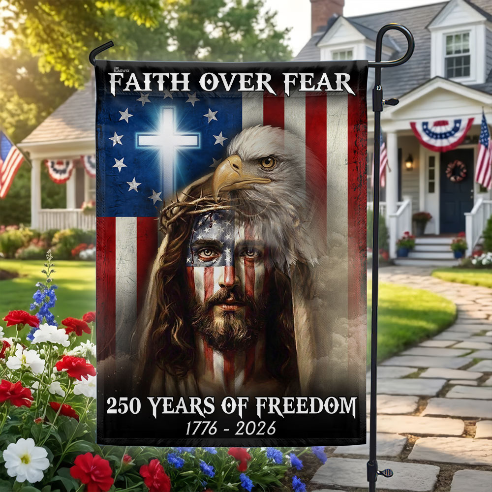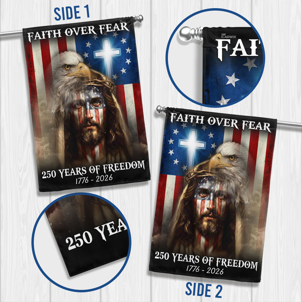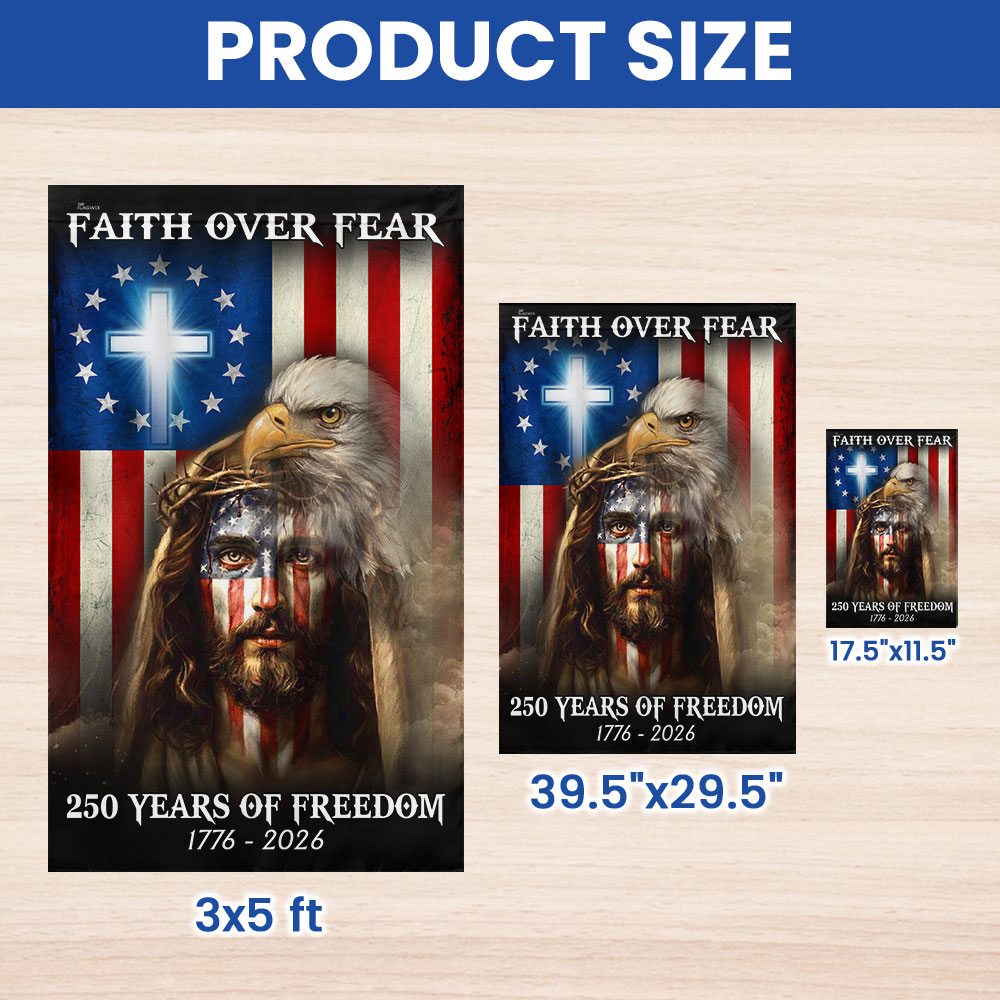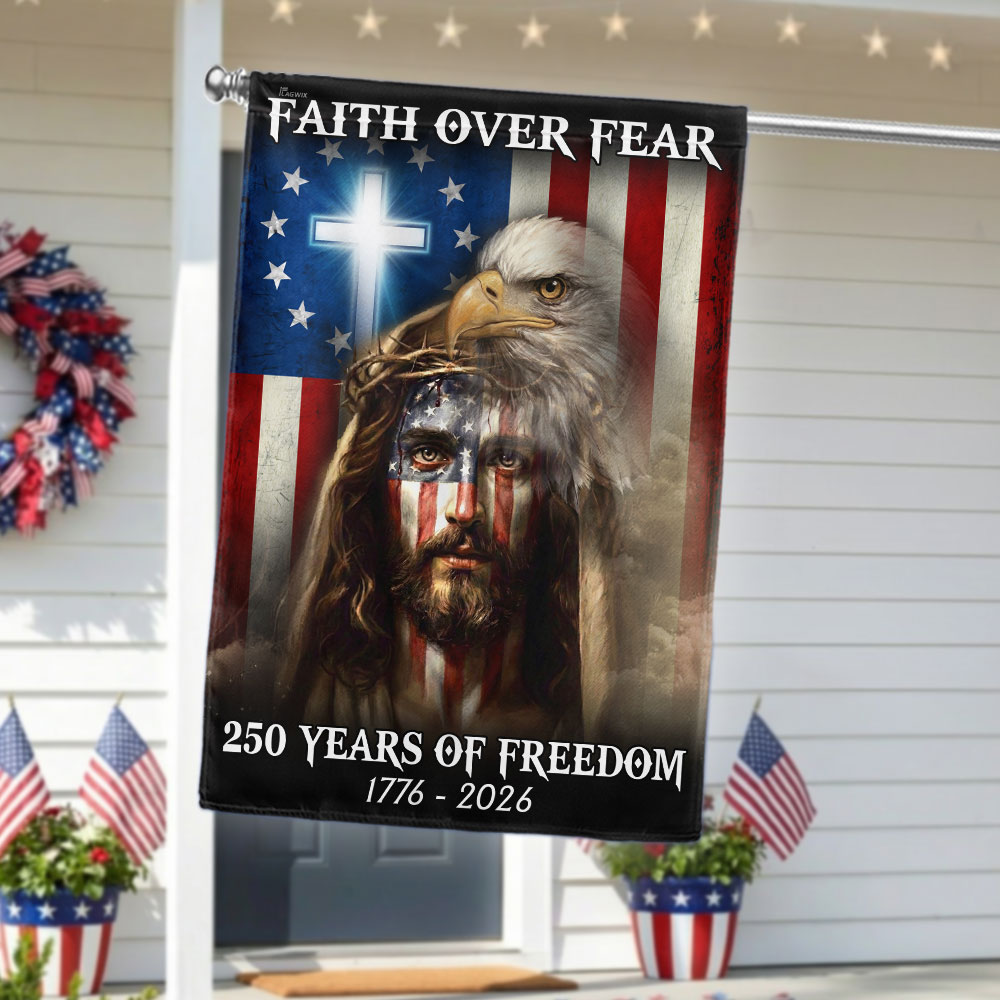 250 Years of Freedom Jesus Flag, Faith Over Fear Patriotic Christ Flag