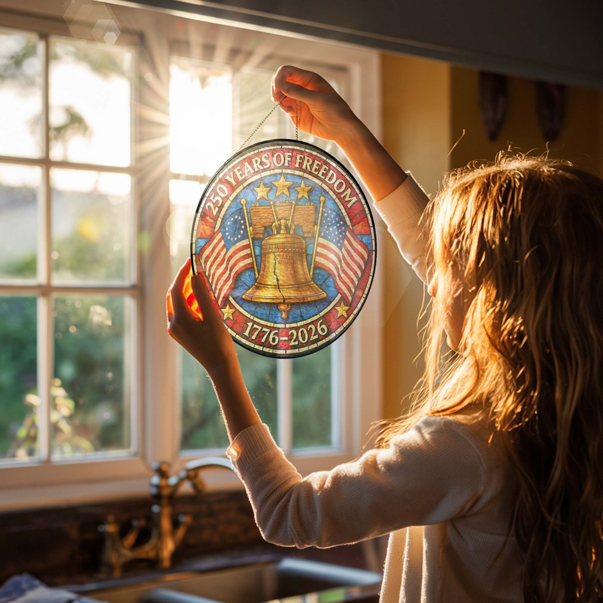250 Years of Freedom Liberty Bell Stained Glass Suncatcher