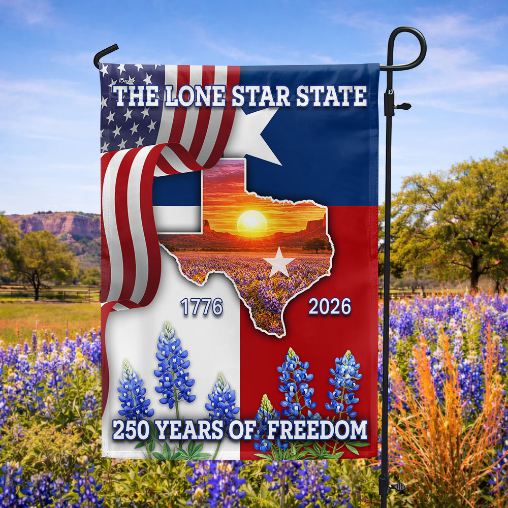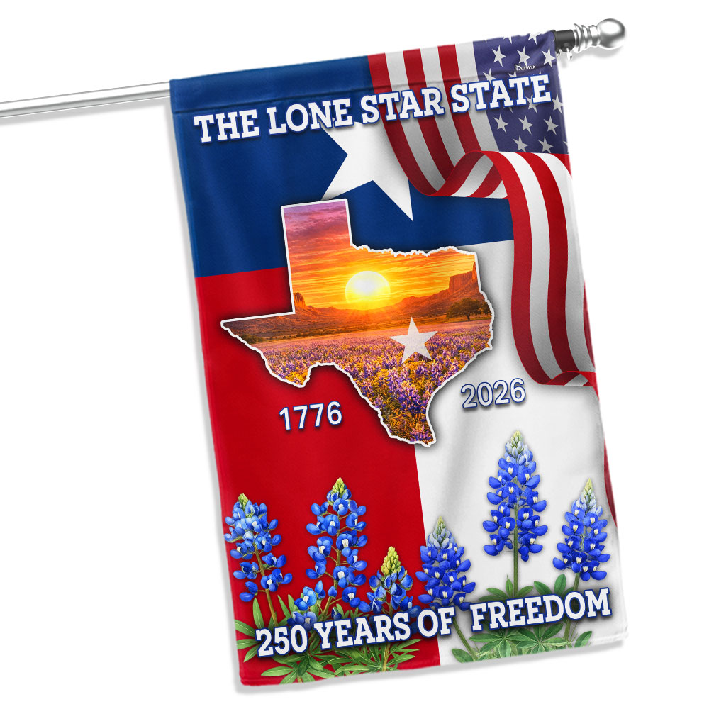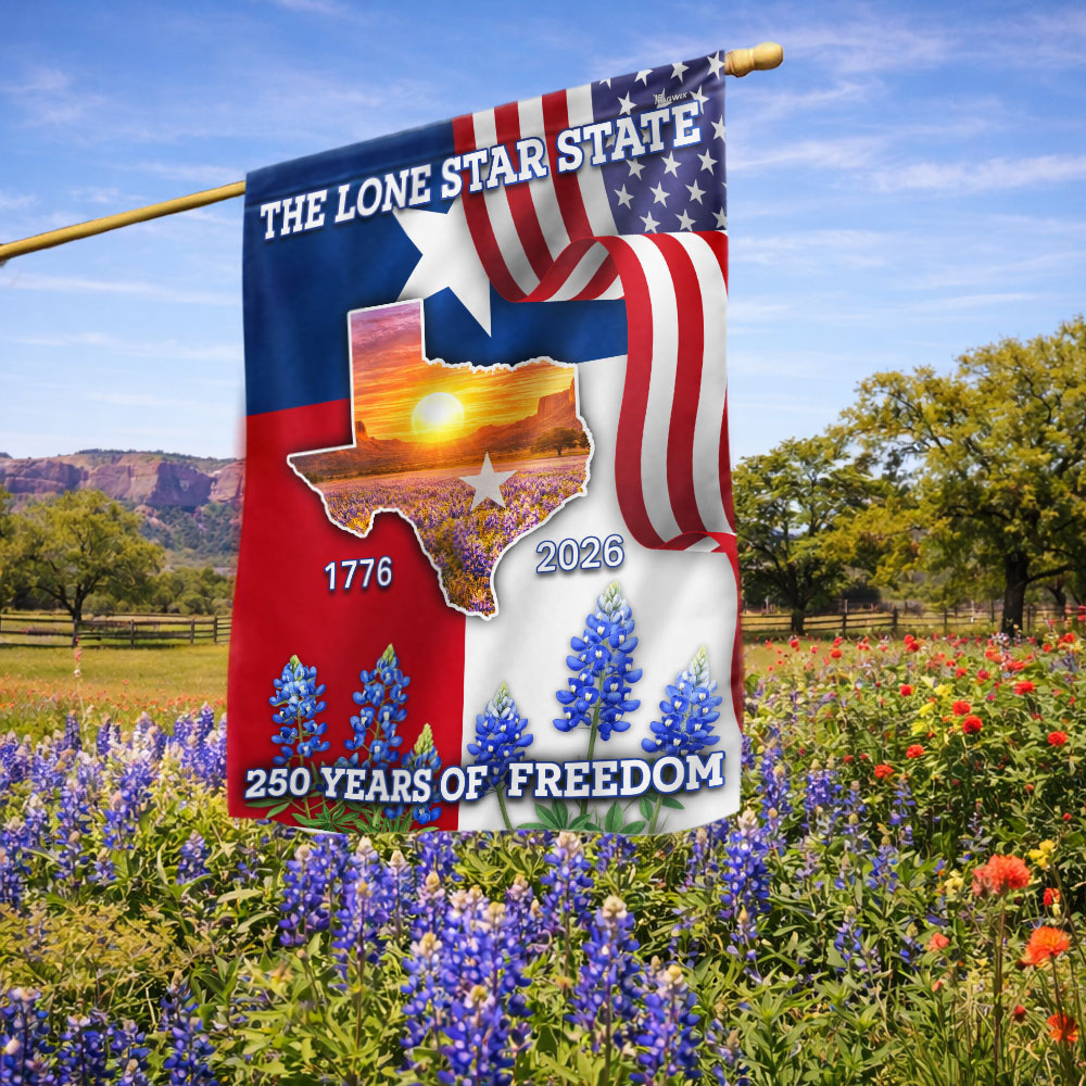 250 Years of Freedom Patriotic Texas Flag, Bluebonnet Lone Star Texas Map
