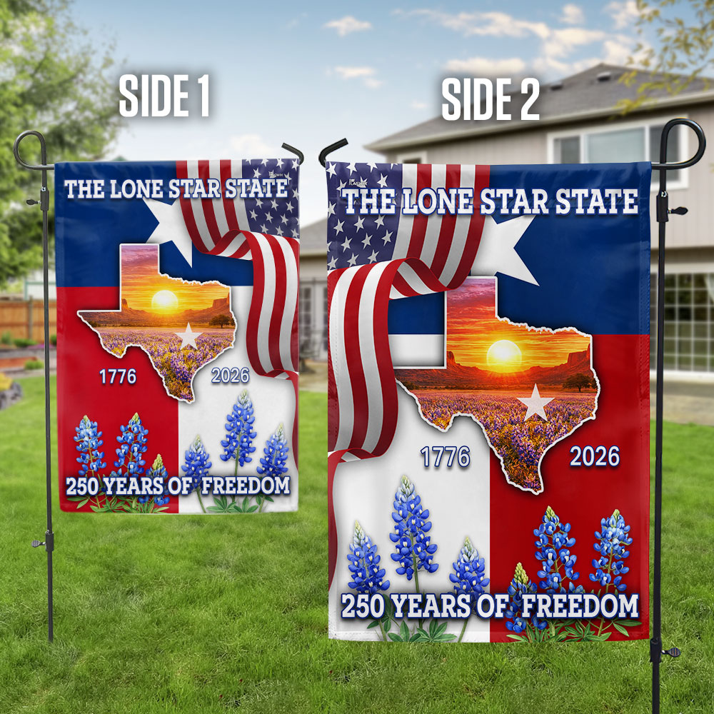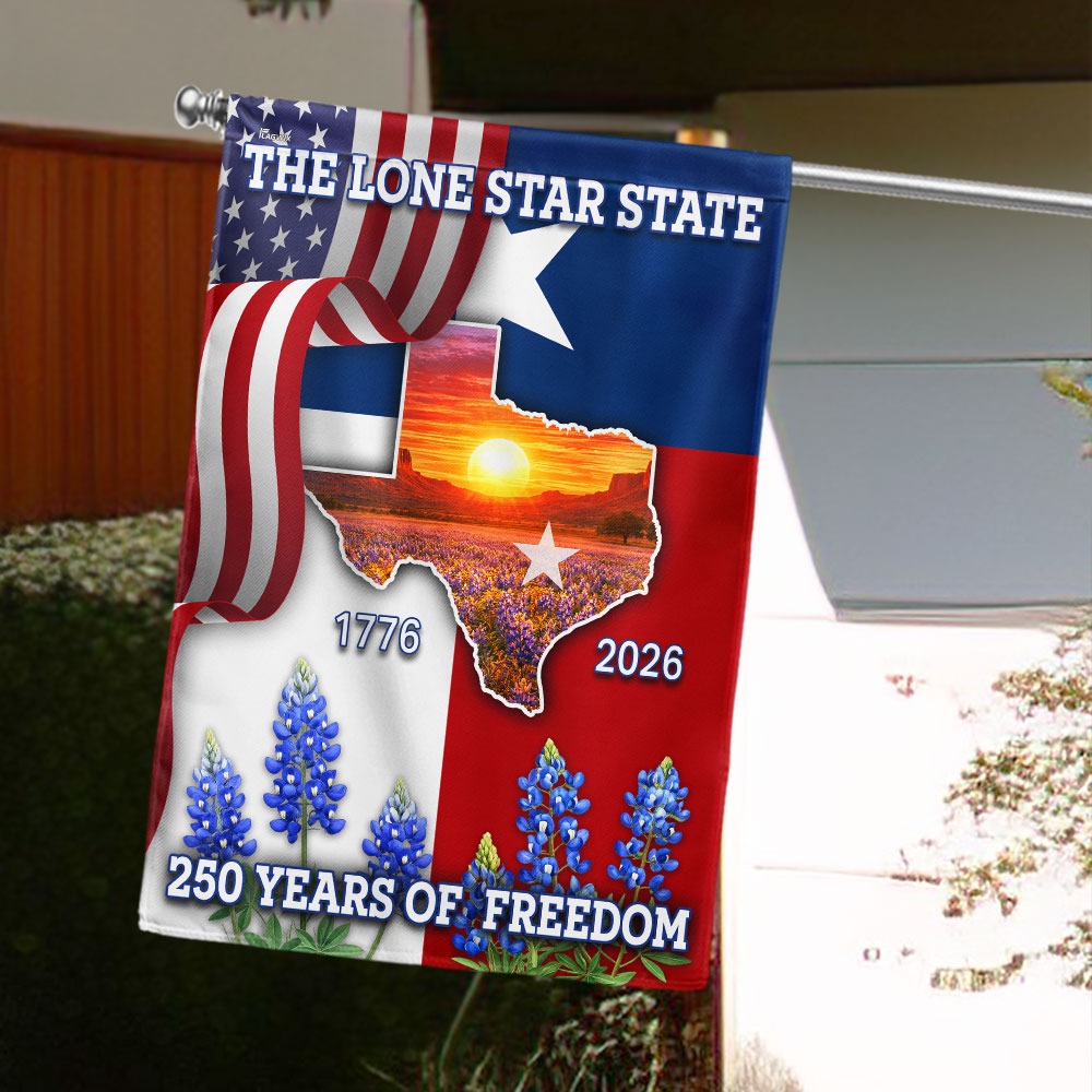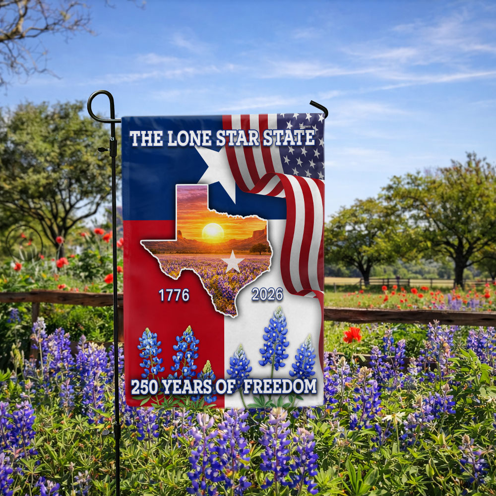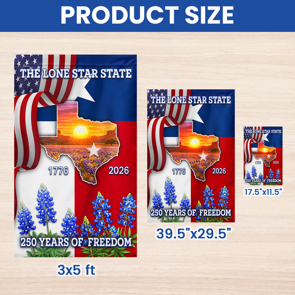 250 Years of Freedom Patriotic Texas Flag, Bluebonnet Lone Star Texas Map
