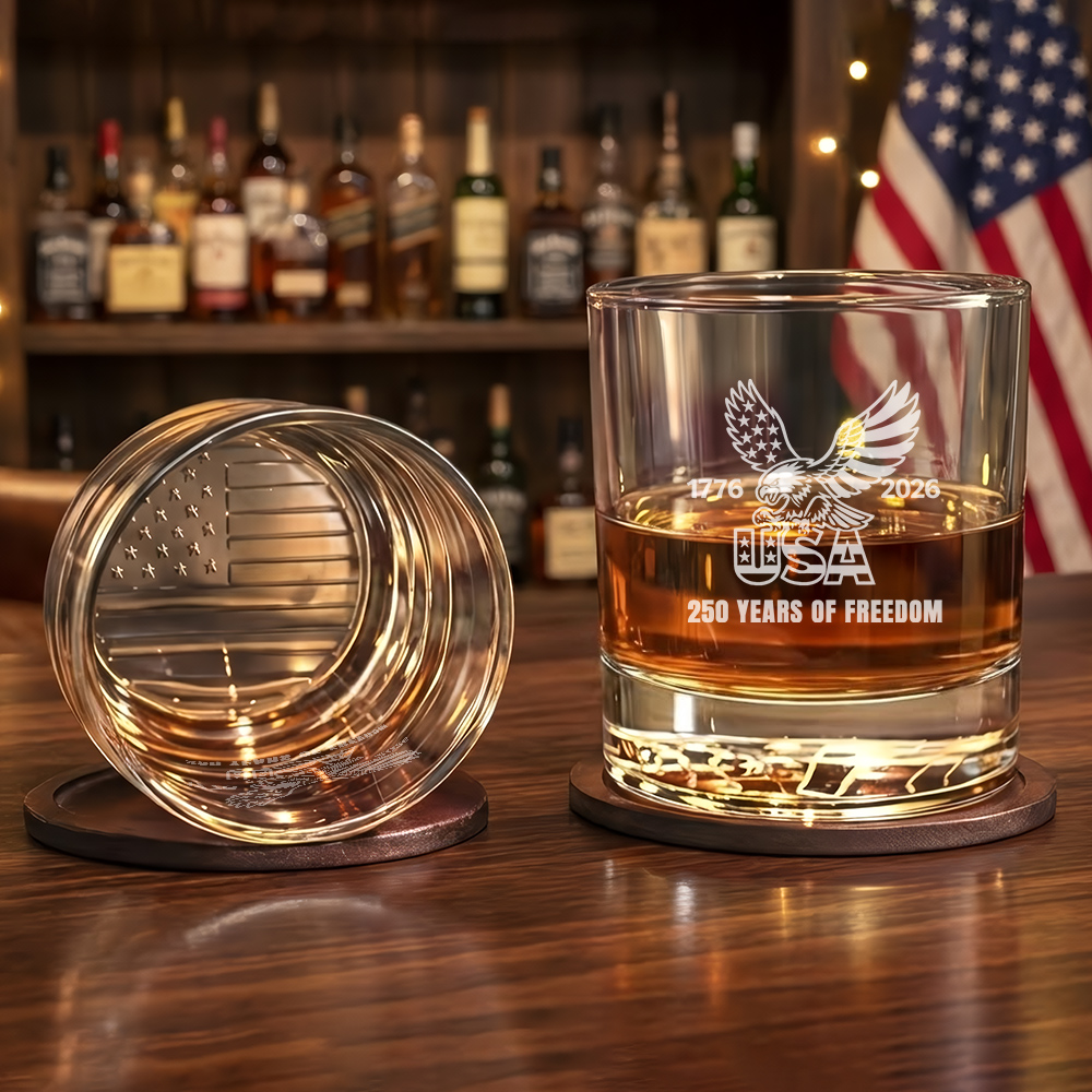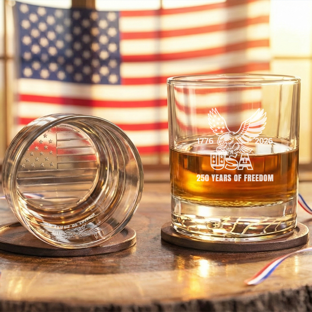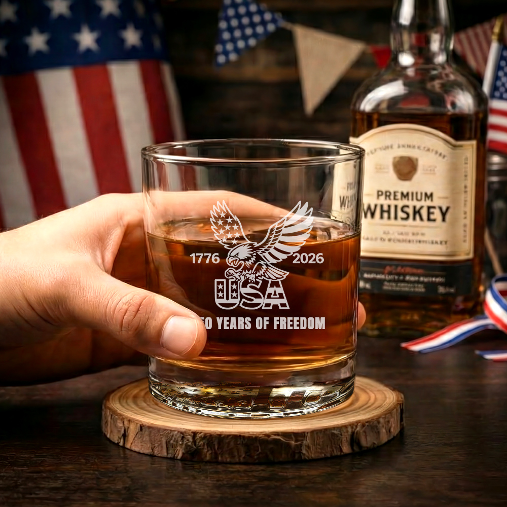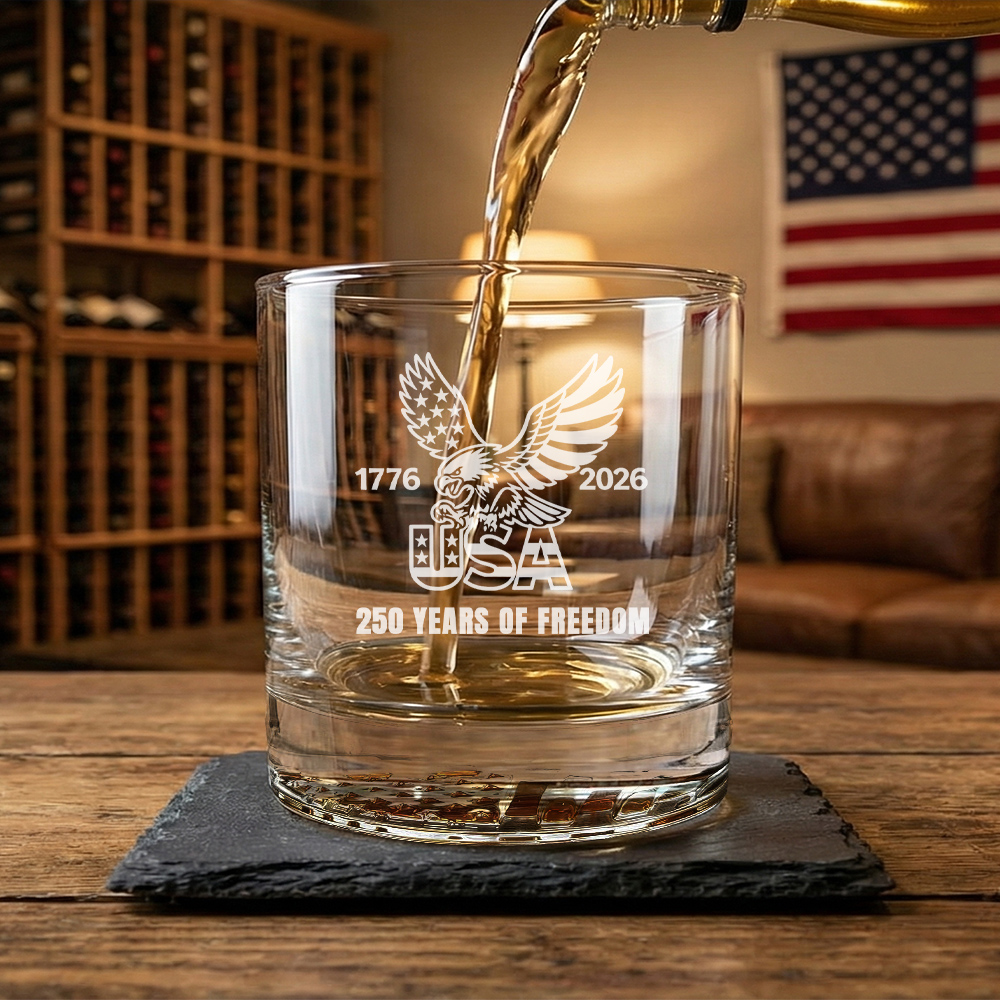 250 Years of Freedom USA 1776 2026 Engraved American Whiskey Glass
