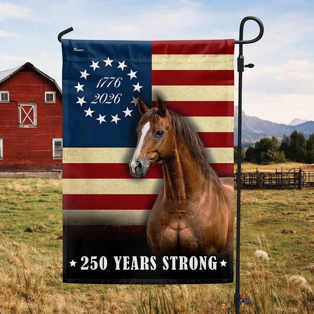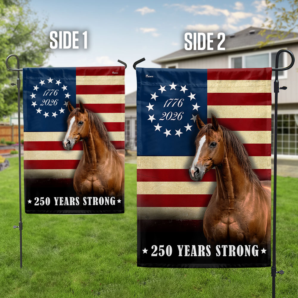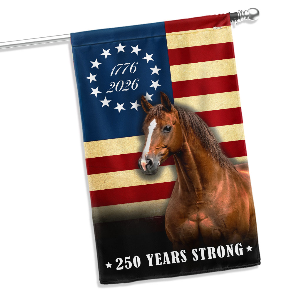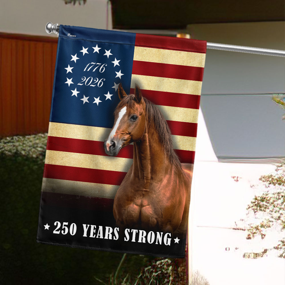 250 Years Strong Horse US Flag, Patriotic Horse Betsy Ross 250 Flag