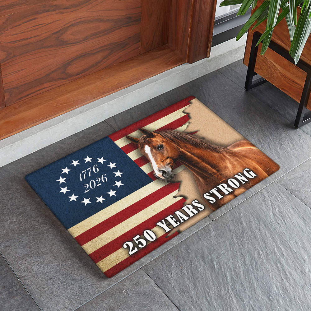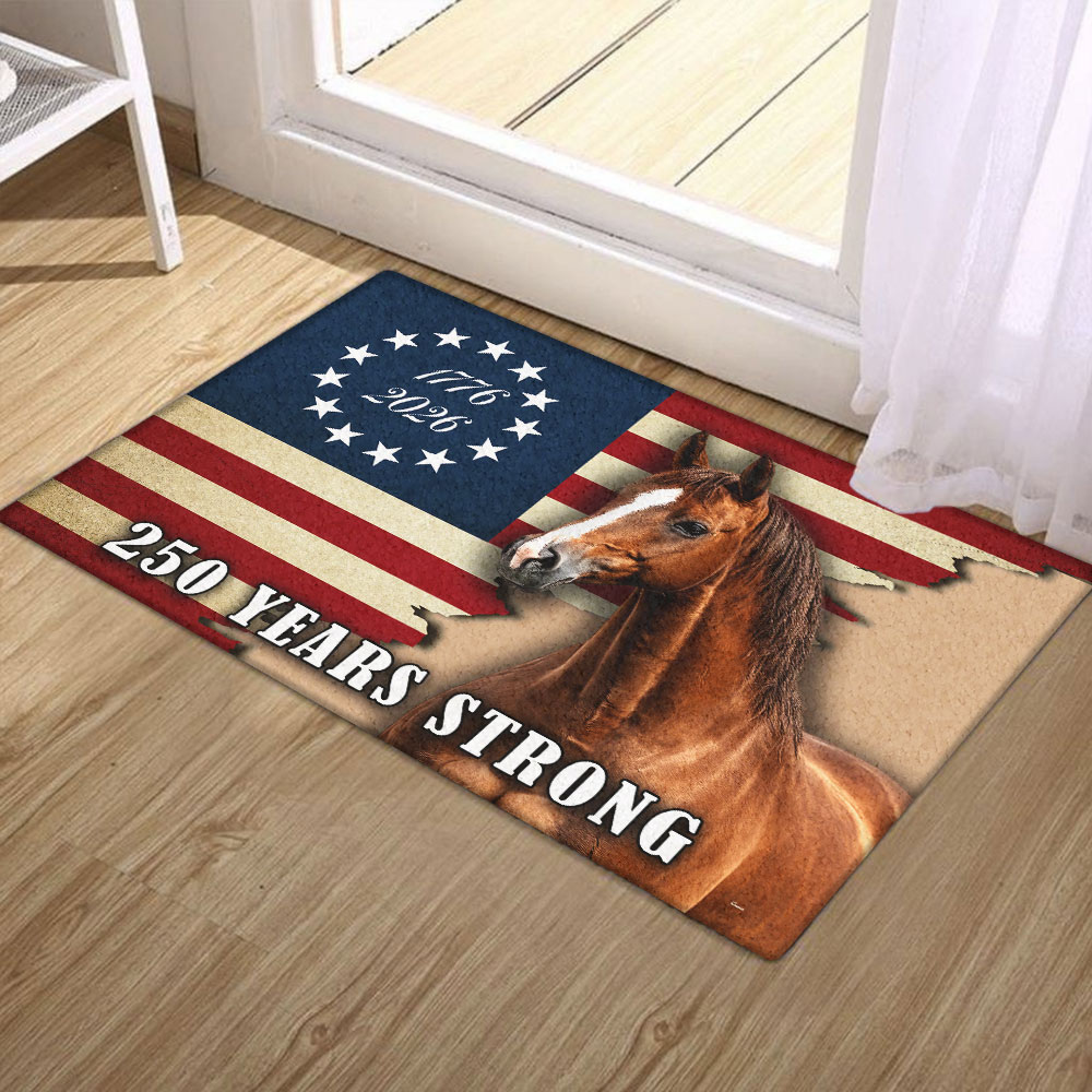 250 Years Strong Patriotic Horse American Flag Doormat