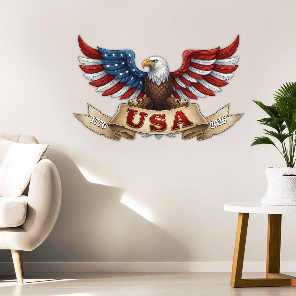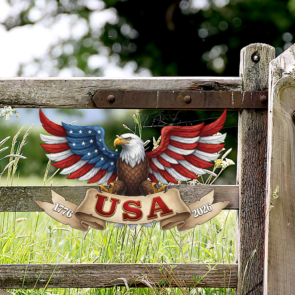 250 Years USA Eagle 1776 2026 Patriotic Independence Day Hanging Metal Sign