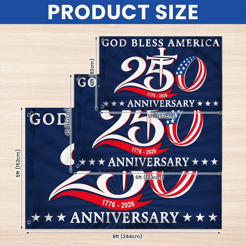 250th Anniversary 1776 2026 American Flag, God Bless America Christ Flag