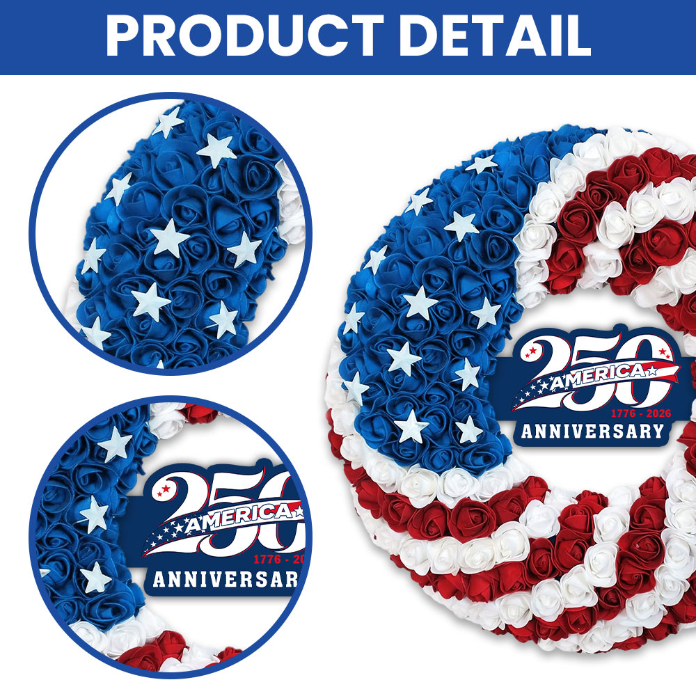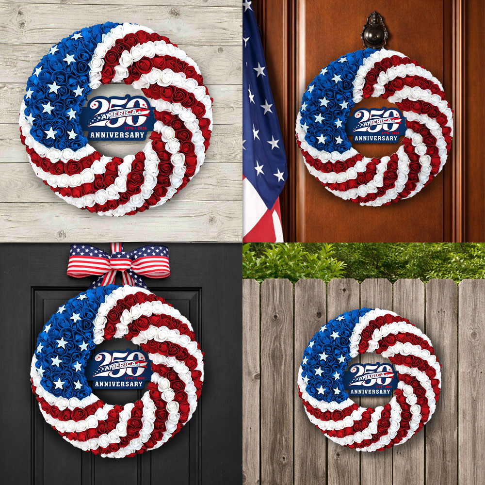 250th Anniversary American Flag Wreath, 1776 2026 Patriotic Front Door Decor