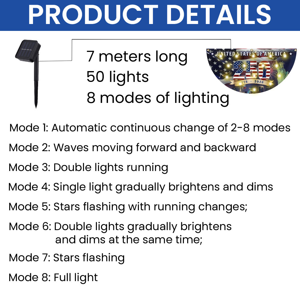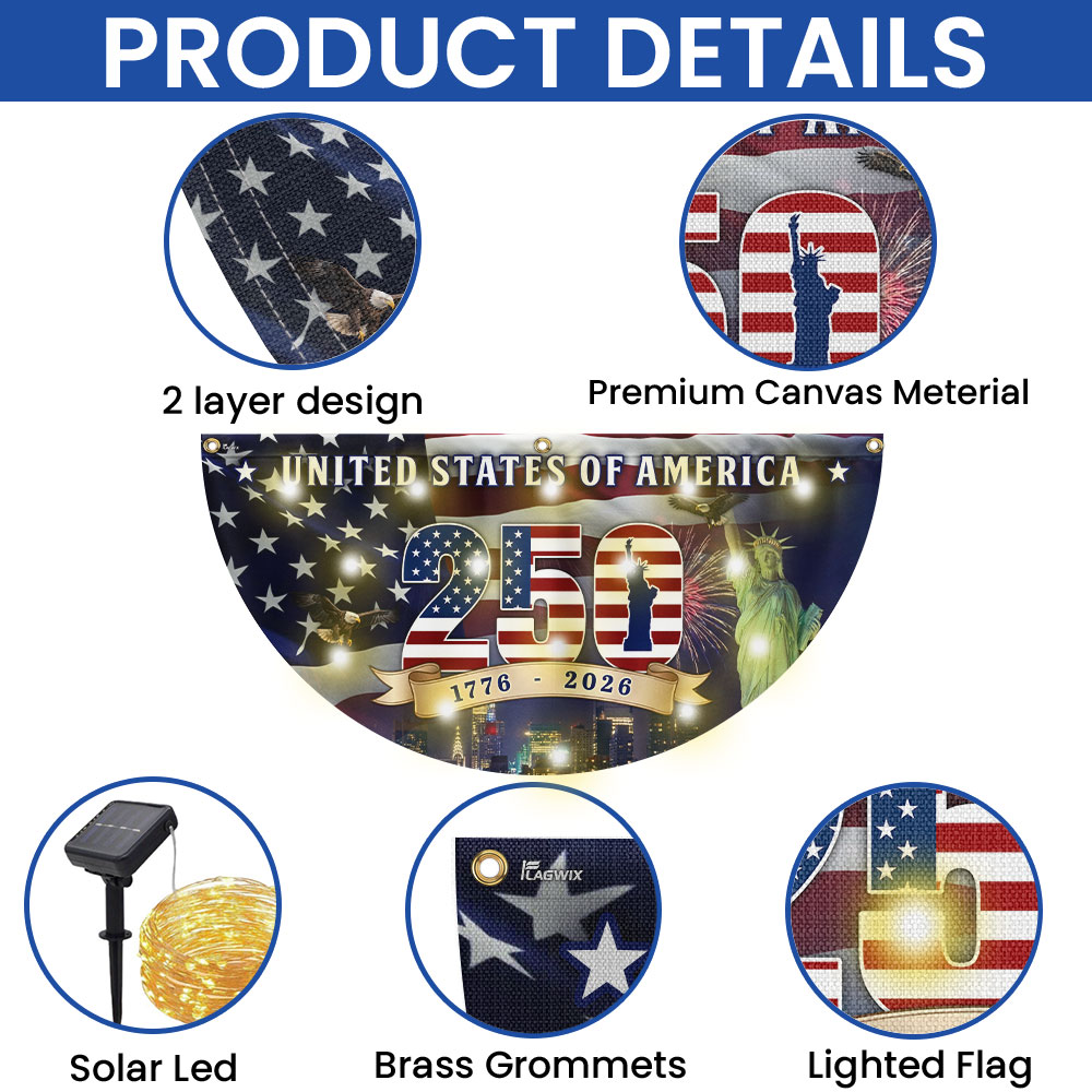 250th Anniversary Flag, 1776 2026 United States of America Solar Led Fan Flag