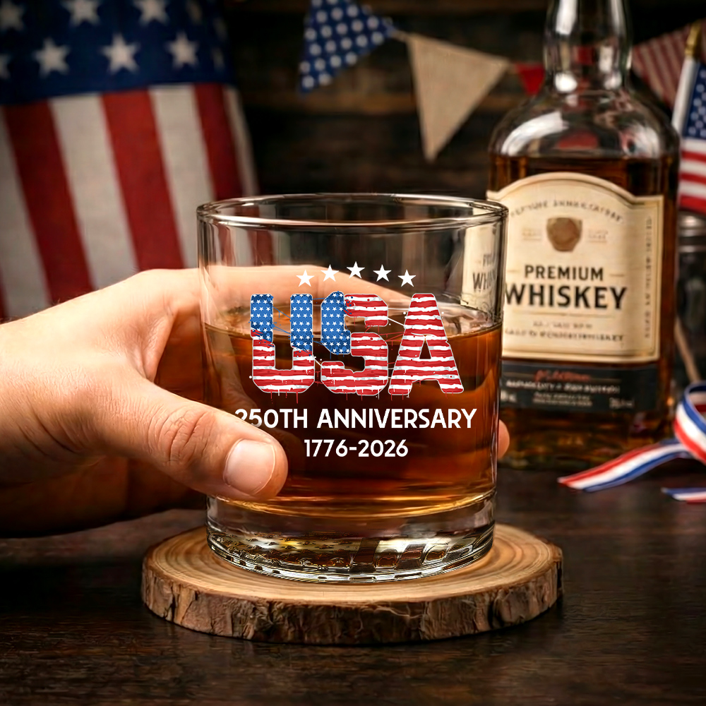 250th Anniversary of America 1776 2026 USA Whiskey Glass with Gift Box