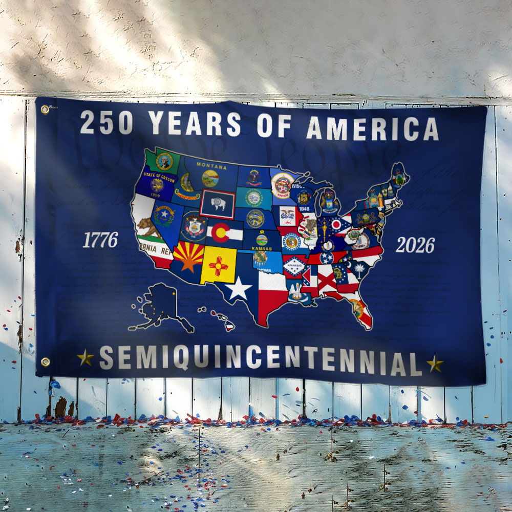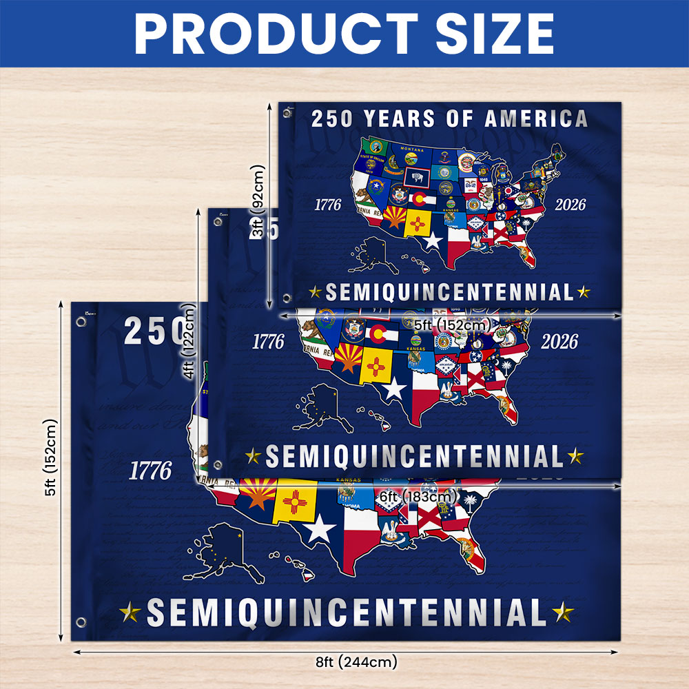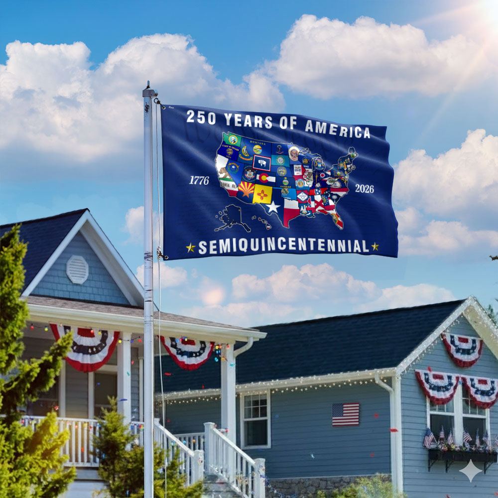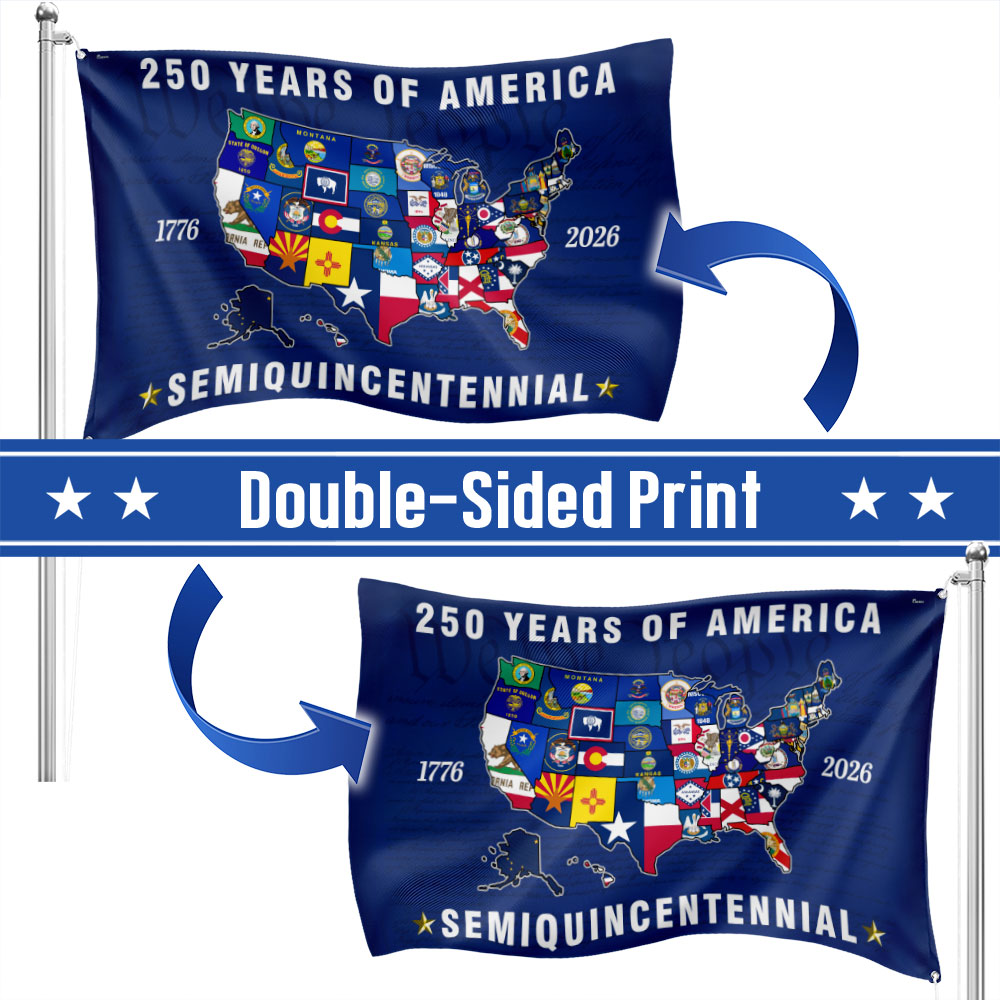 250th Anniversary Semiquincentennial 50 States of America Grommet Flag