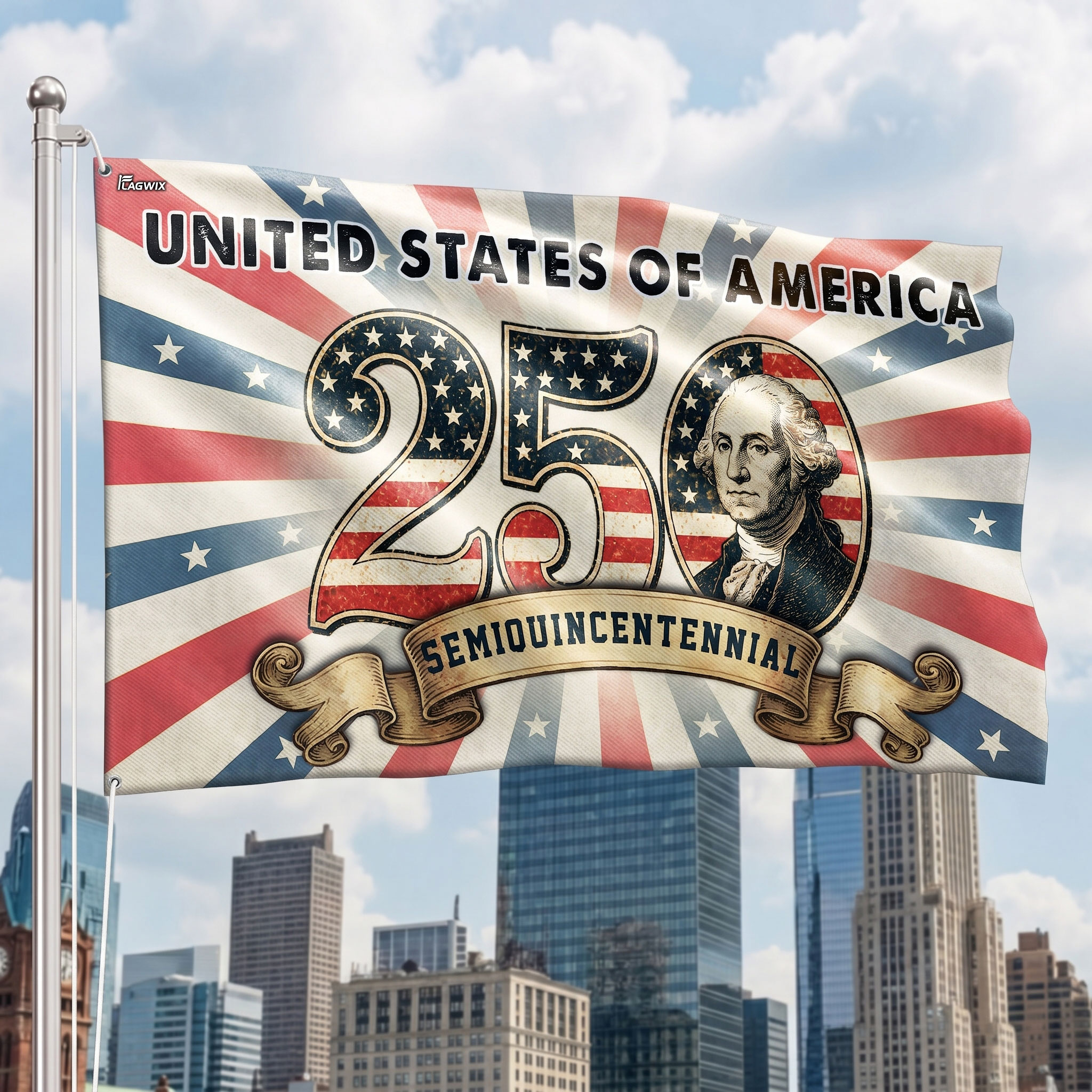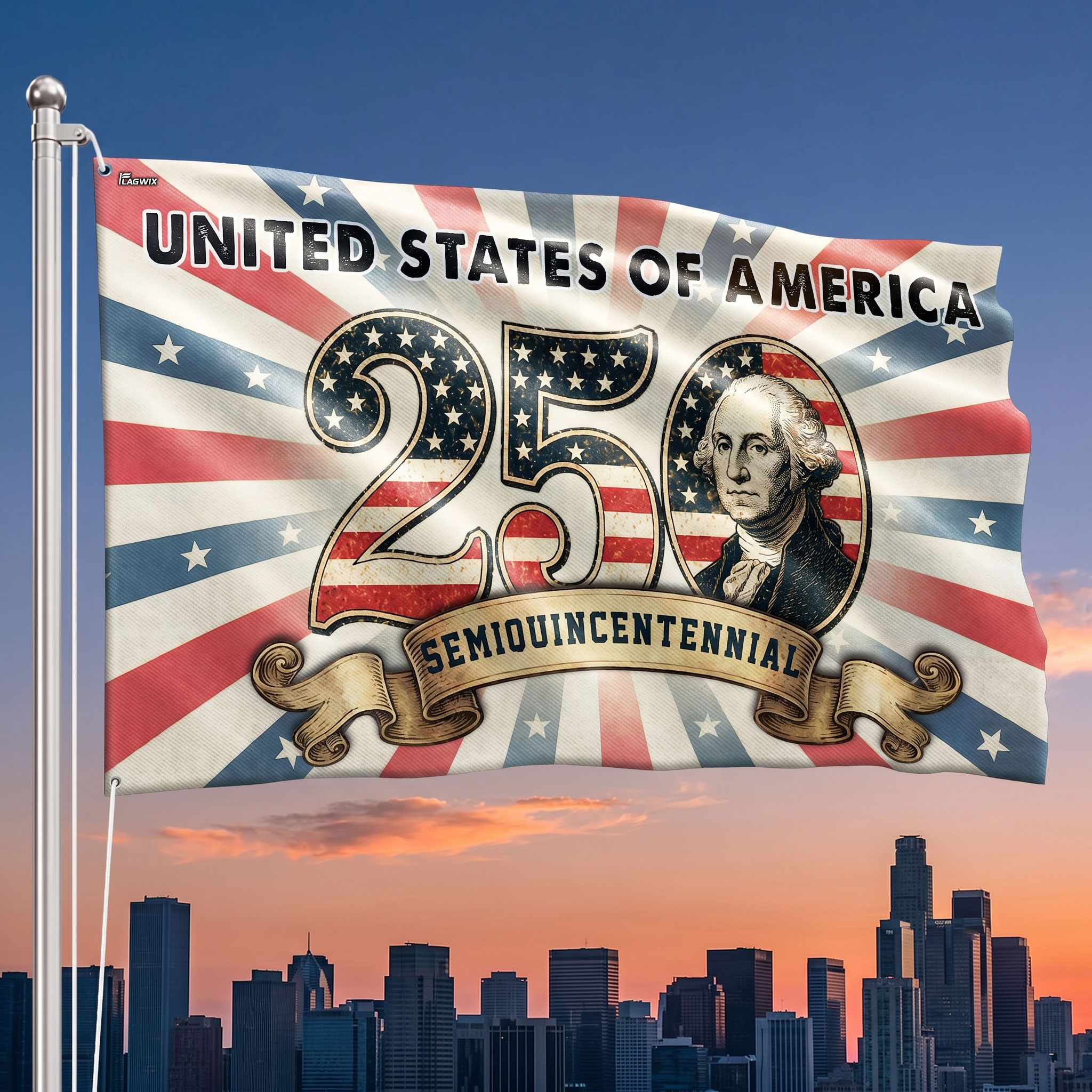 250th Anniversary United States of America Washington Vintage Grommet Flag