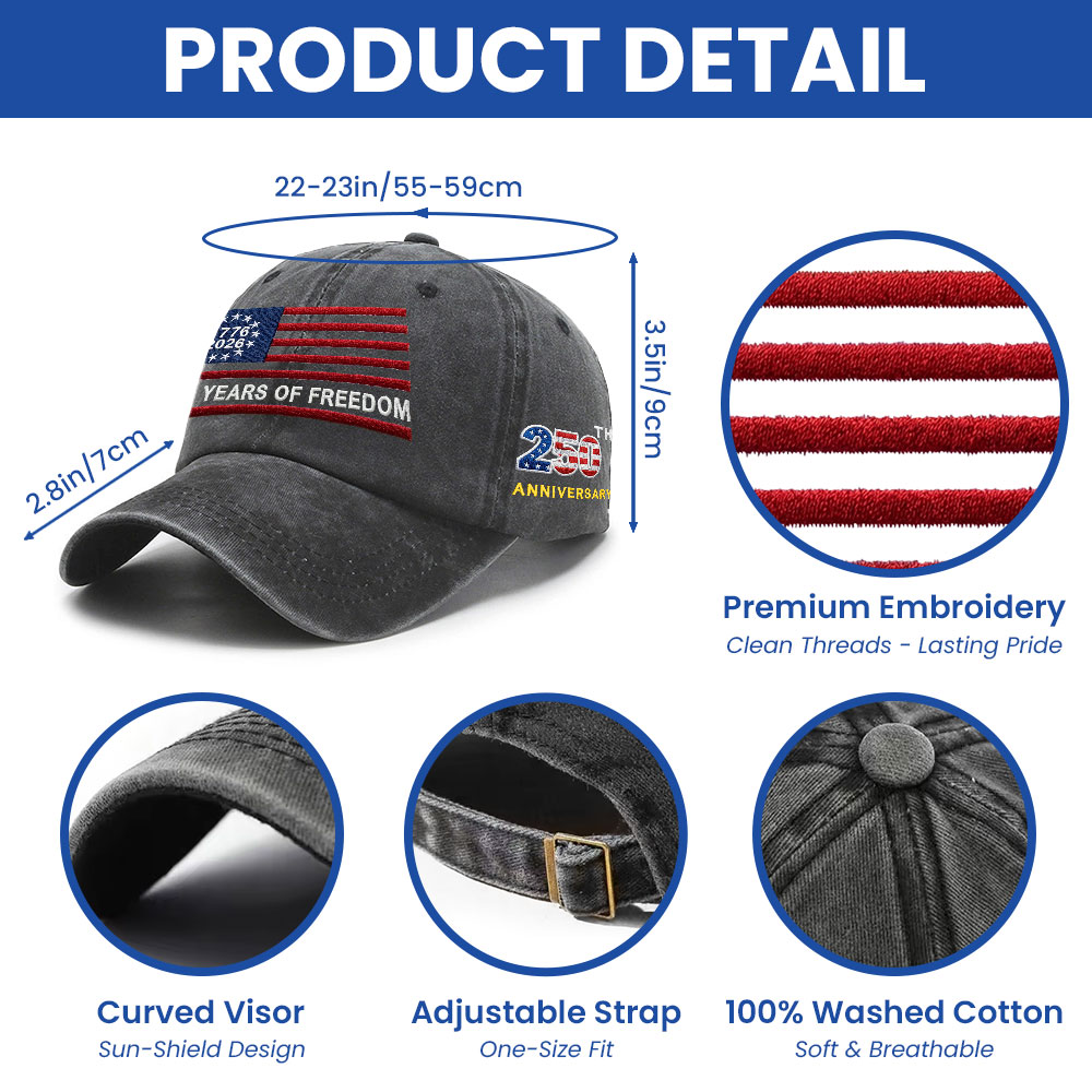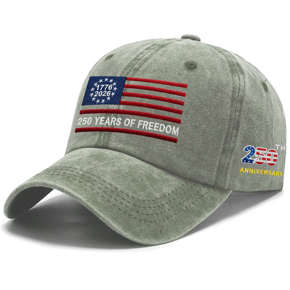 250th Anniversary Washed Cap with Embroidered Betsy Ross American Flag