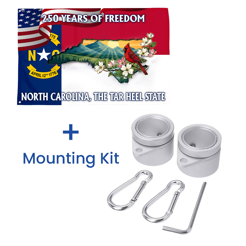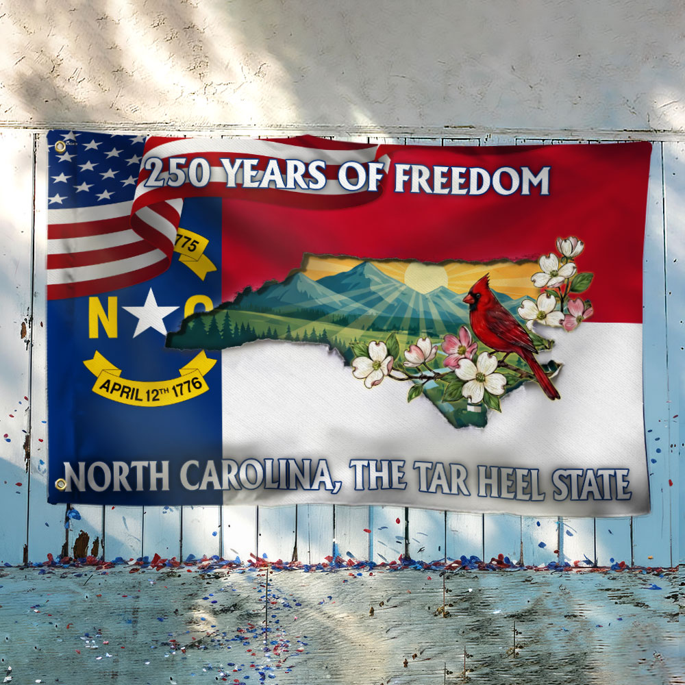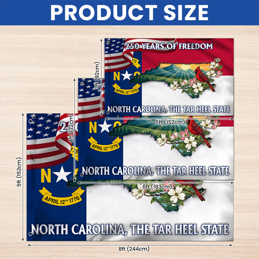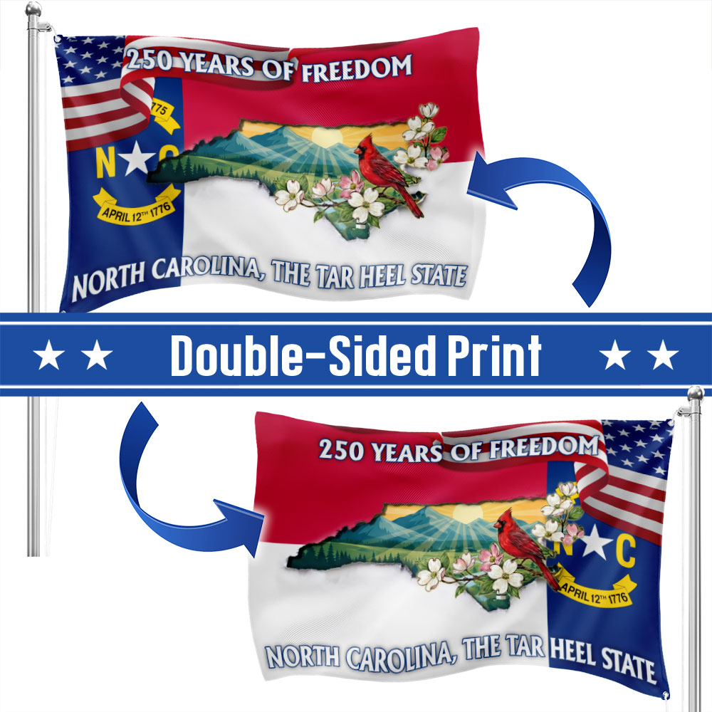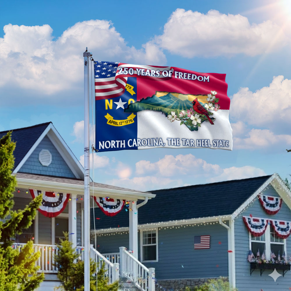 America 250 NC Patriotic Flag, North Carolina Tar Heel State Cardinal Dogwood Flower Decor
