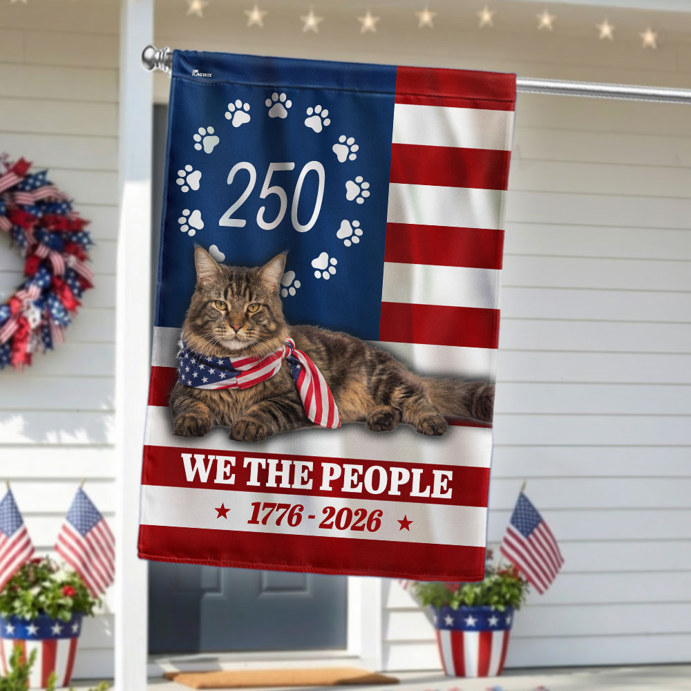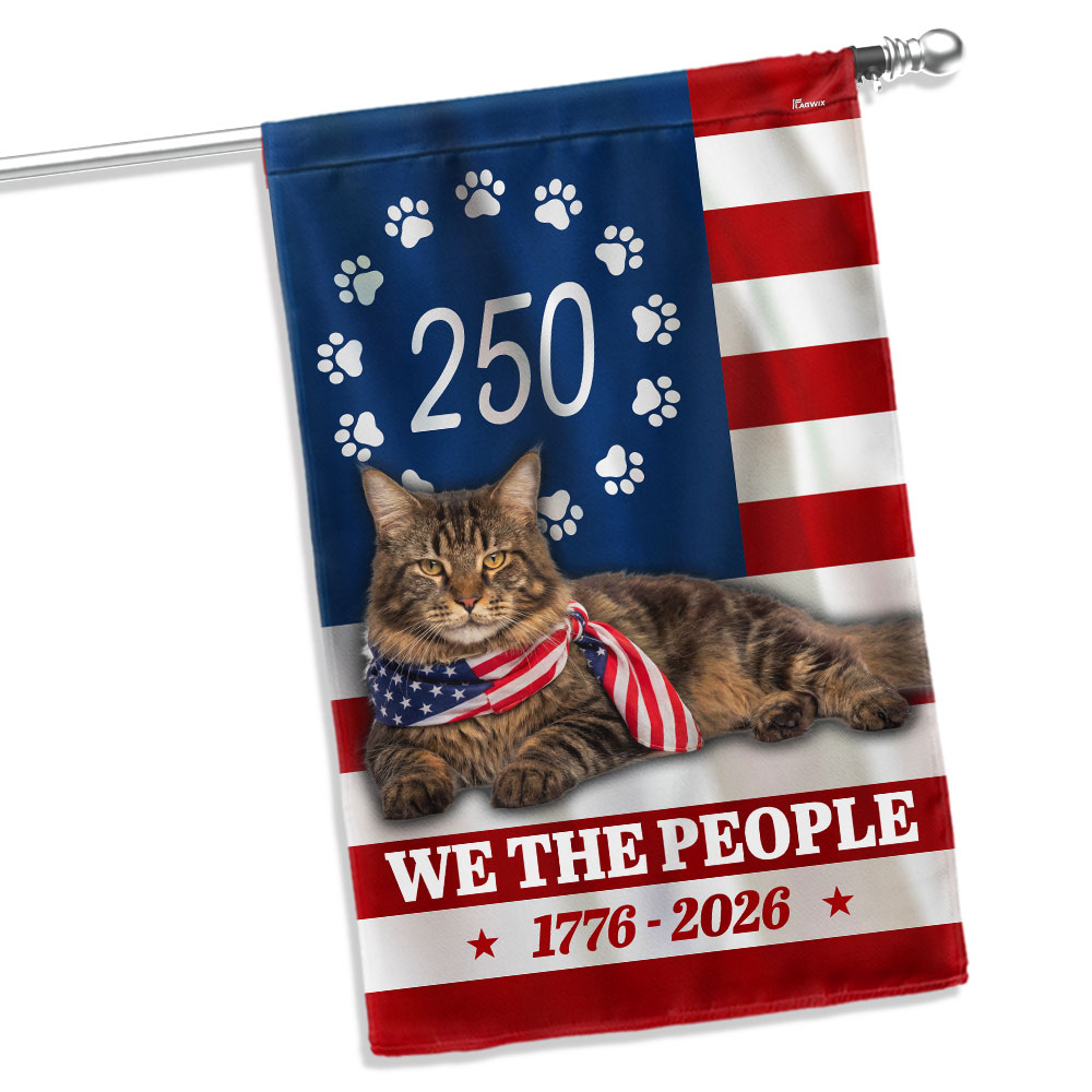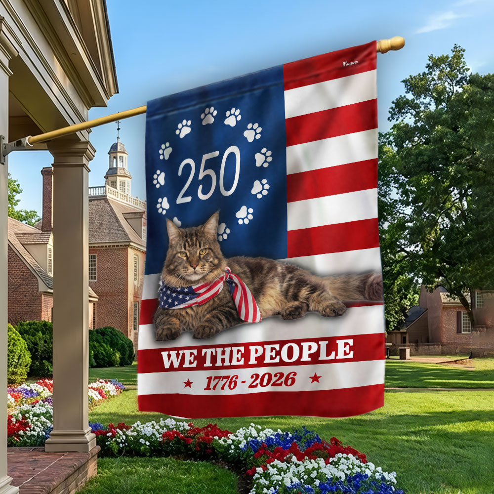 America 250 Years Maine Coon Cat Flag, Patriotic Cat 1776 2026 Flag