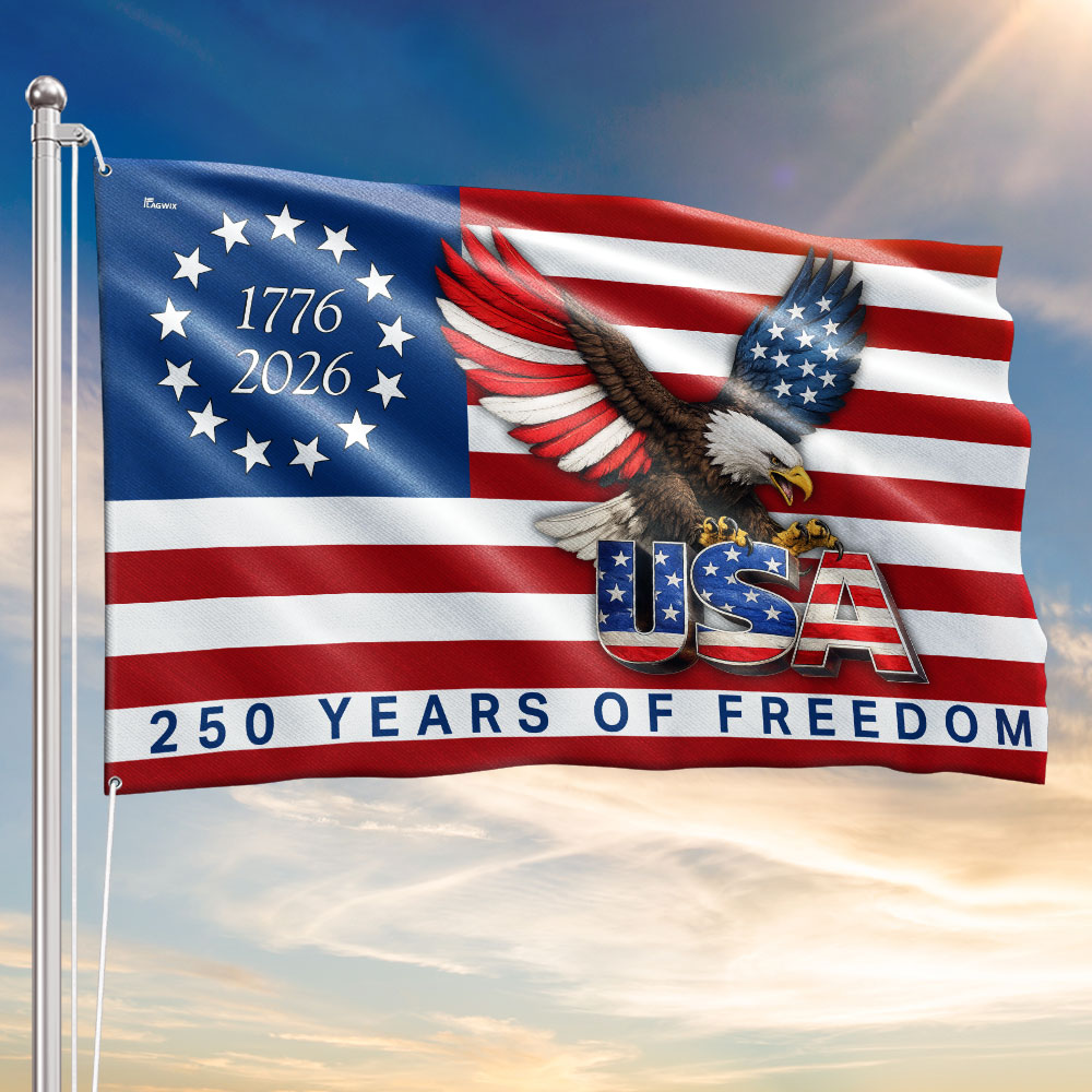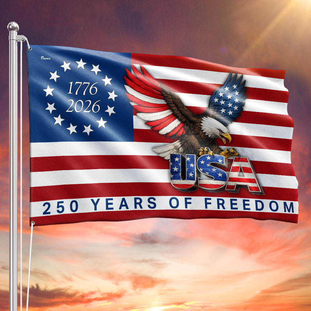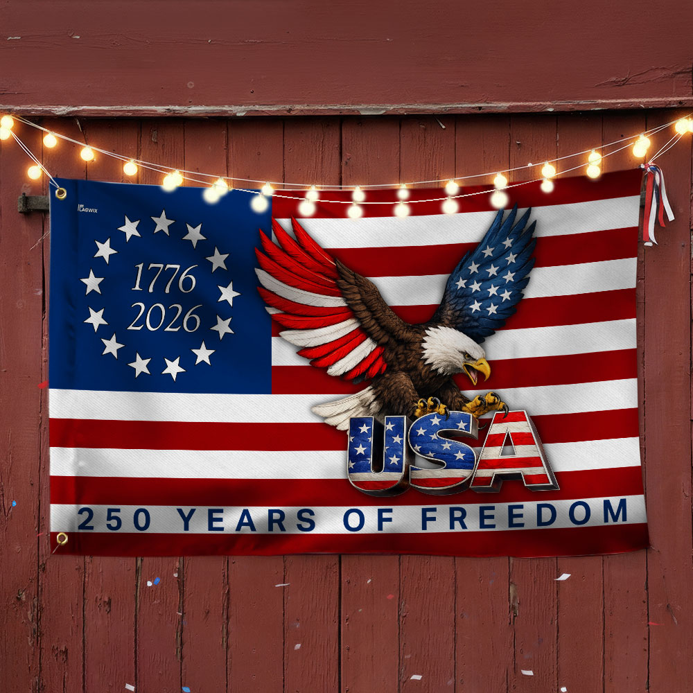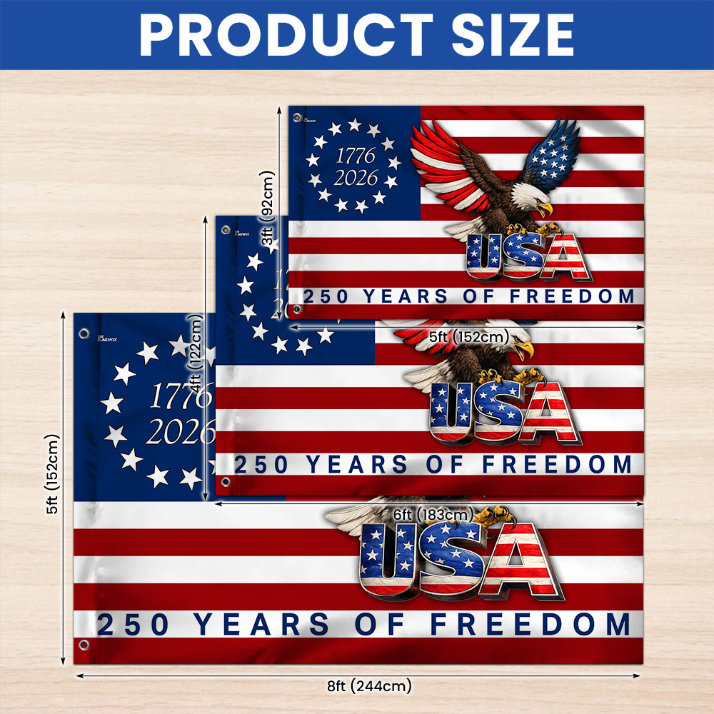 America 250 Years of Freedom Bald Eagle Flag, Betsy Ross 1776 2026 Flag