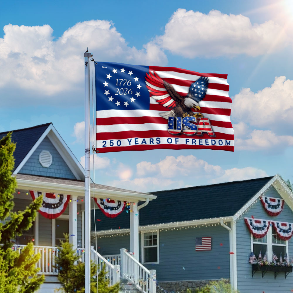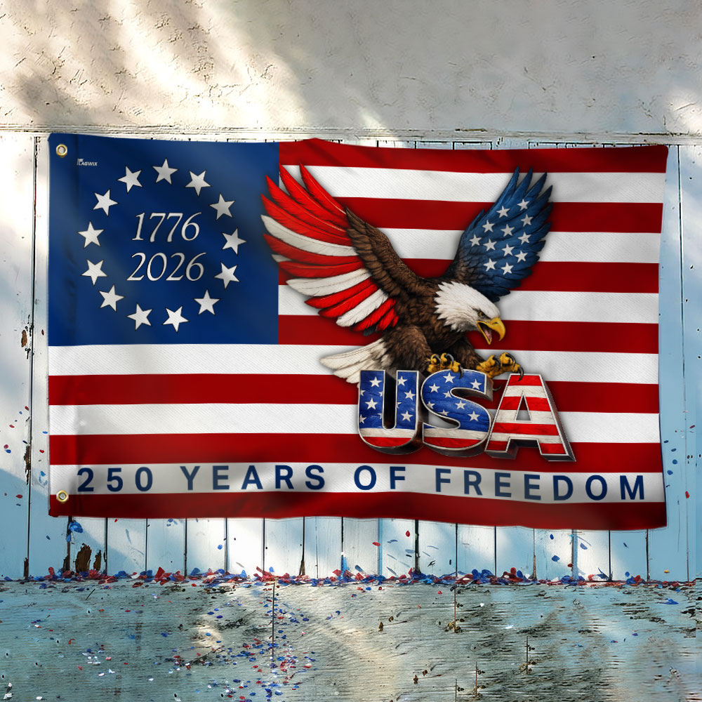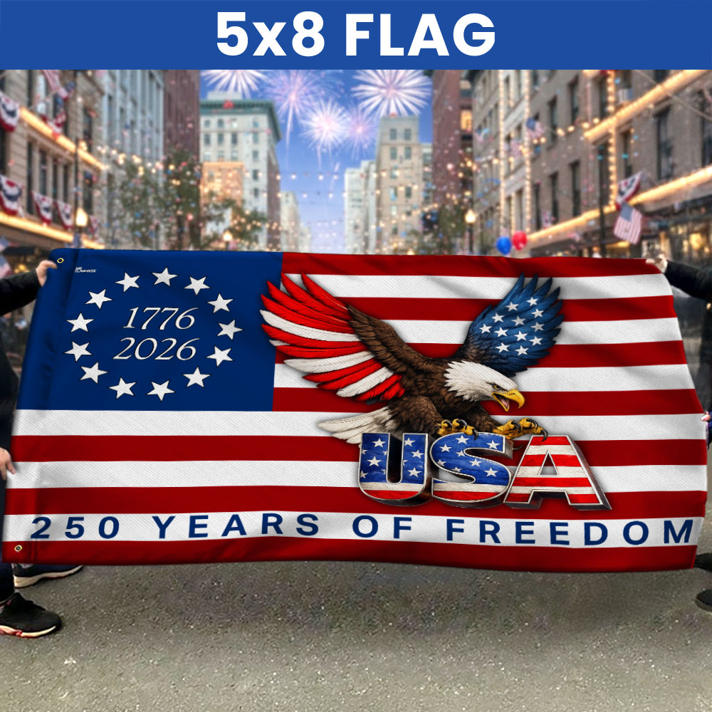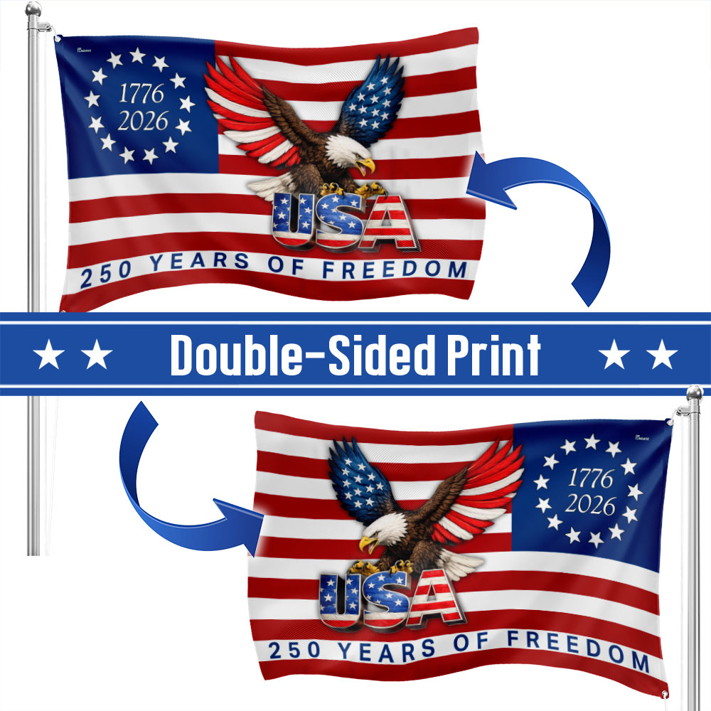 America 250 Years of Freedom Bald Eagle Flag, Betsy Ross 1776 2026 Flag