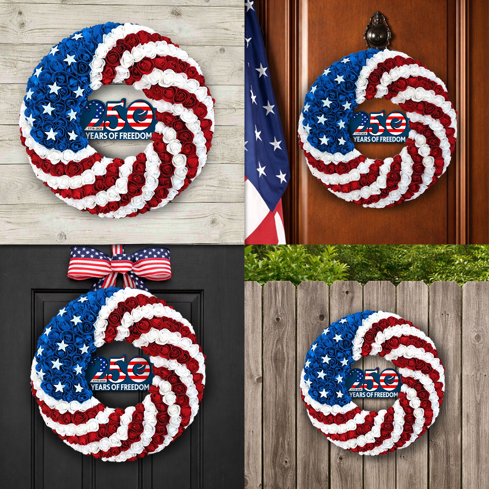 Showcase your American pride with this elegant 250th Anniversary American flag wreath, a timeless addition to your patriotic decorations.