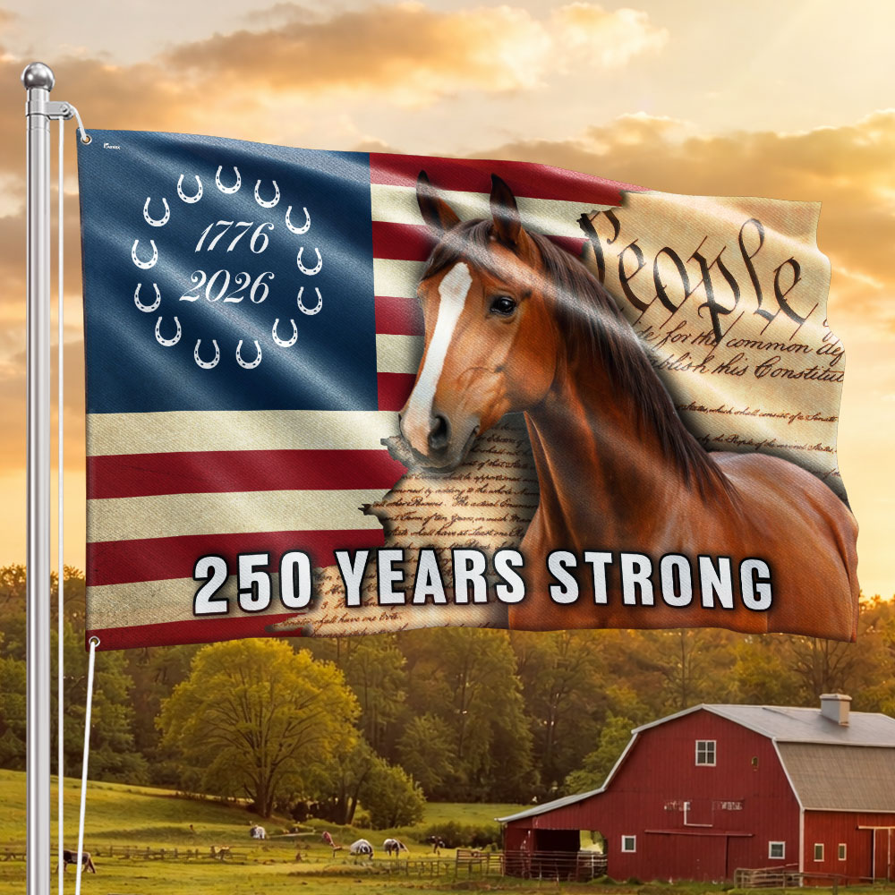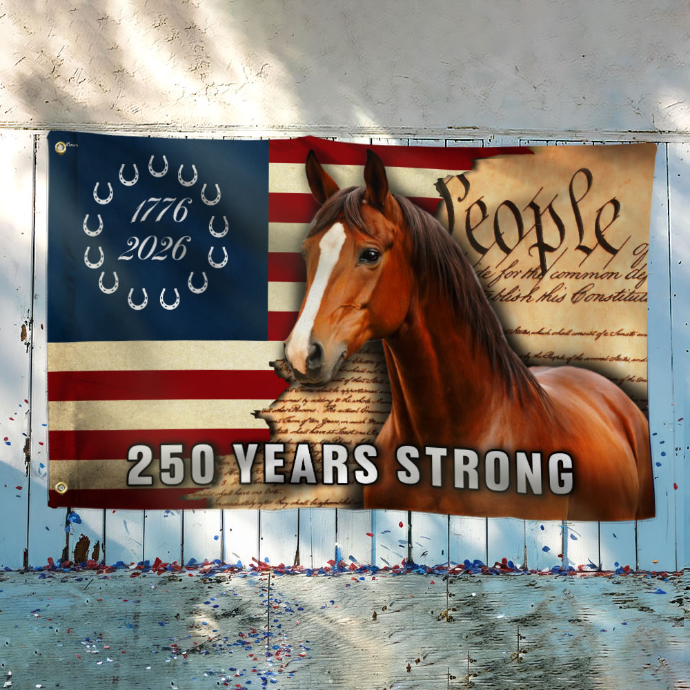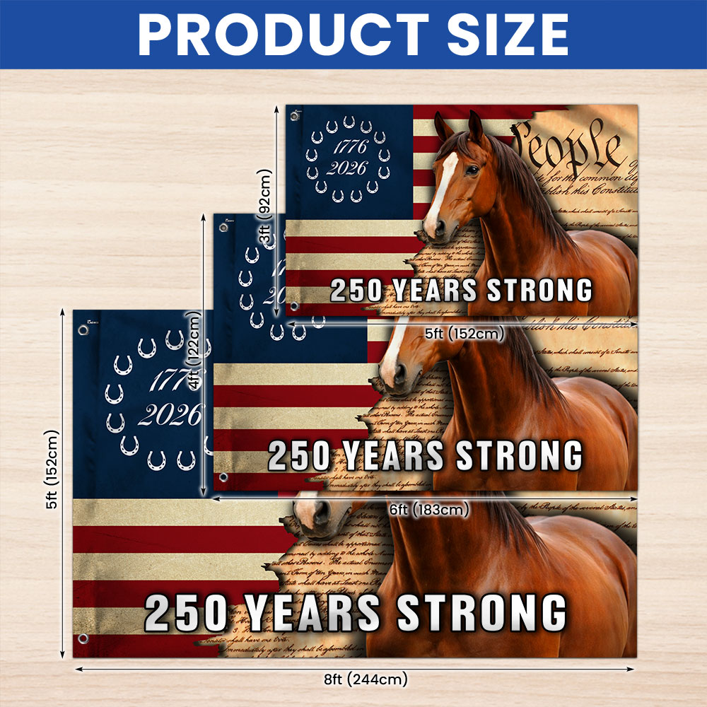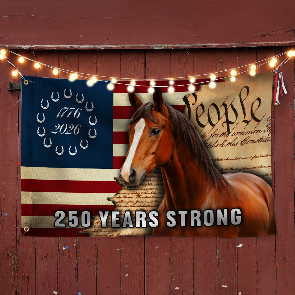 America 250 Years Strong Horse Flag, Patriotic Horse Ranch 1776 2026 Flag