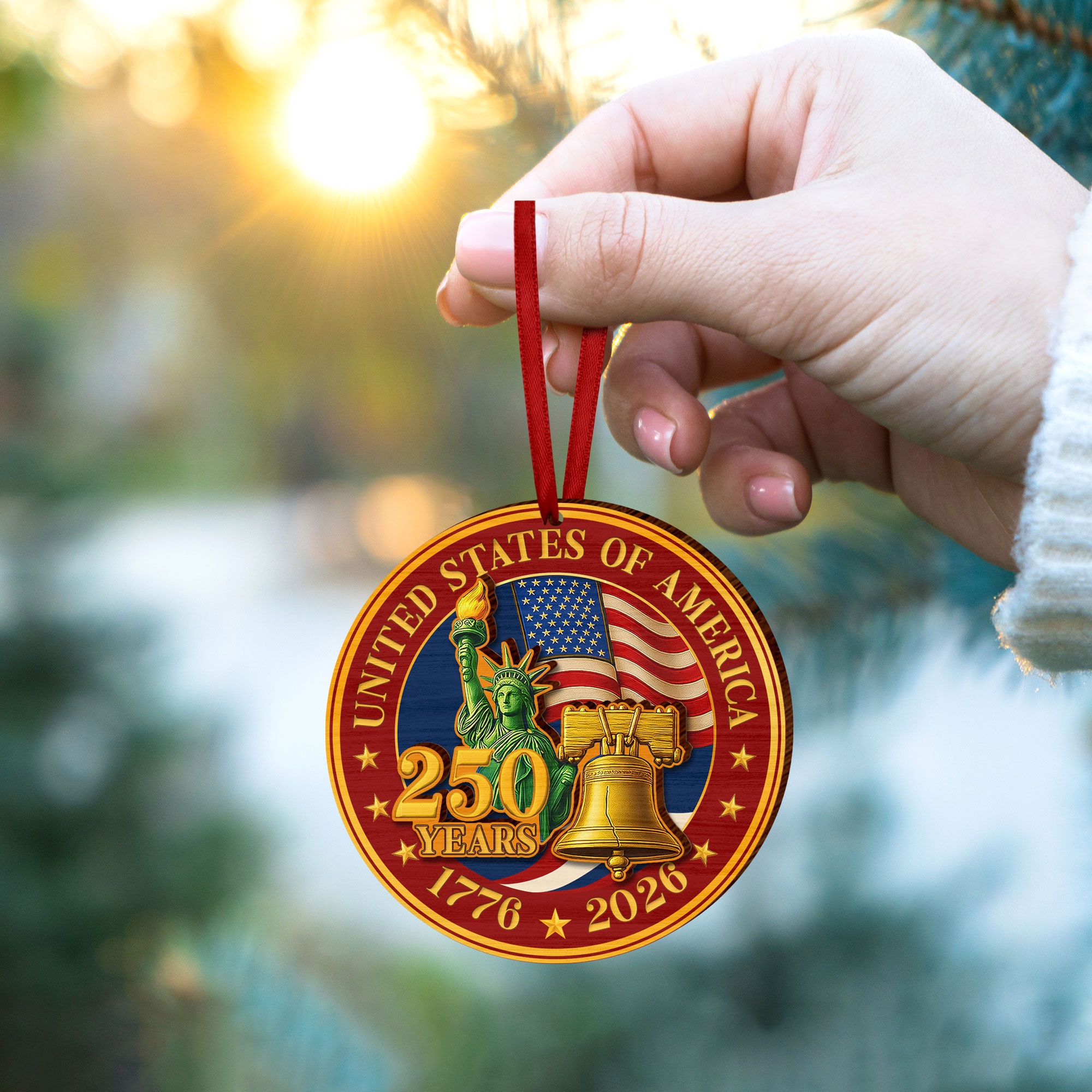 America 250 Years Wooden Ornament, 1776-2026 Liberty Bell Patriotic Decor