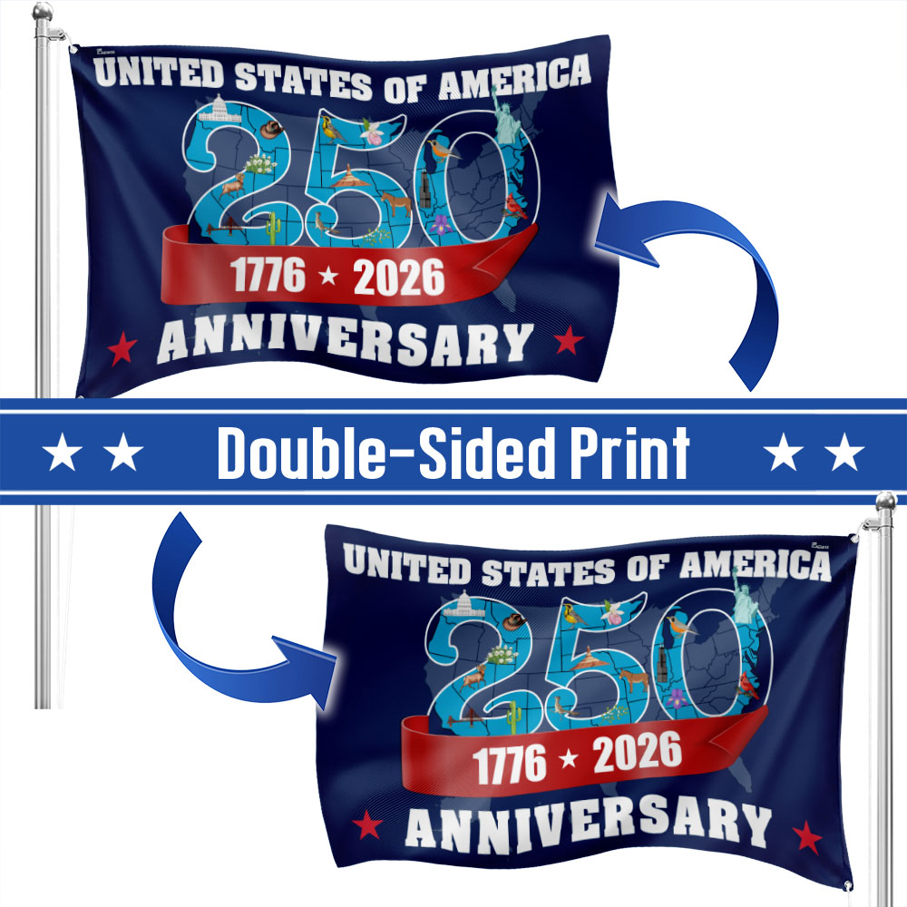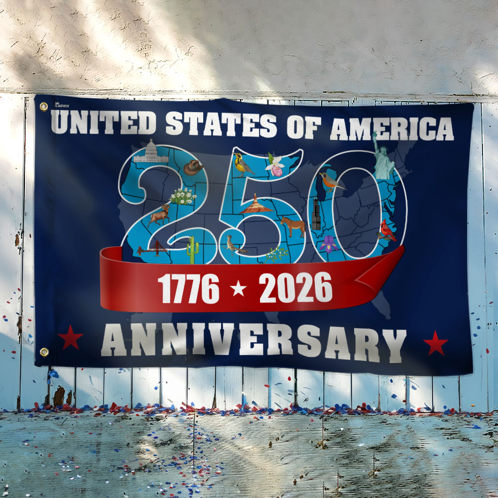 America 250th Anniversary Flag, Patriotic 1776 2026 USA Map Grommet Flag