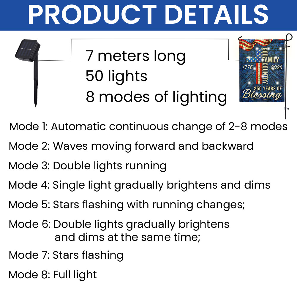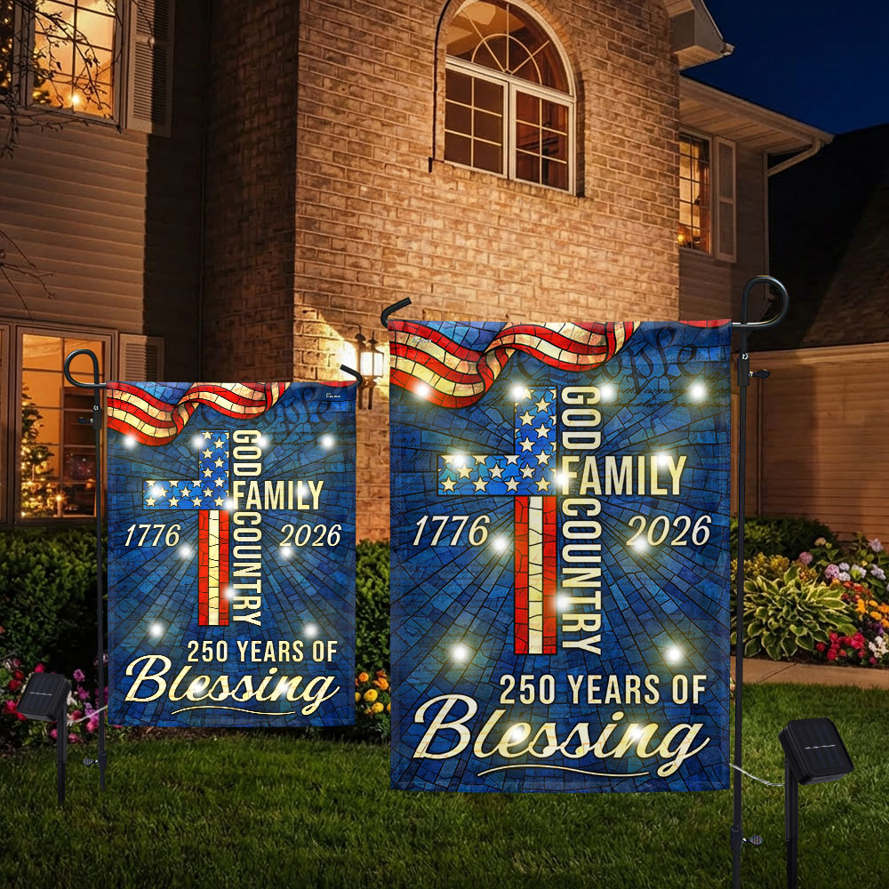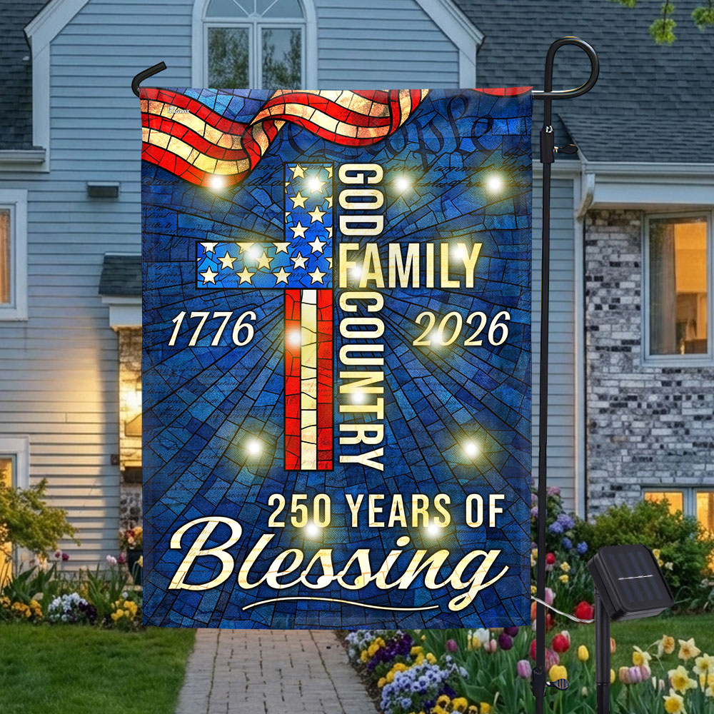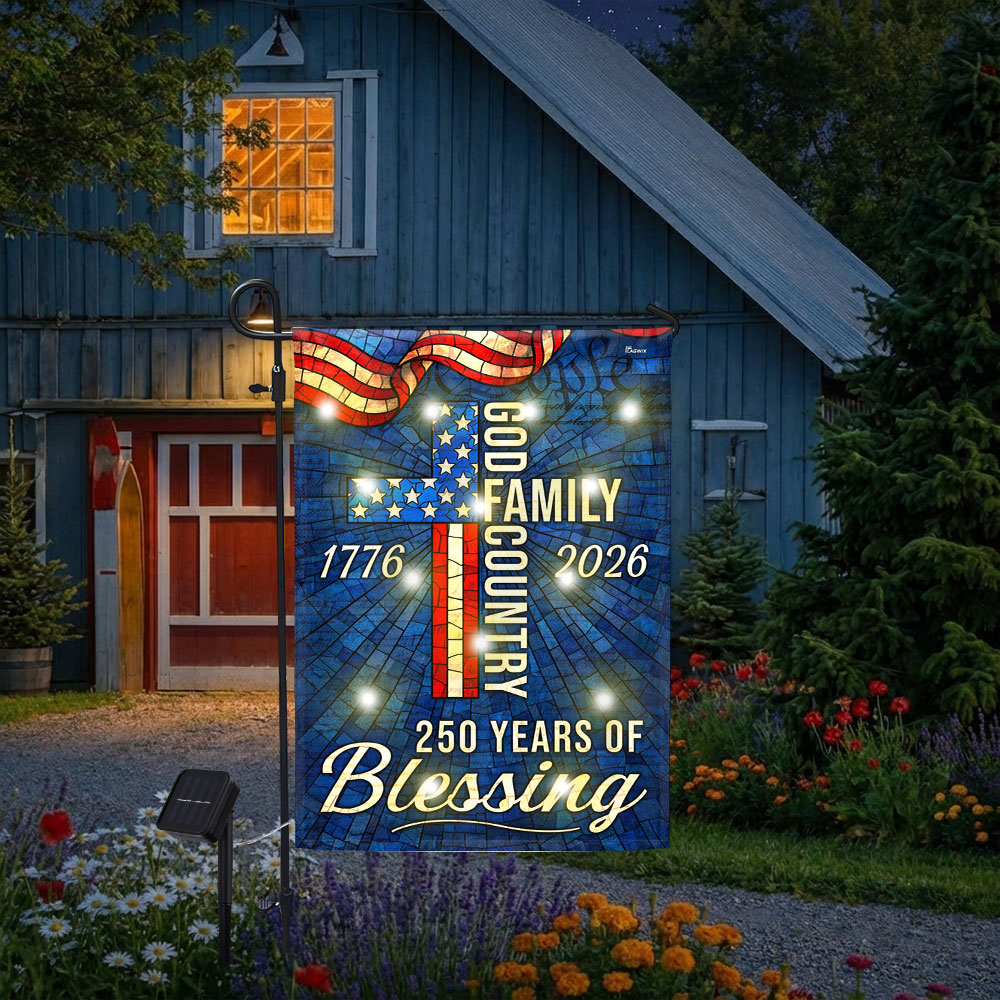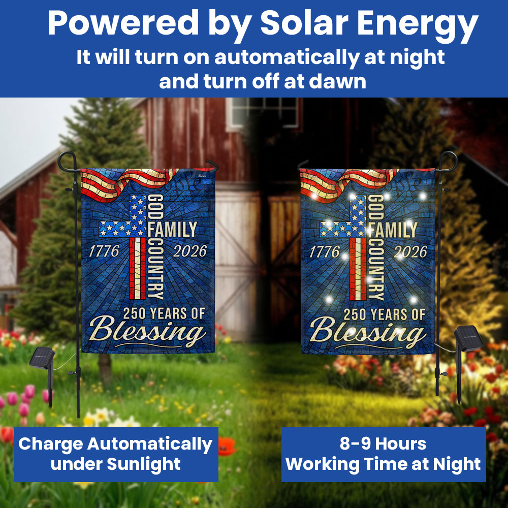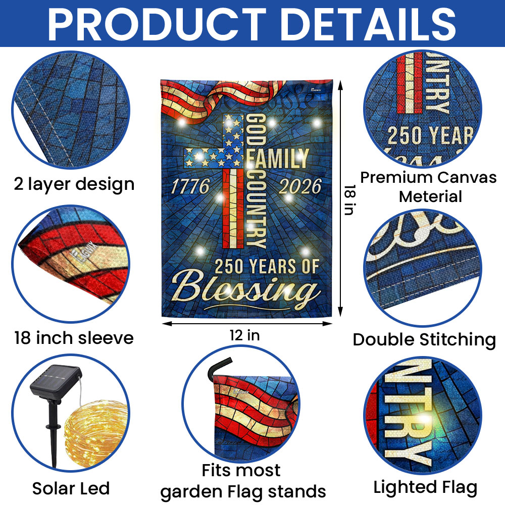 American 1776 2026 Patriotic Garden Flag, 250 Years of Blessing God Family Country Solar LED Flag