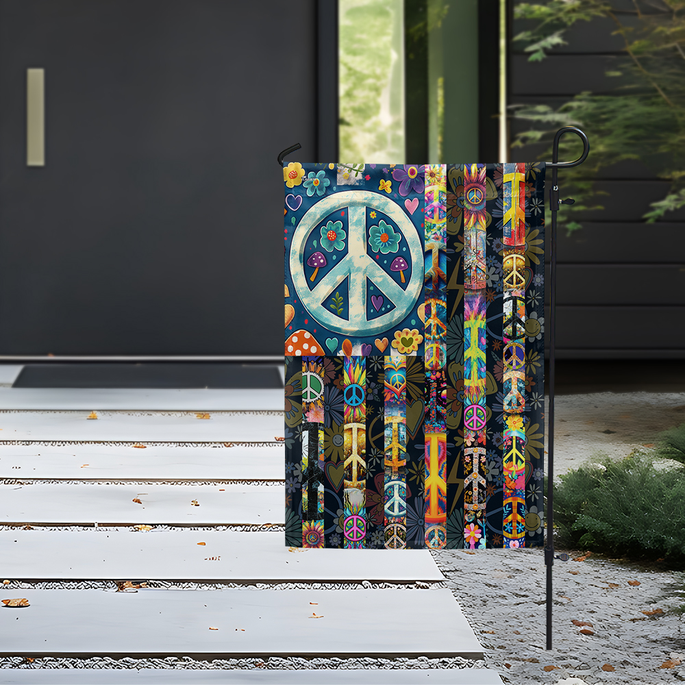 American Flag – Peace Sign Hippie Flag with Psychedelic Floral Design for Indoor Outdoor Decor