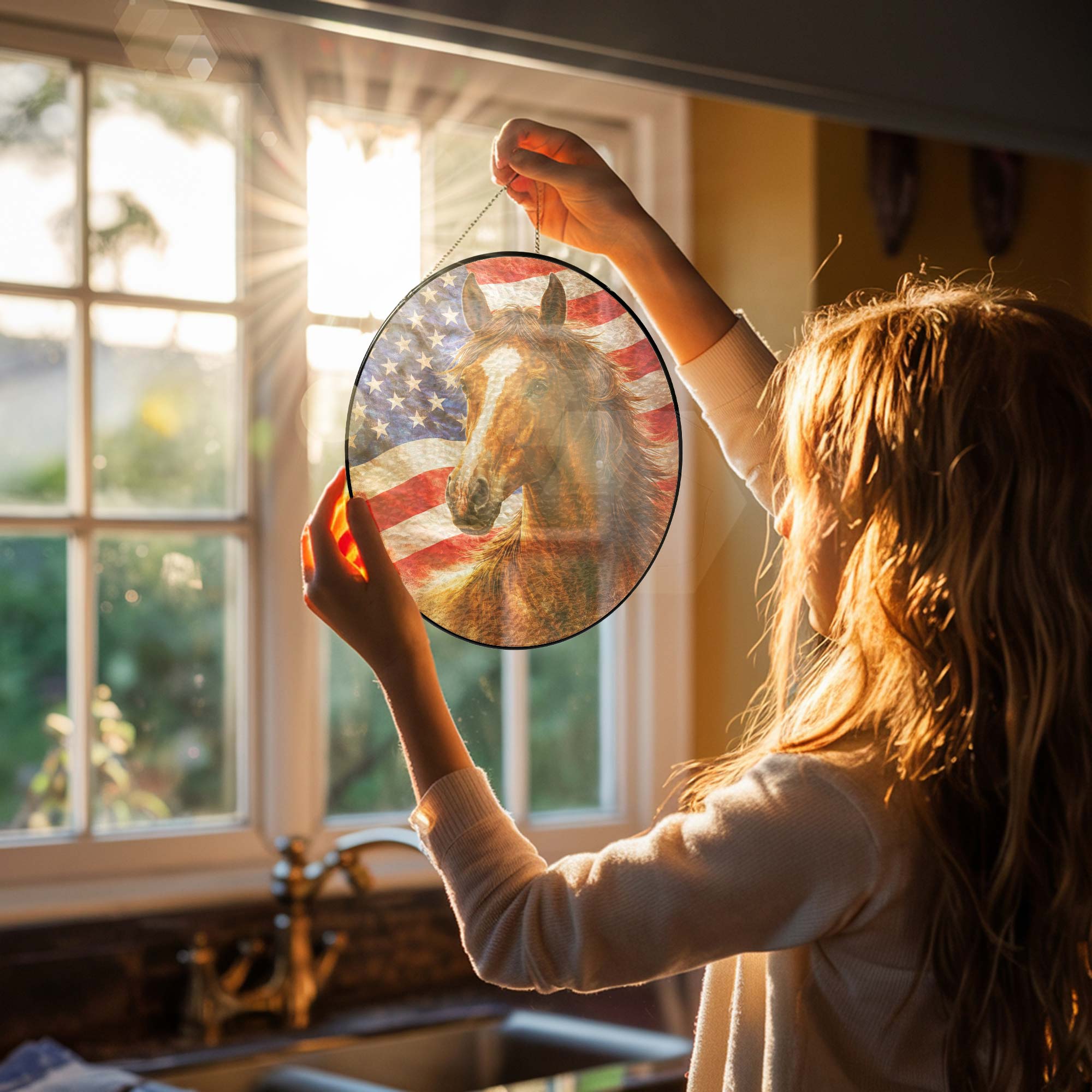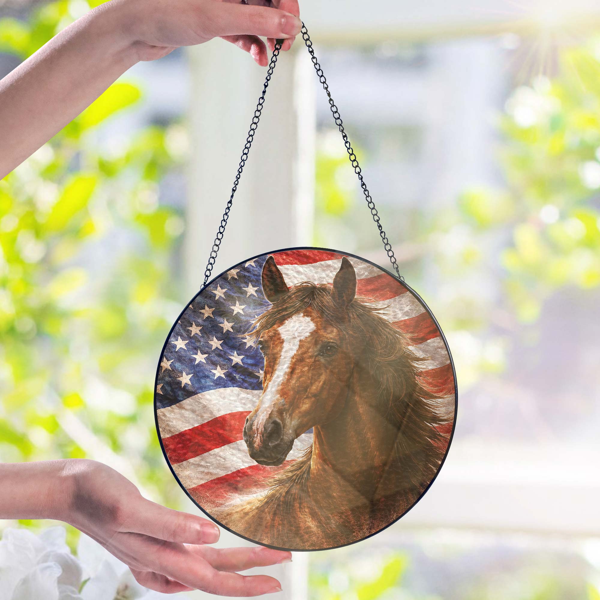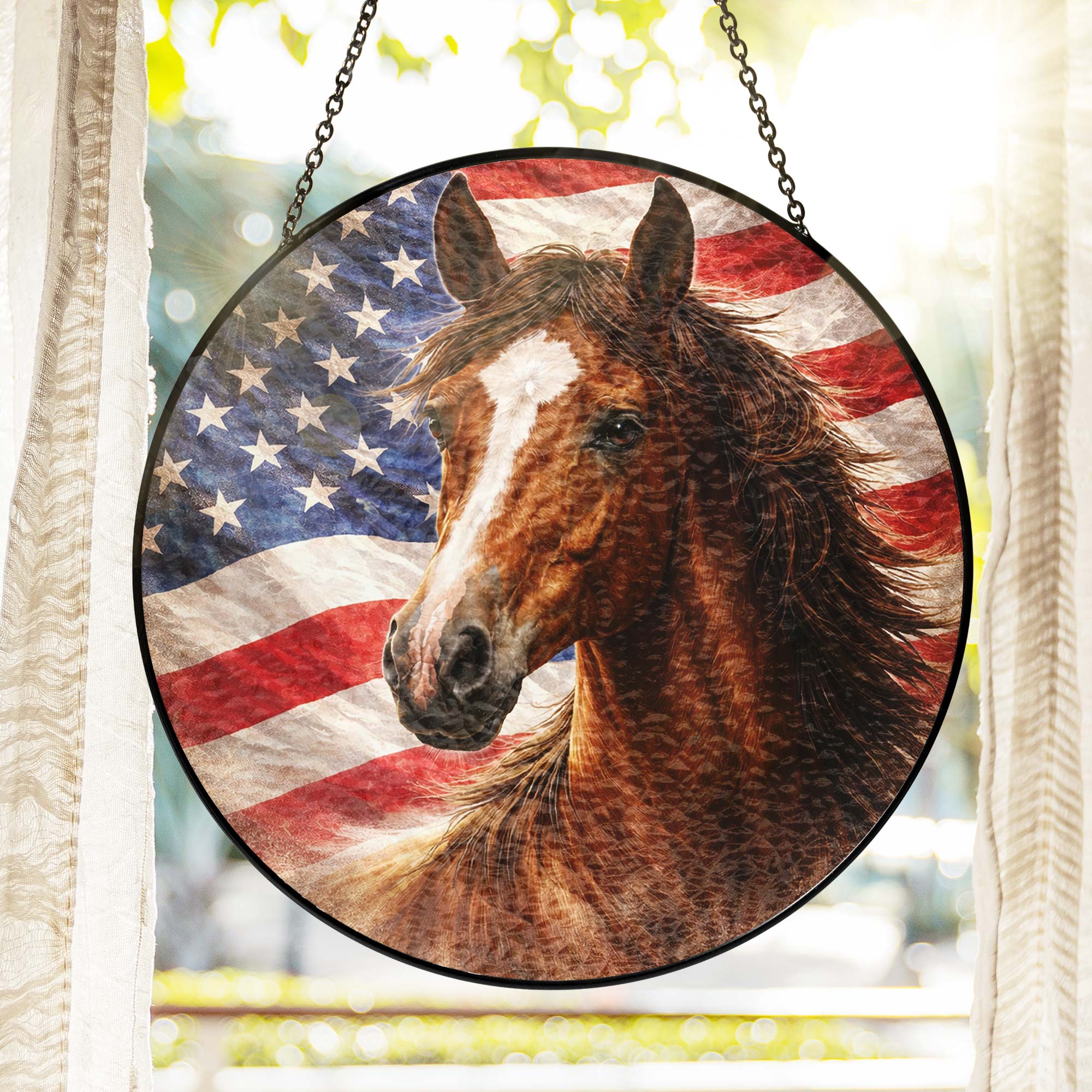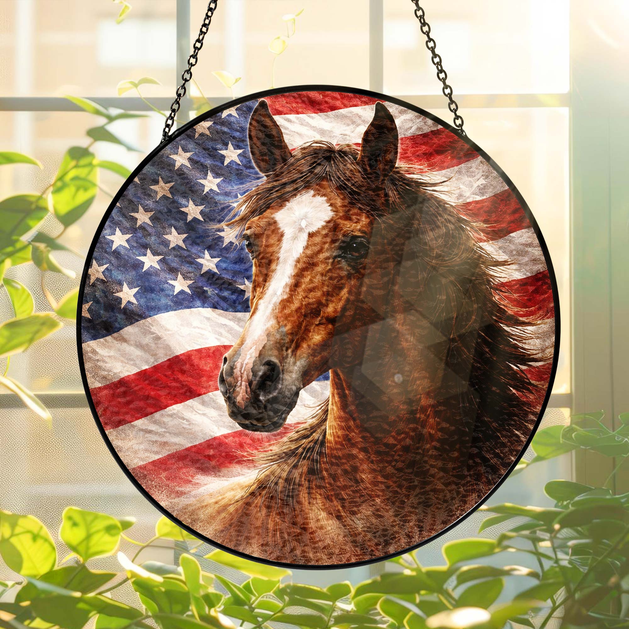 American Horse Stained Glass Suncatcher Hanging for Patriotic Decoration