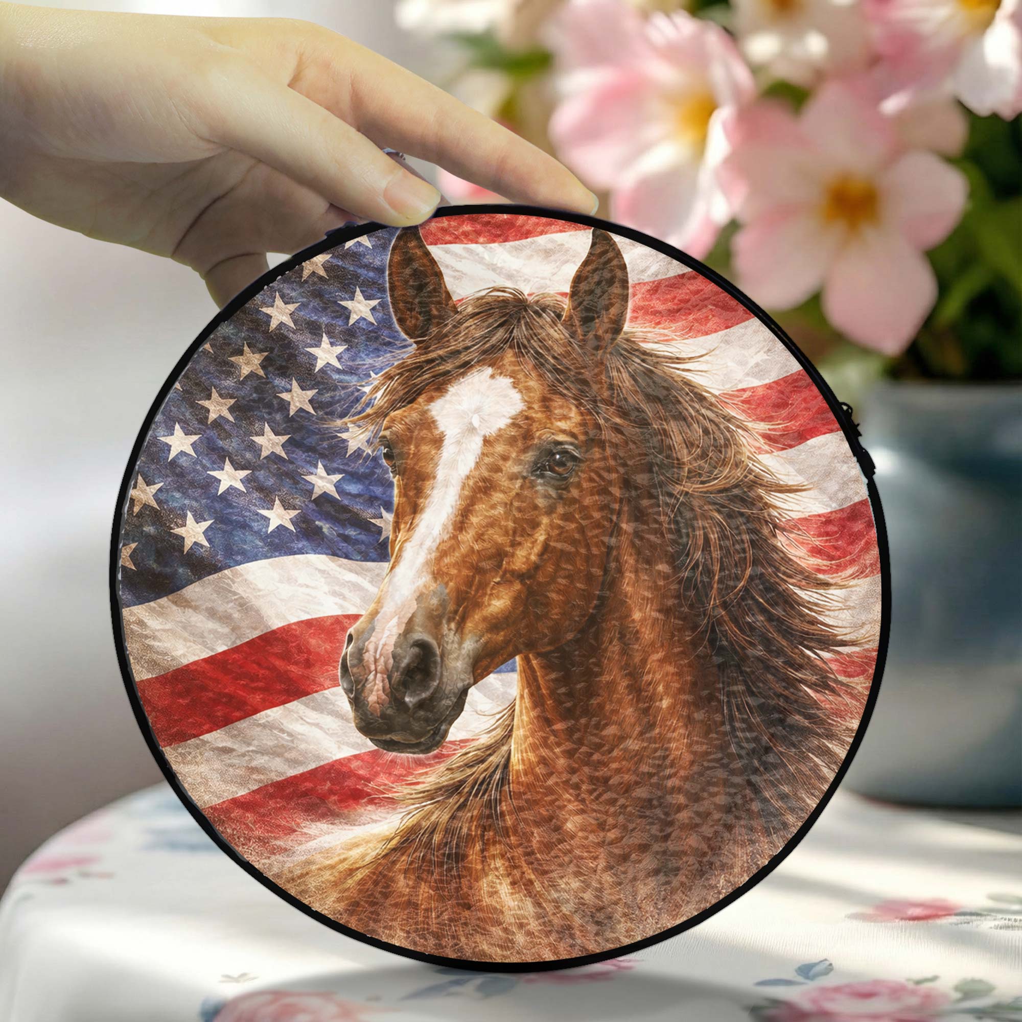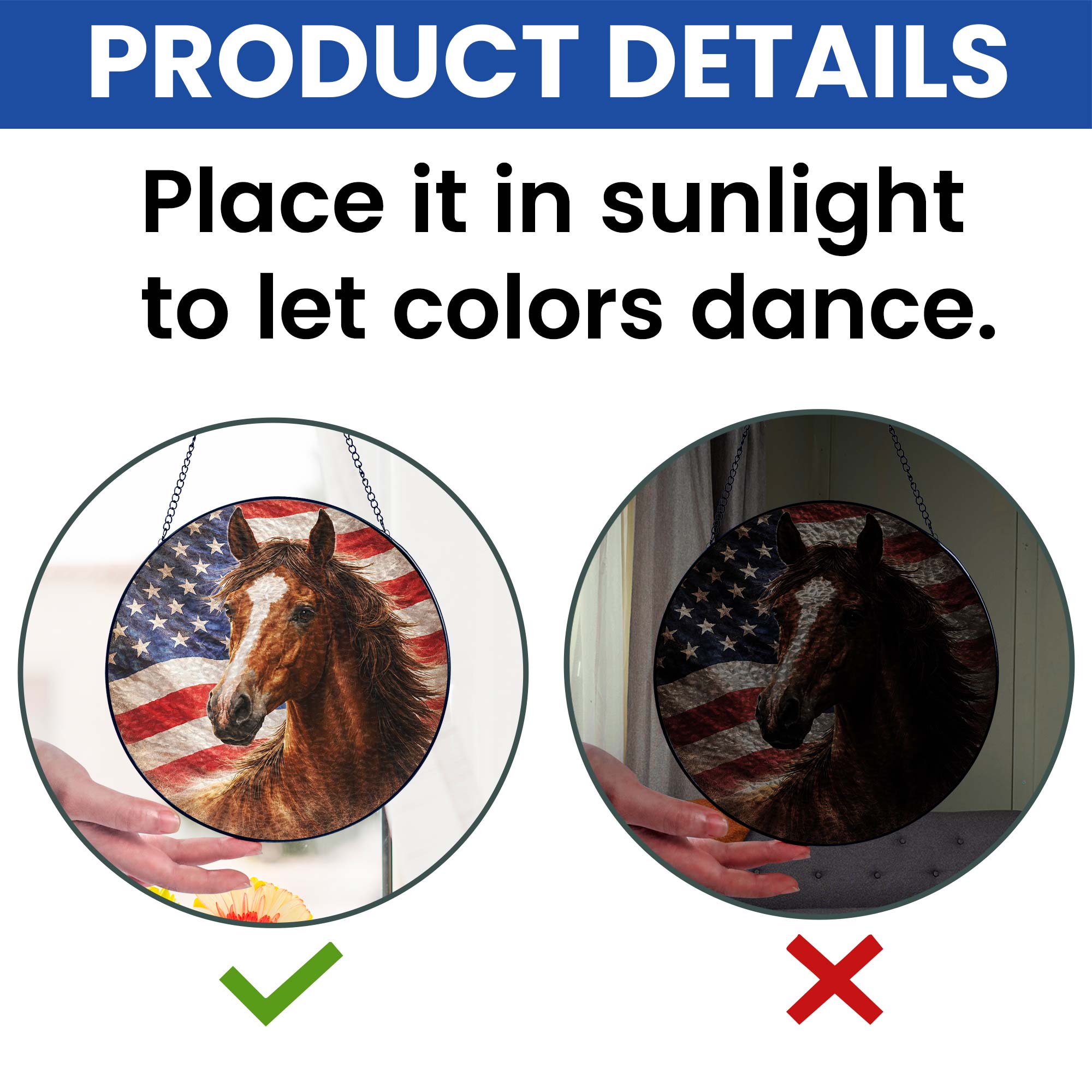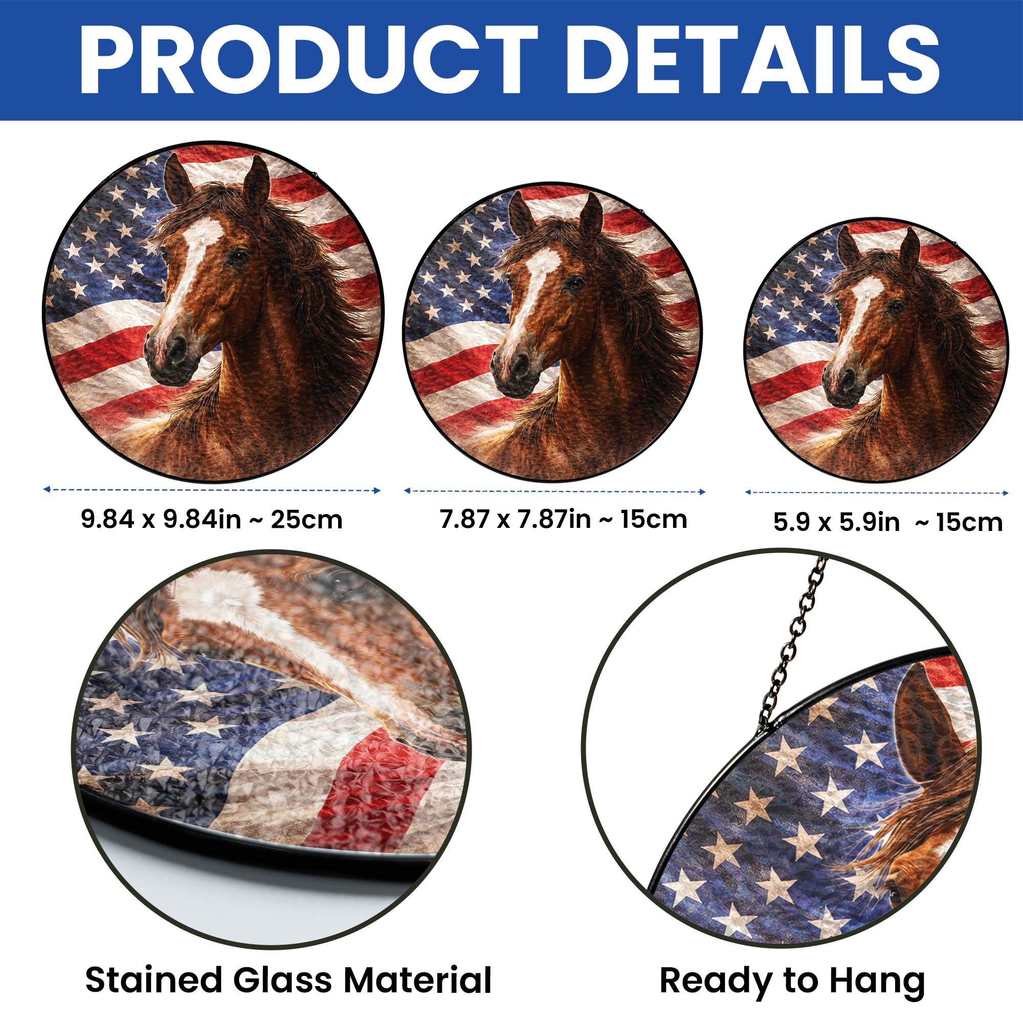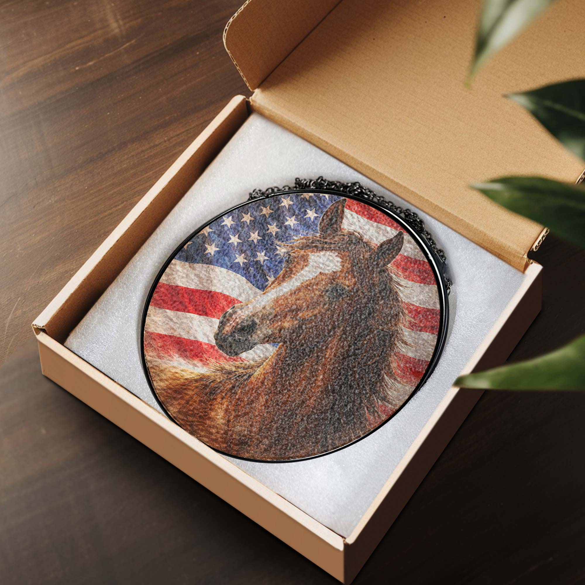 American Horse Stained Glass Suncatcher Hanging for Patriotic Decoration