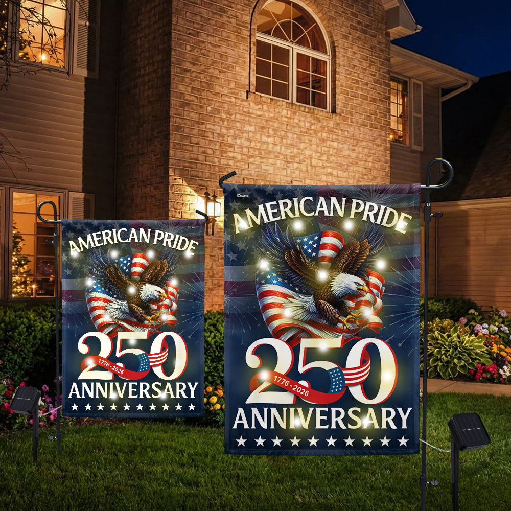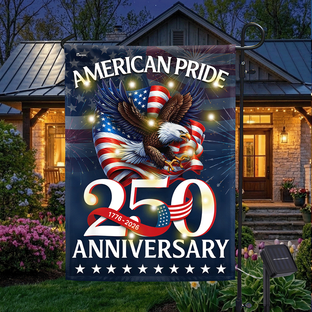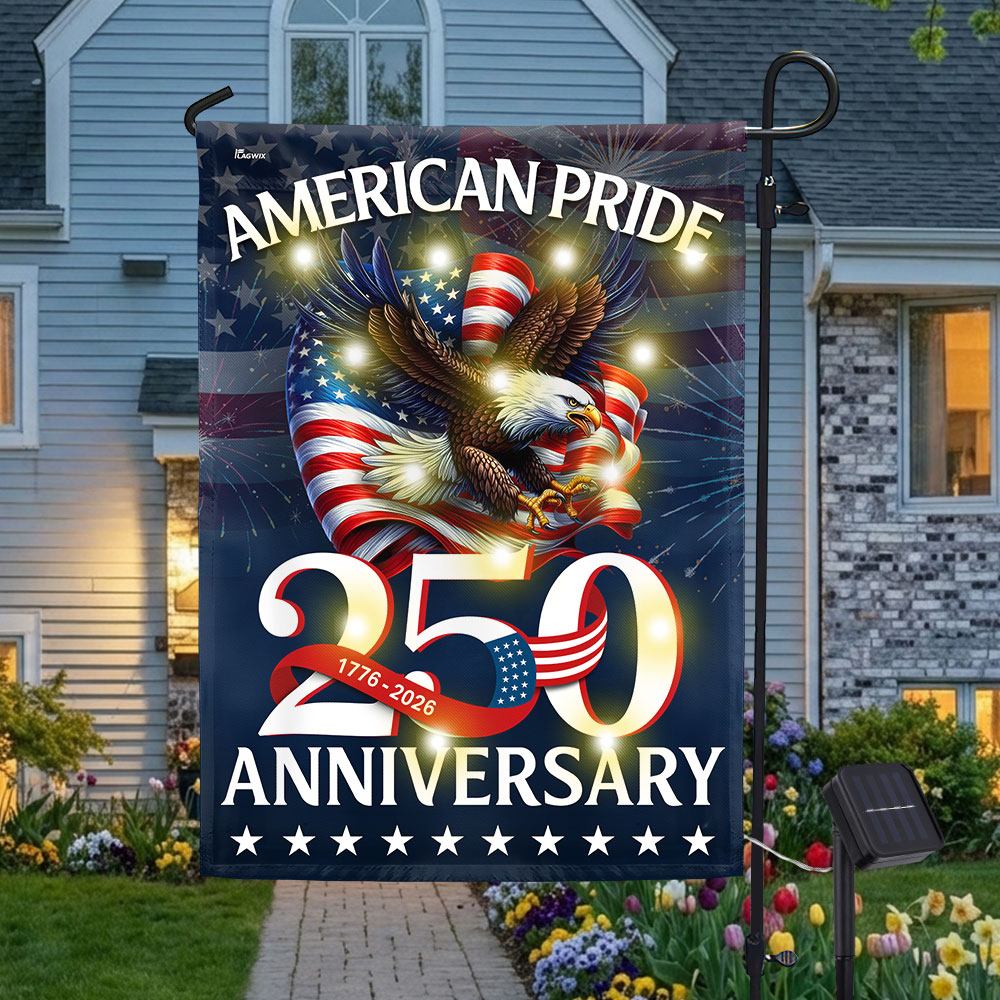American Pride Flag Decor, Patriotic 250th Anniversary Eagle 1776–2026 Solar LED Flag