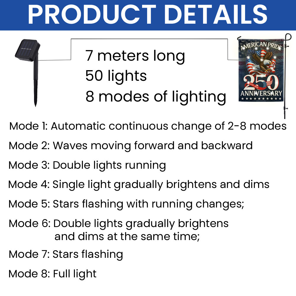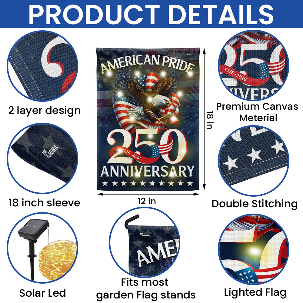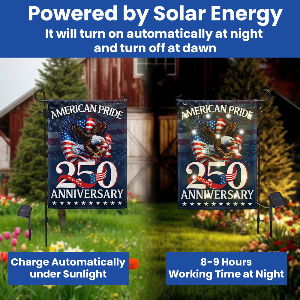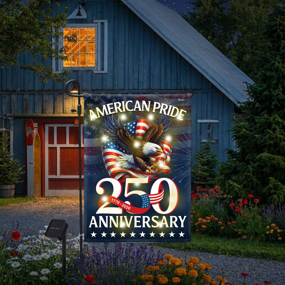 American Pride Flag Decor, Patriotic 250th Anniversary Eagle 1776–2026 Solar LED Flag