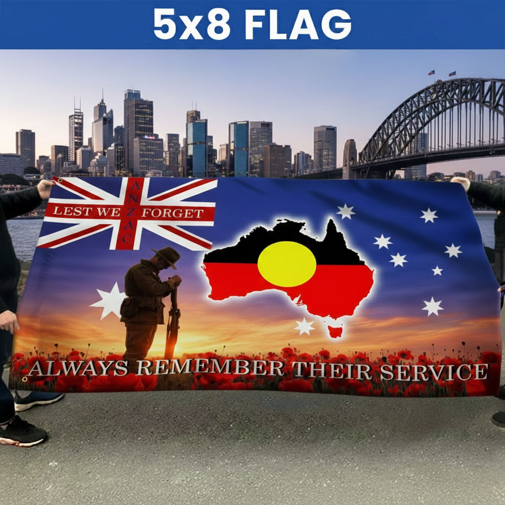 Anzac Day Australian Aboriginal Flag, Lest We Forget Rememberance Decor