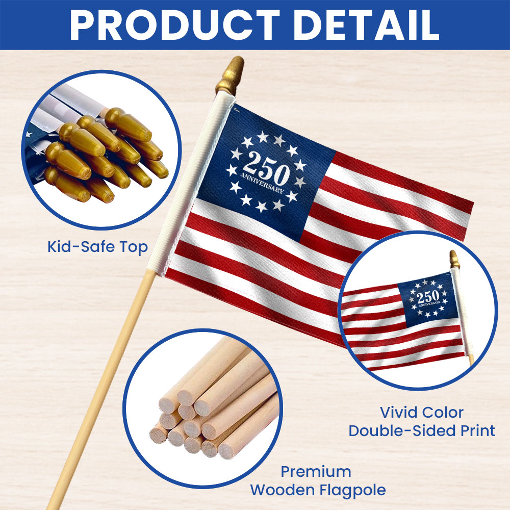 Betsy Ross 250 Flag, Patriotic 250th Anniversary Handheld American Flag