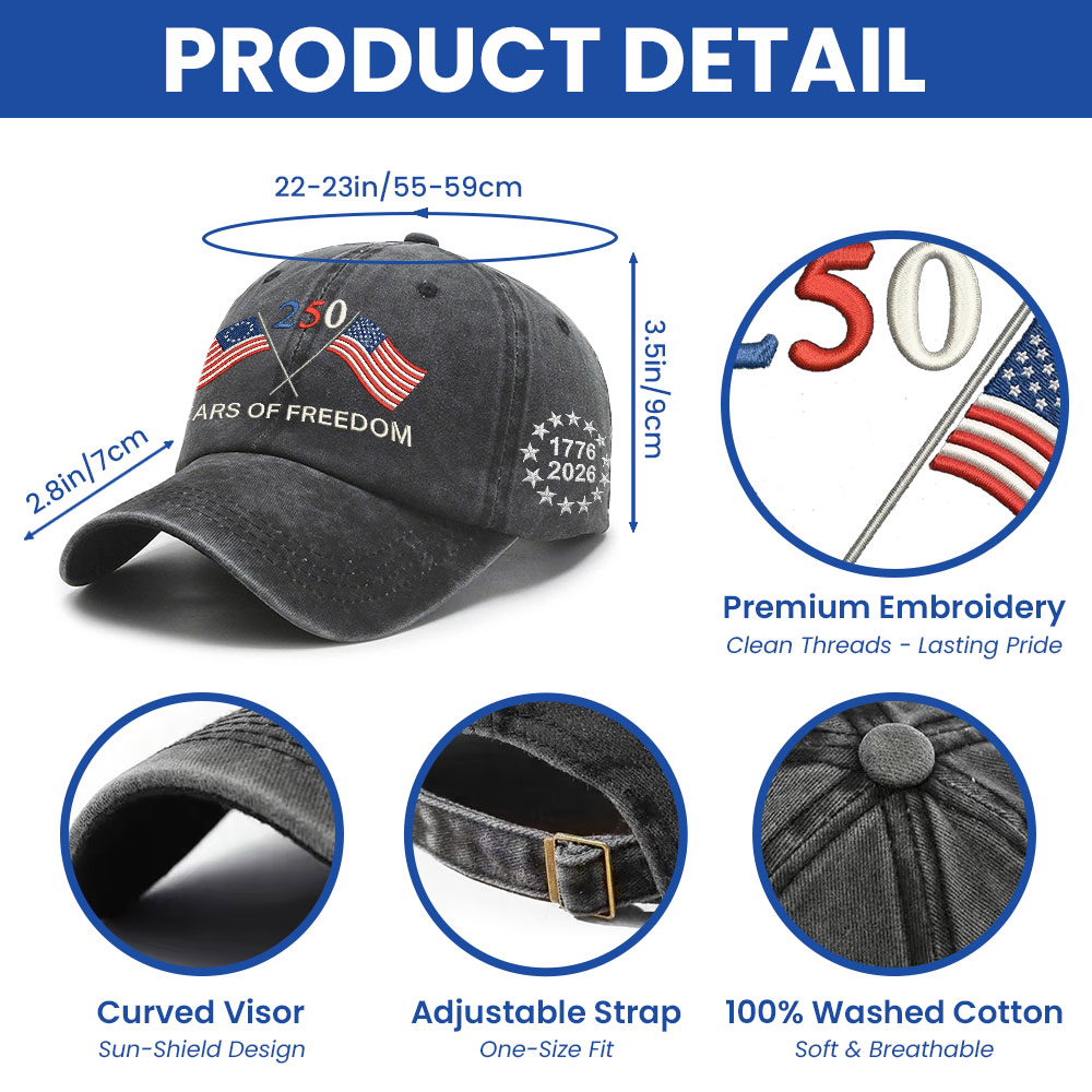 Betsy Ross 250 Years of Freedom Washed Cap with Embroidered American Flag
