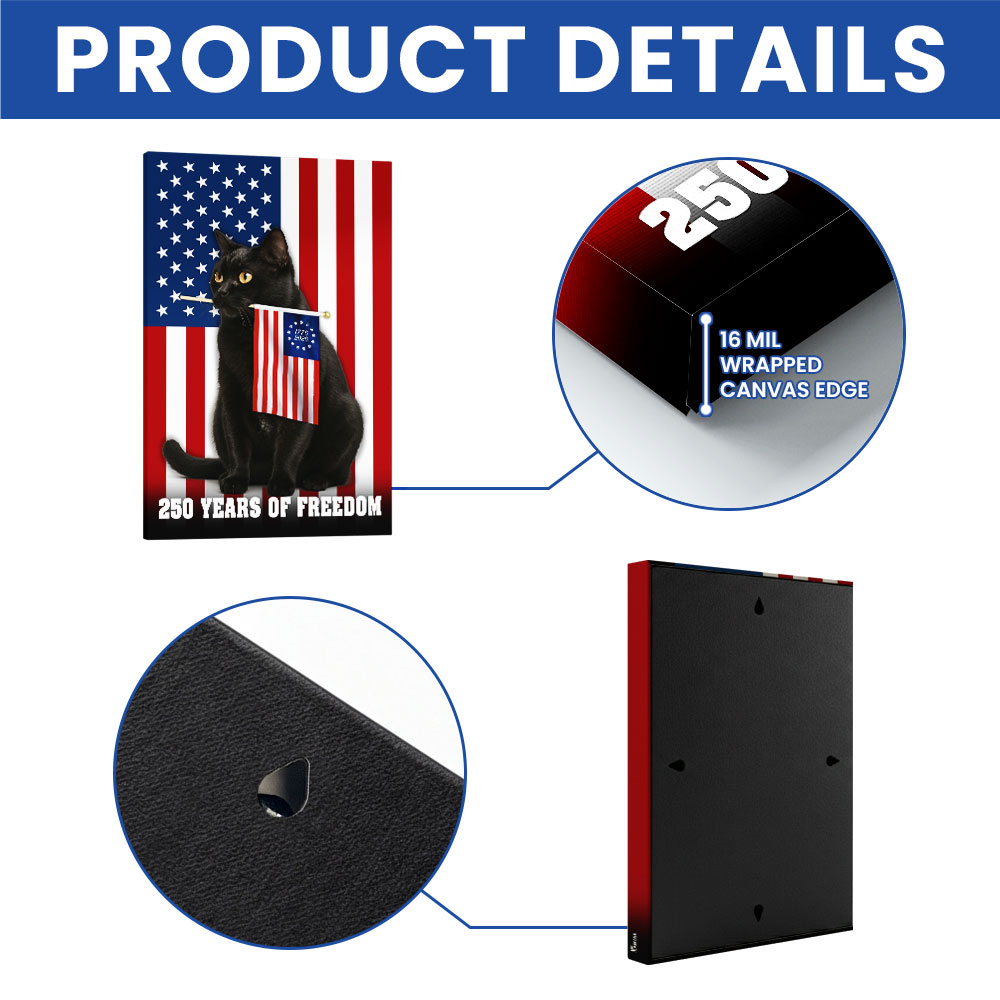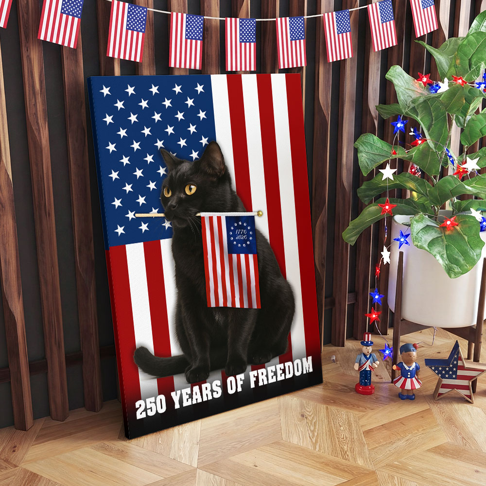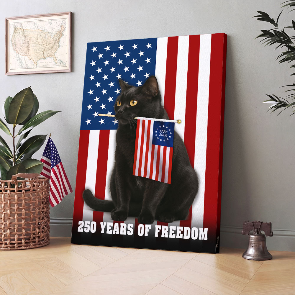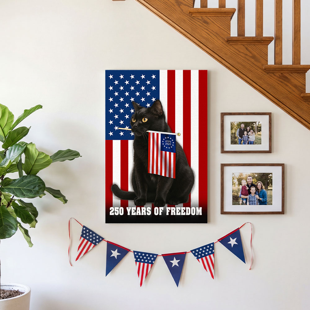 Black Cat Canvas Wall Art, 250 Years of Freedom Historic USA Decor