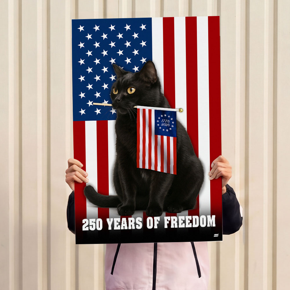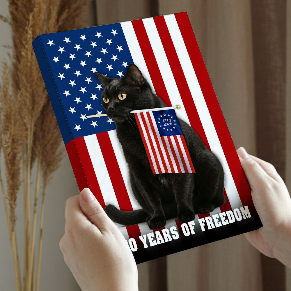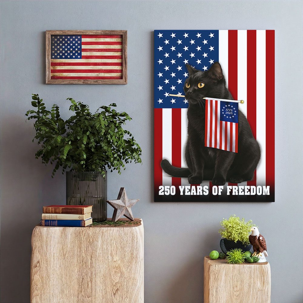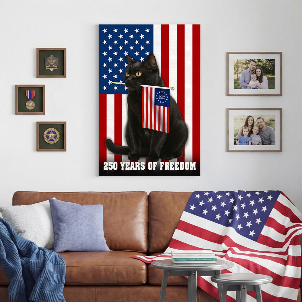 Black Cat Canvas Wall Art, 250 Years of Freedom Historic USA Decor