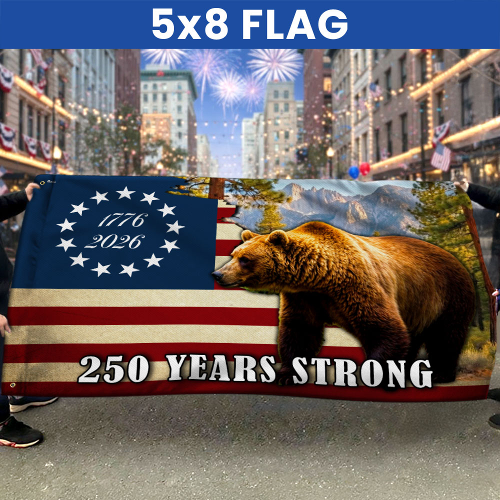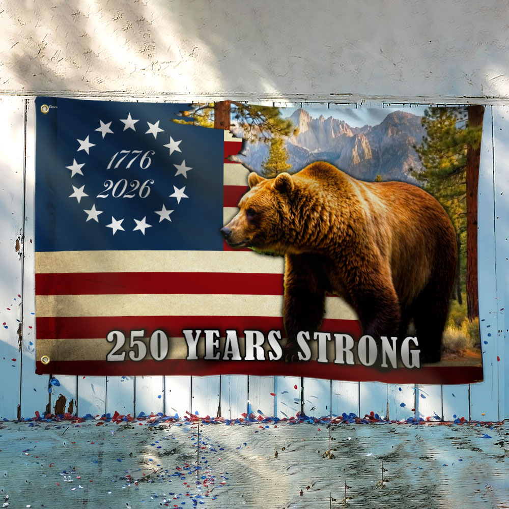 California Betsy Ross Flag, 250 Years Strong Grizzly Bear Grommet Flag
