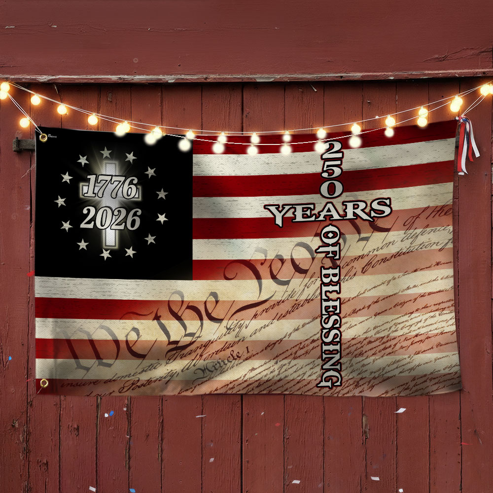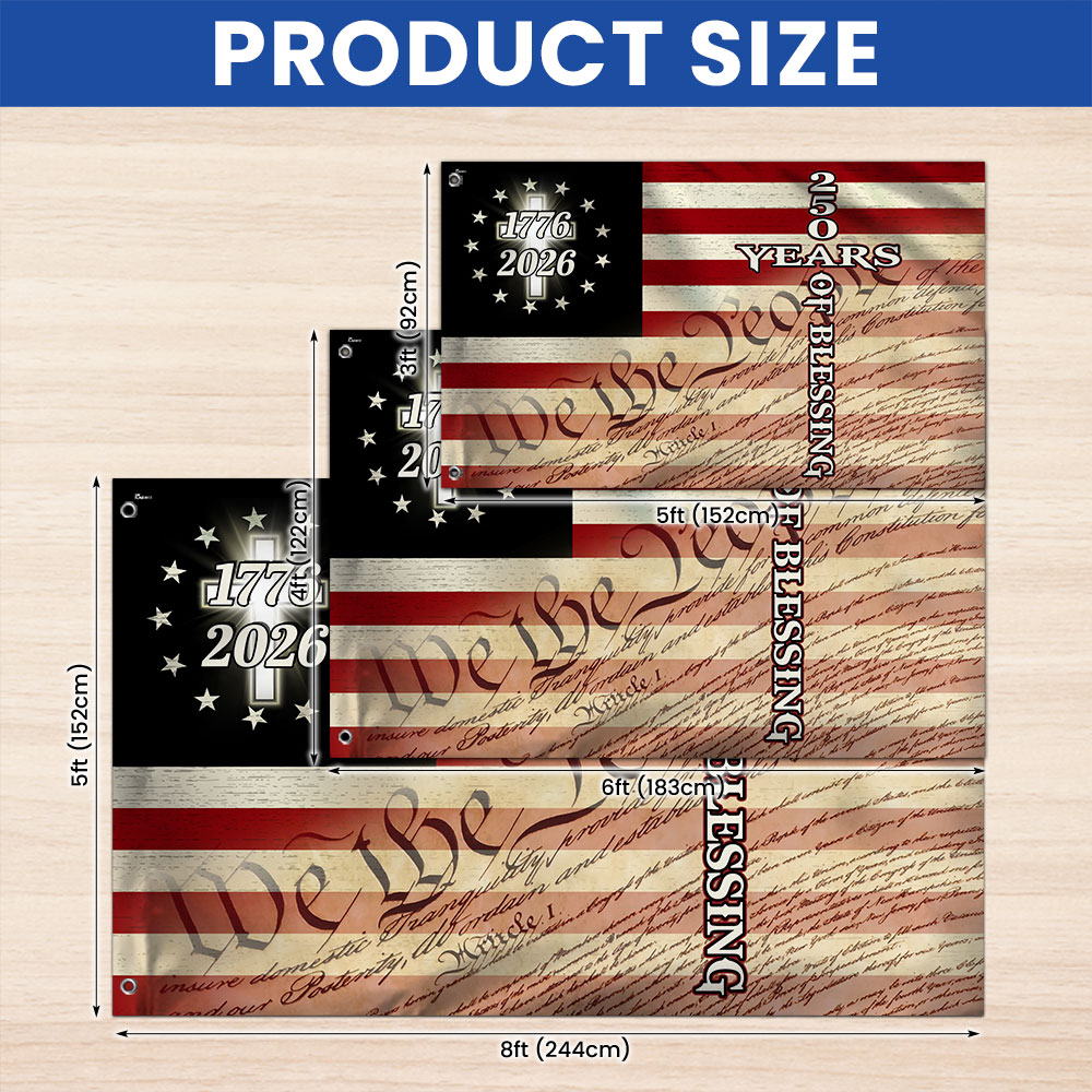 Christian Cross US Flag, 250 Years of Blessing We The People Grommet Flag