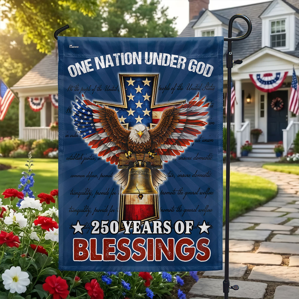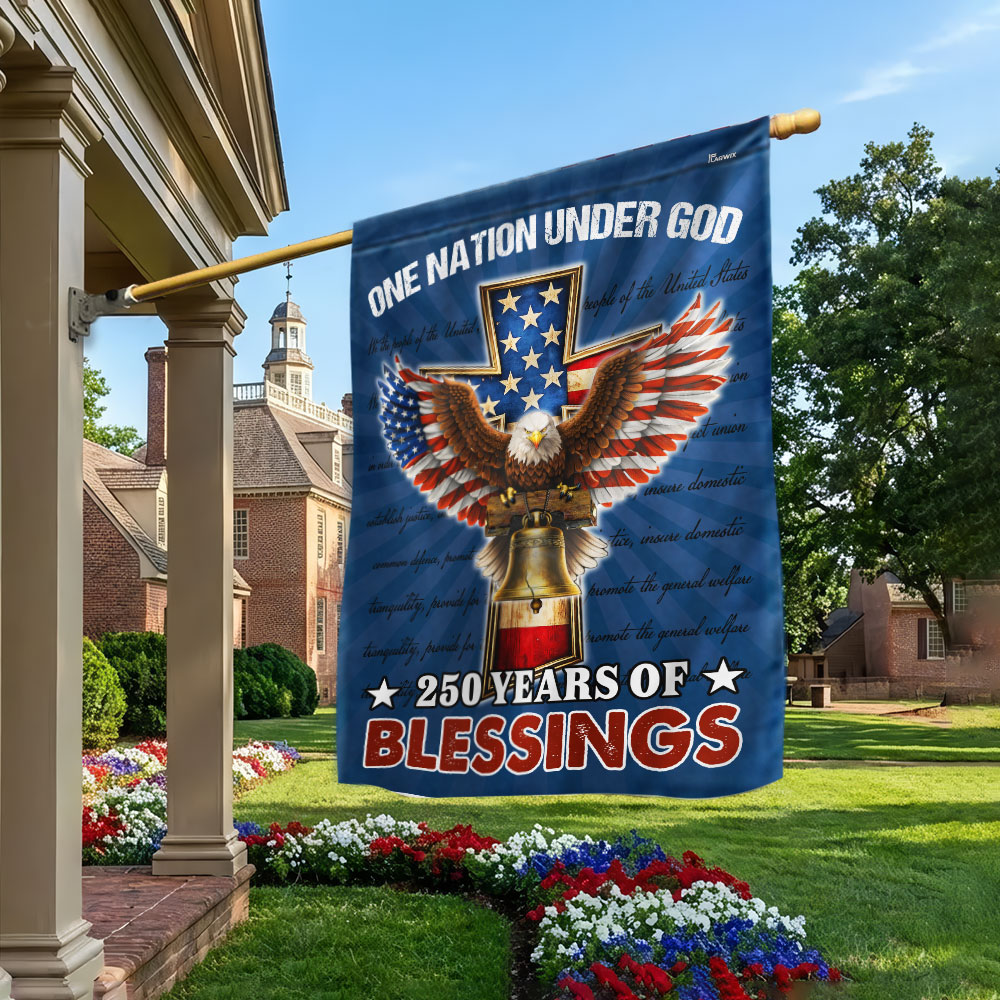 Christian Patriotic Flag, 250 Years of Blessings One Nation Under God Decor