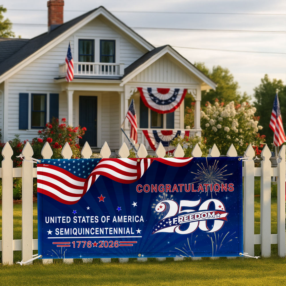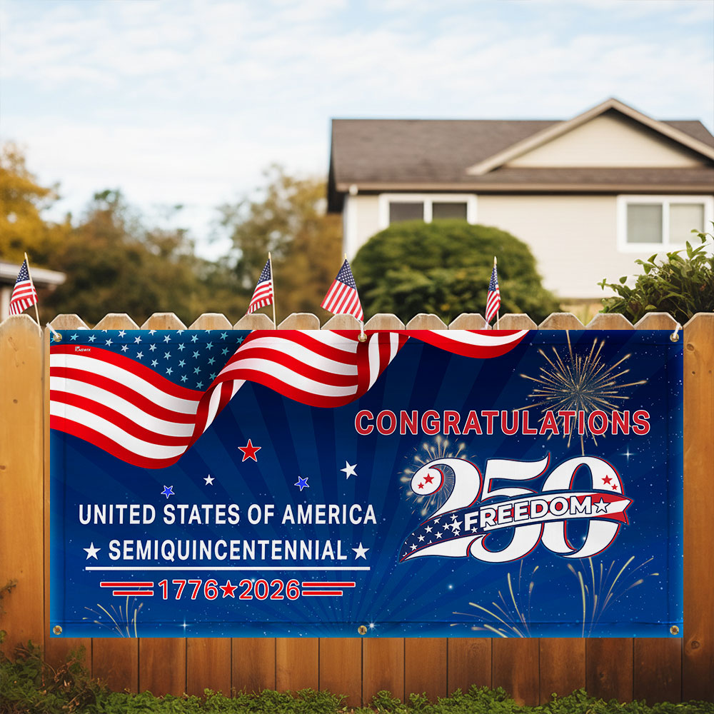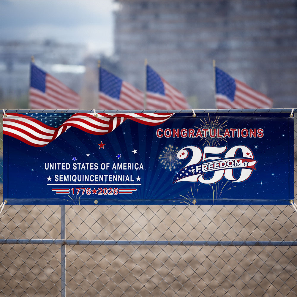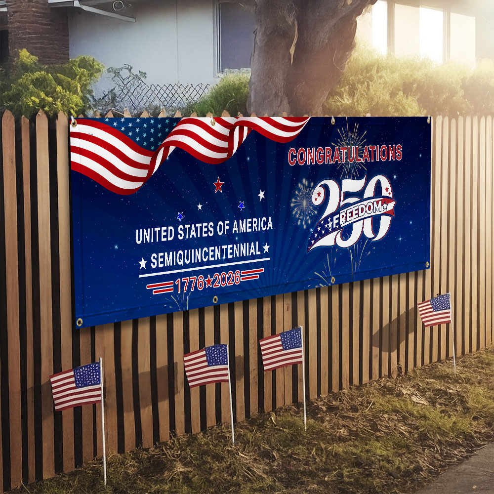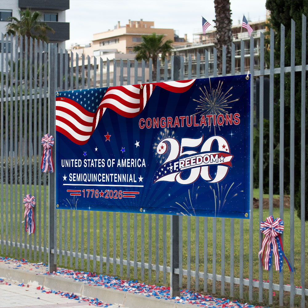 Congratulations 250 Semiquincentennial 1776 2026 Fence Banner, United States of America Patriotic outdoor Flag