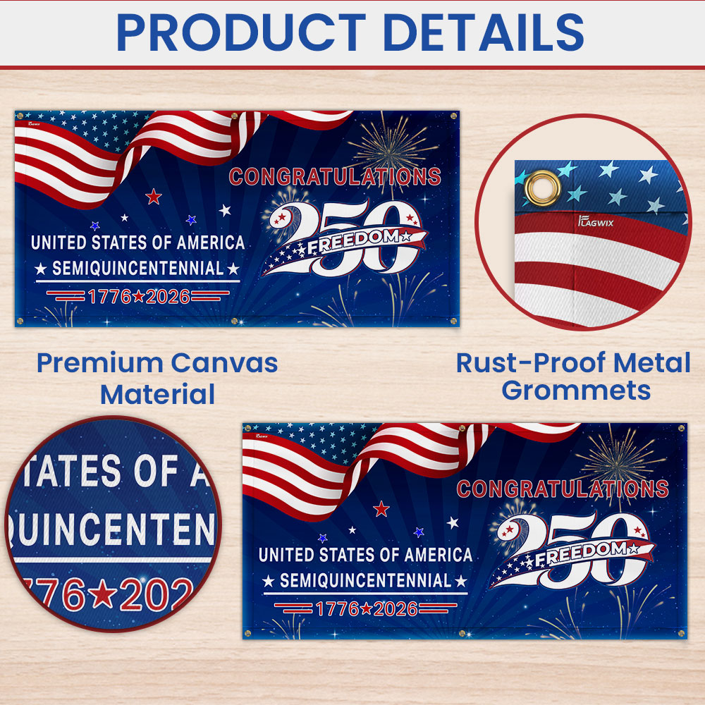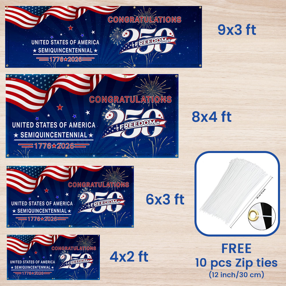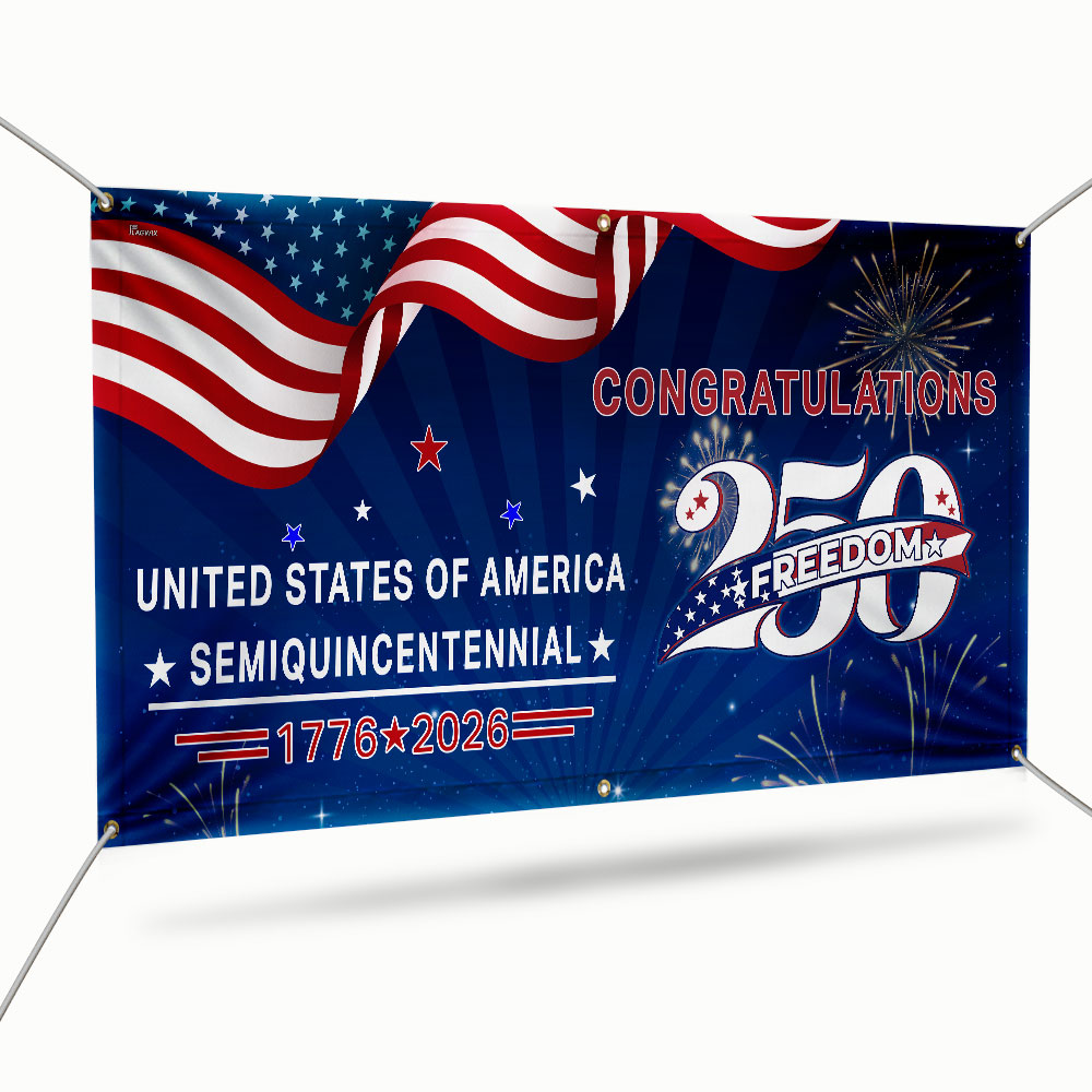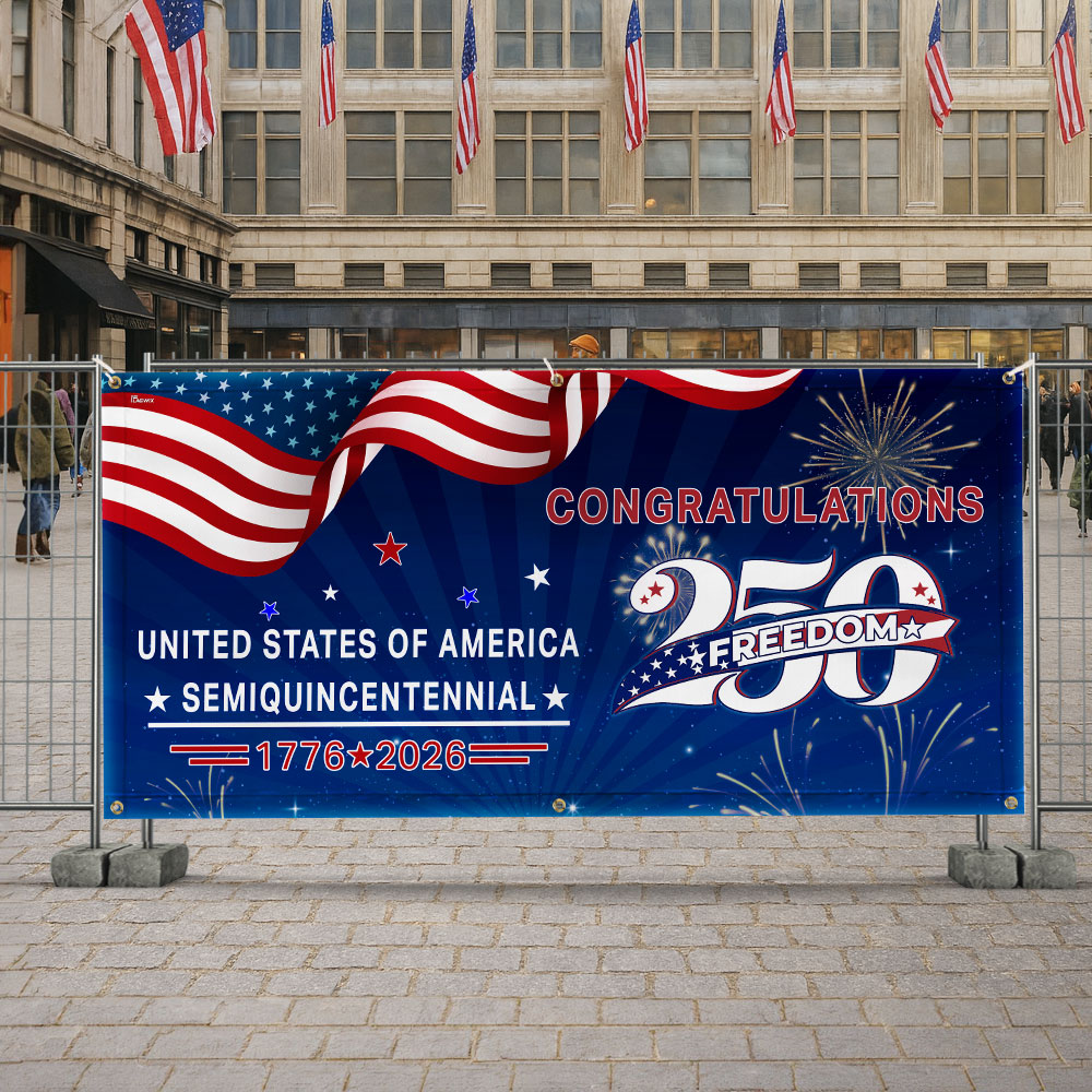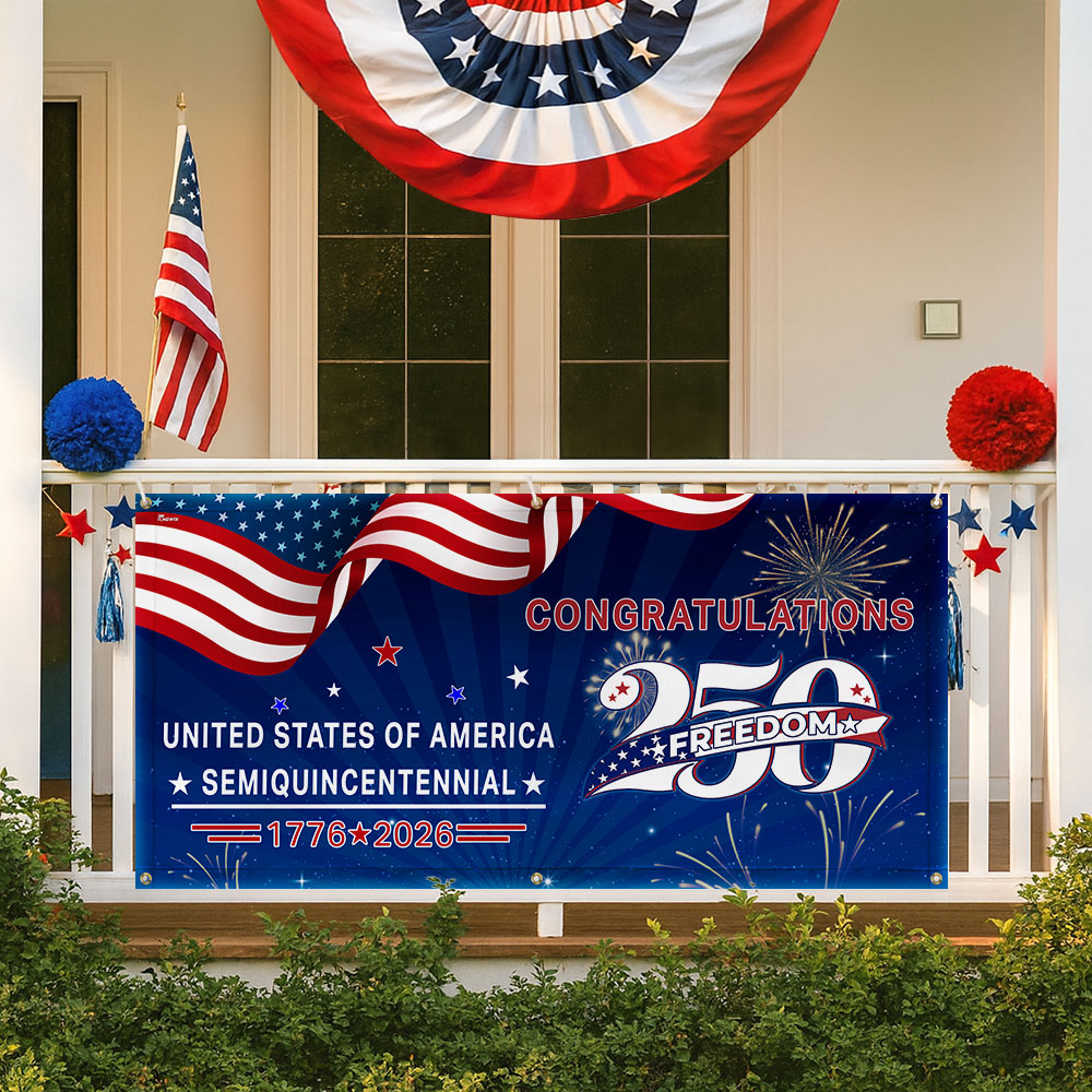 Congratulations 250 Semiquincentennial 1776 2026 Fence Banner, United States of America Patriotic outdoor Flag